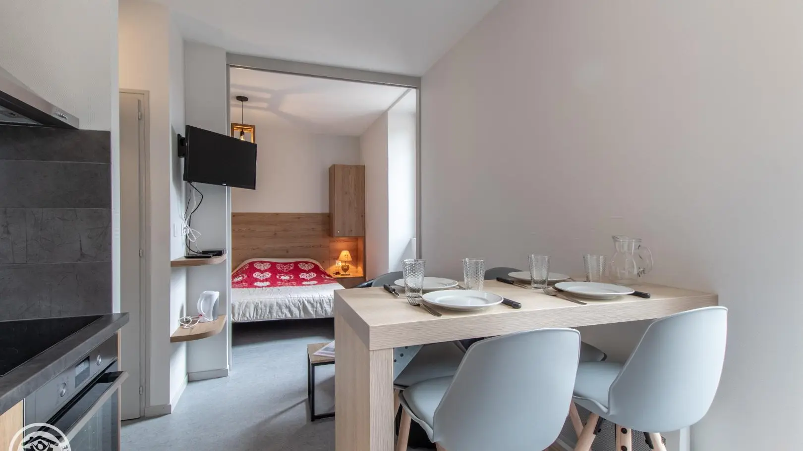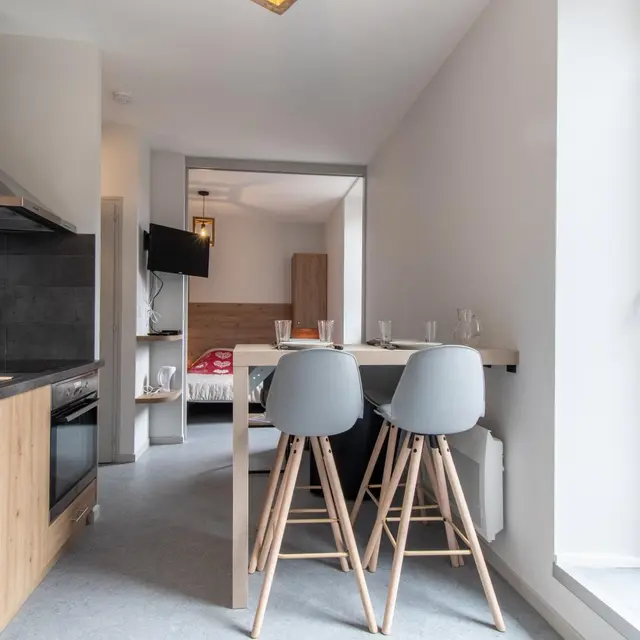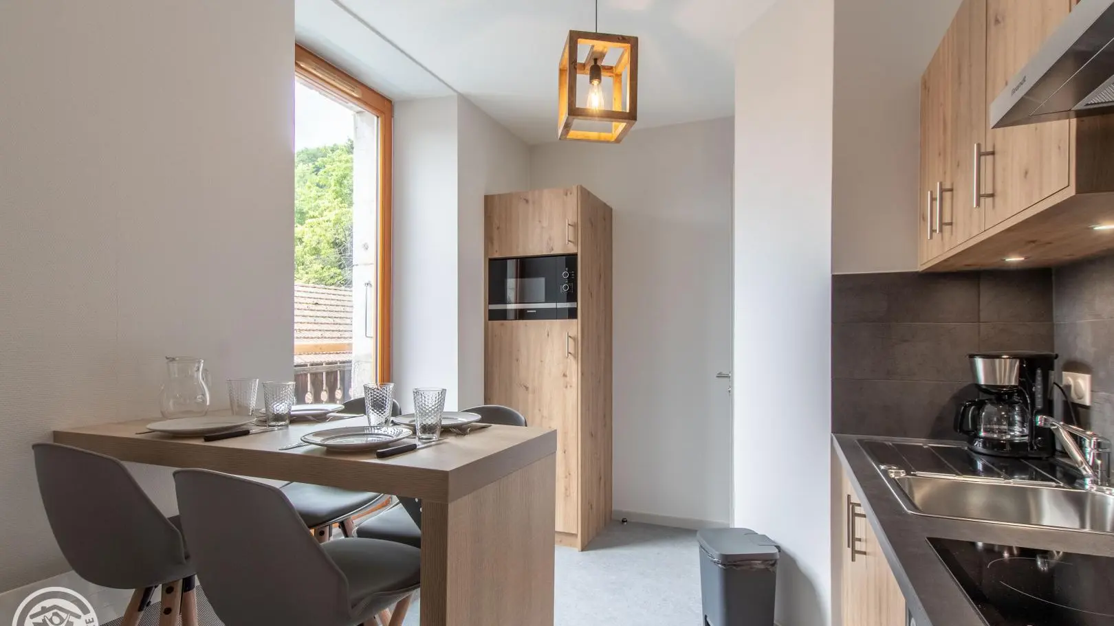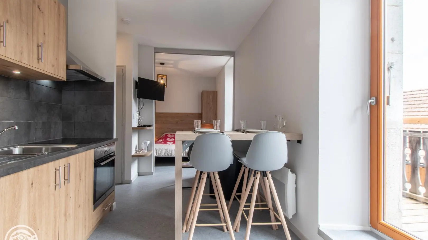 Au cœur du village de Megevette, studio de 27m2 aménagé au 2ème étage de l'ancienne école rénovée comprenant 4 gîtes et 2 locations à l'année. Coin cuisine, séjour (canapé convertible, 2 lits 1 pers superposés).