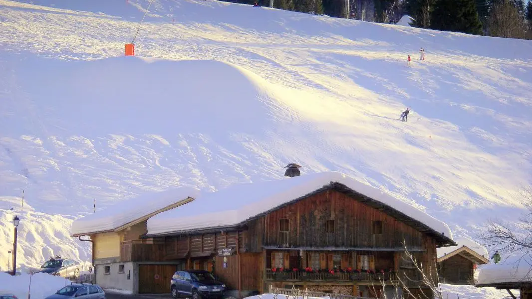 Sur les pistes de ski alpin, dans un chalet comprenant 2 logements des propriétaires et le gîte. Gîte de 43m² pour 4 personnes avec possibilité d'une personnes à mobilité réduite. Cuisine équipée/séjour (canapé/lit 1 personne), 2 chambres communicantes : chambre 1 (1 lit 140), chambre 2 (2 lits 90), petit balcon fermé, 1 salle d'eau/wc, 1 wc indépendant. chauffage central. Local à skis. Activité handiski à proximité du gîte. Domaine skiable du Chinaillon sur place, navette à 50m. Vieux village, commerces, animation 500 m. Centre du Grand-Bornand à 7 km (base de loisirs, tous sports). Proche du col de la Colombière, à 100m du GR96. 1 animal accepté dans le gîte.