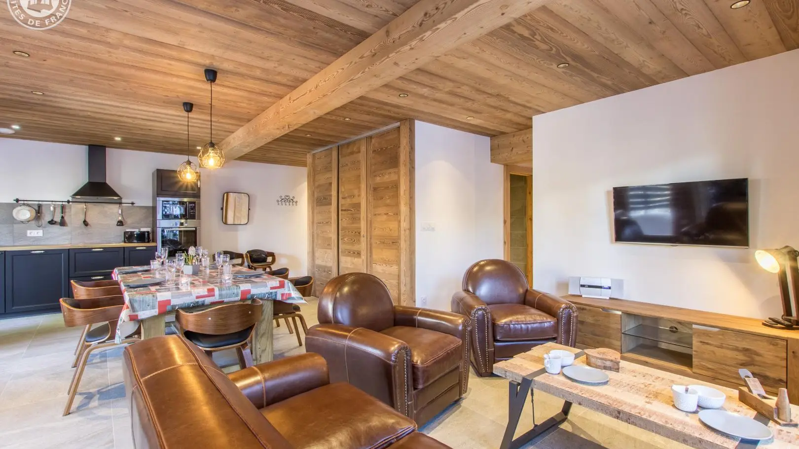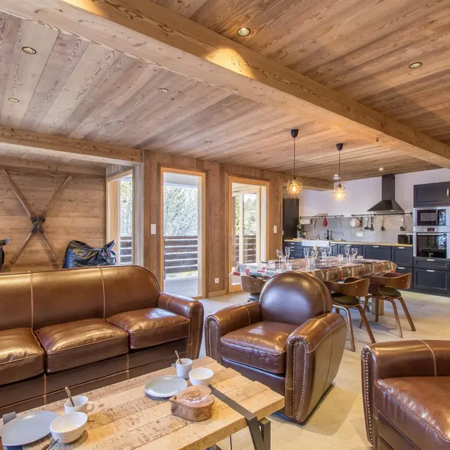 Aux portes de Chamonix-Mont-Blanc: appartement de standing aménagé dans un très bel esprit chalet, face aux montagnes de la vallée.