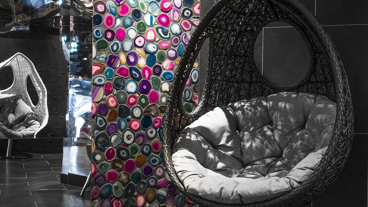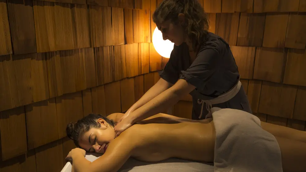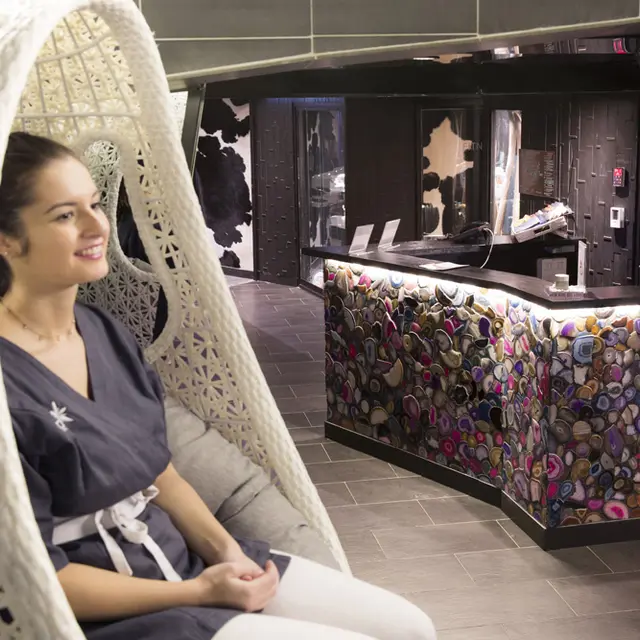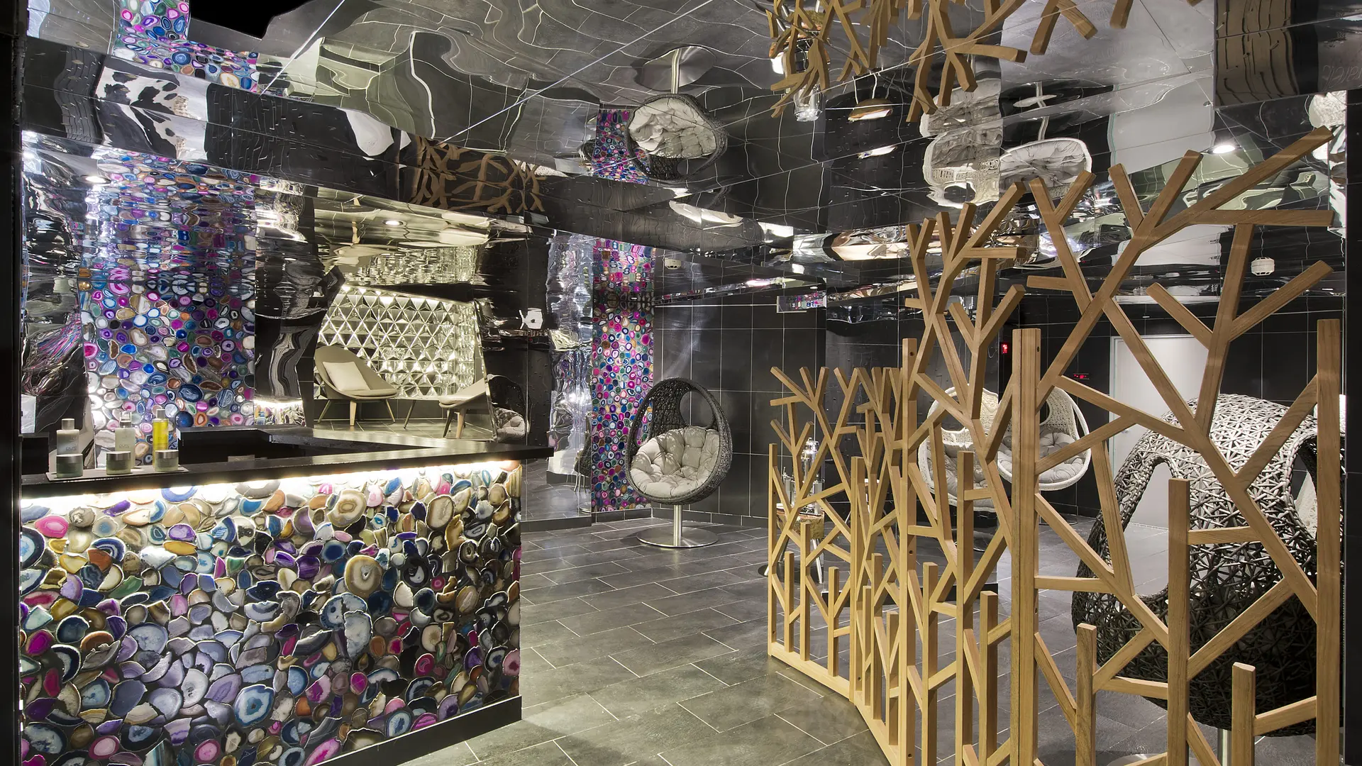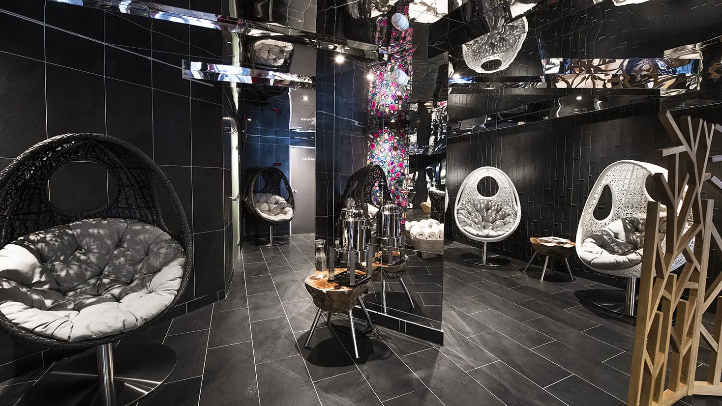 Le style des lieux rend hommage aux classiques de la station d’Avoriaz : des matériaux nobles tels que les tavaillons en bois (petites tuiles) et l’ardoise. Les 3 cabines de soins dont la cabine duo s’enveloppent de murs en tavaillons, dans l’esprit de la « façade-toiture » du bâtiment, mais peintes en blanc pour rappeler la neige environnante. En contraste, les sols s’habillent d’ardoise, pierre emblématique de la station, et pour apporter une touche lumineuse, comme tout droit sortis d’un James Bond, les plafonds se parent de miroirs…