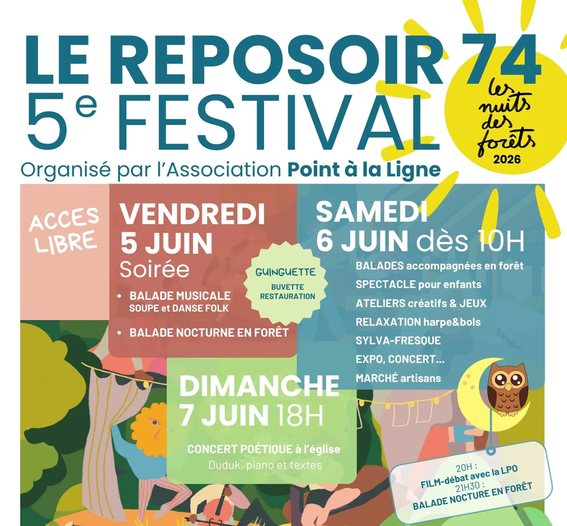 5ème édition au Reposoir du festival national "Les Nuits des Forêts" : un événement apprécié pour son ambiance familiale, dans le cadre charmant d’un petit village de montagne au pied des Aravis. Une programmation variée, renouvelée chaque année !