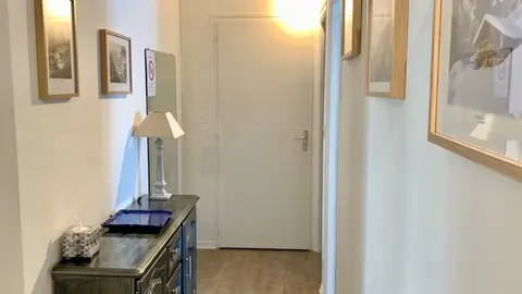 Élégant appartement en 2ème étage. A 2 minutes du centre ville et des rues piétonnes, à 5 minutes des thermes et des gares ferroviaire et routière.