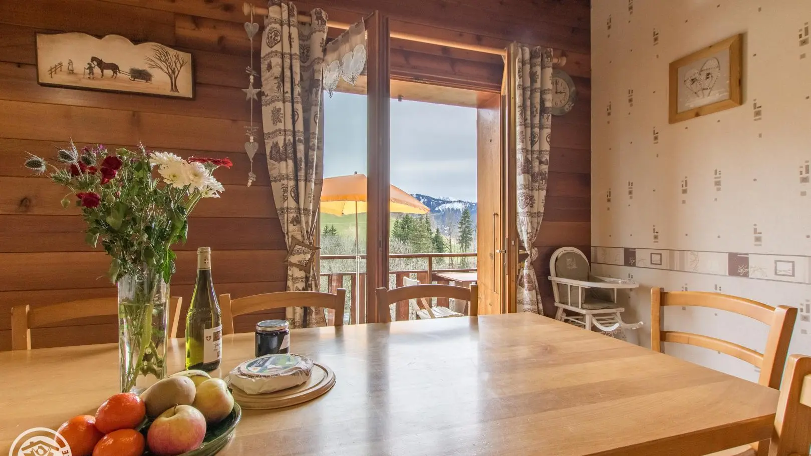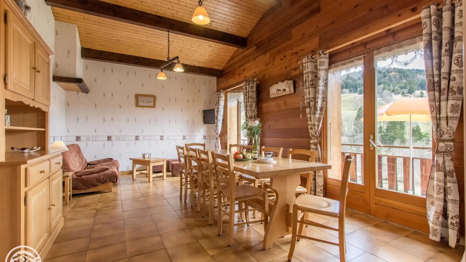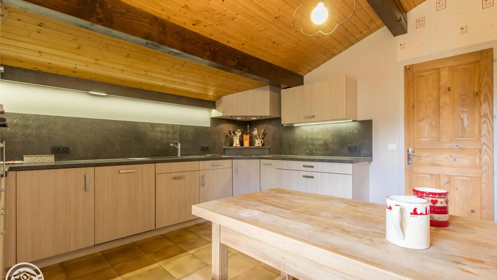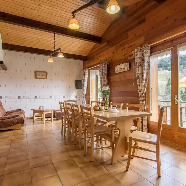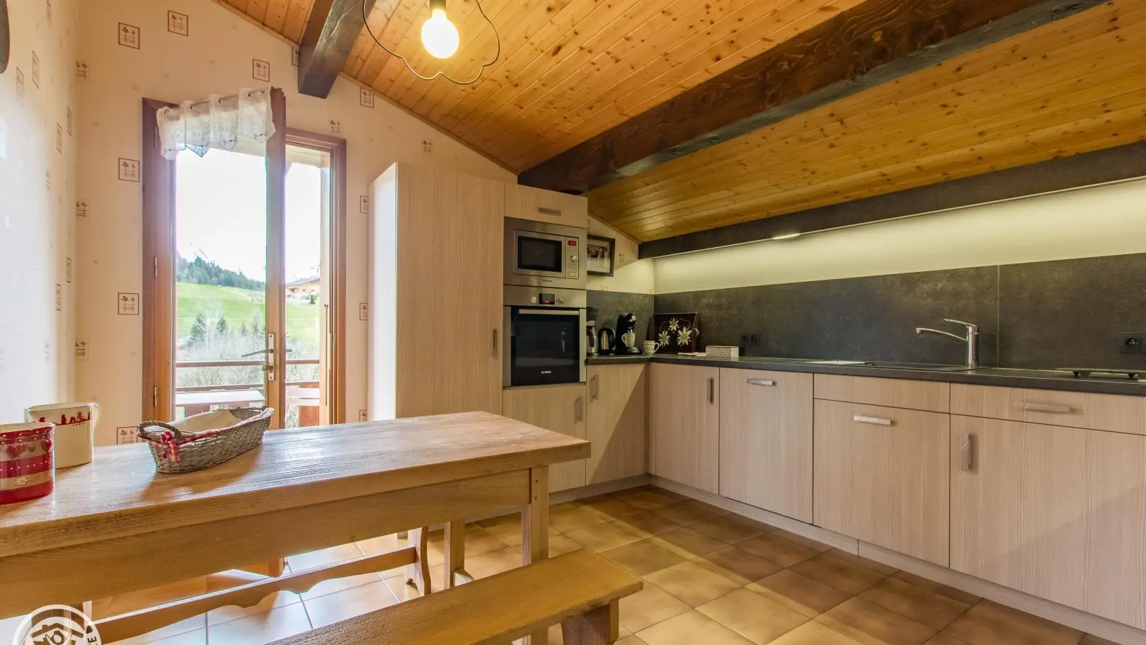 Appartement de 96m² aménagé au 1er étage (depuis le parking sur l'arrière du chalet) d'un grand chalet comprenant 3 autres logements. Entrée commune. Belle ambiance montagne à l'intérieur. Le chalet est situé à l'entrée du village du Chinaillon - Le Grand-Bornand. Hall d'entrée dans couloir avec placards, cuisine équipée avec accès au balcon, séjour avec table repas, canapé convertible clic-clac, poufs, télévision, accès au balcon. Chambre 1 (2 lits 90x190cm), chambre 2 (1 lit 140x190cm), chambre 3 (1 lit 140x190cm, lit bébé, accès au balcon), petite chambre 4 (2 lits superposés 80x190cm). Mezzanine très mansardée (accès par échelle) : 2 lits d'appoint 70cm.
