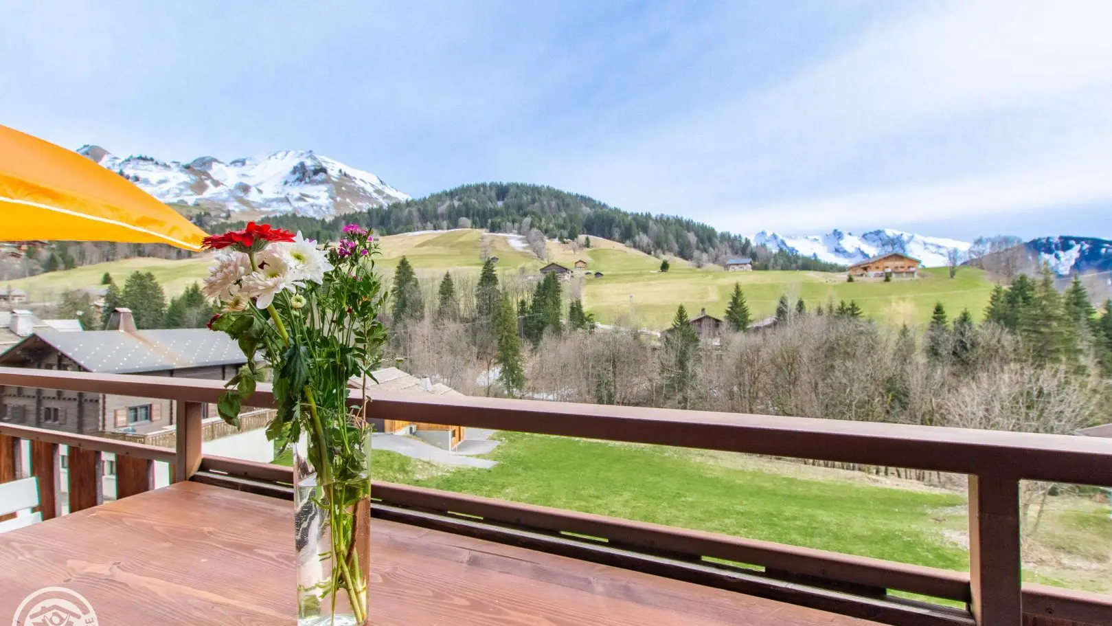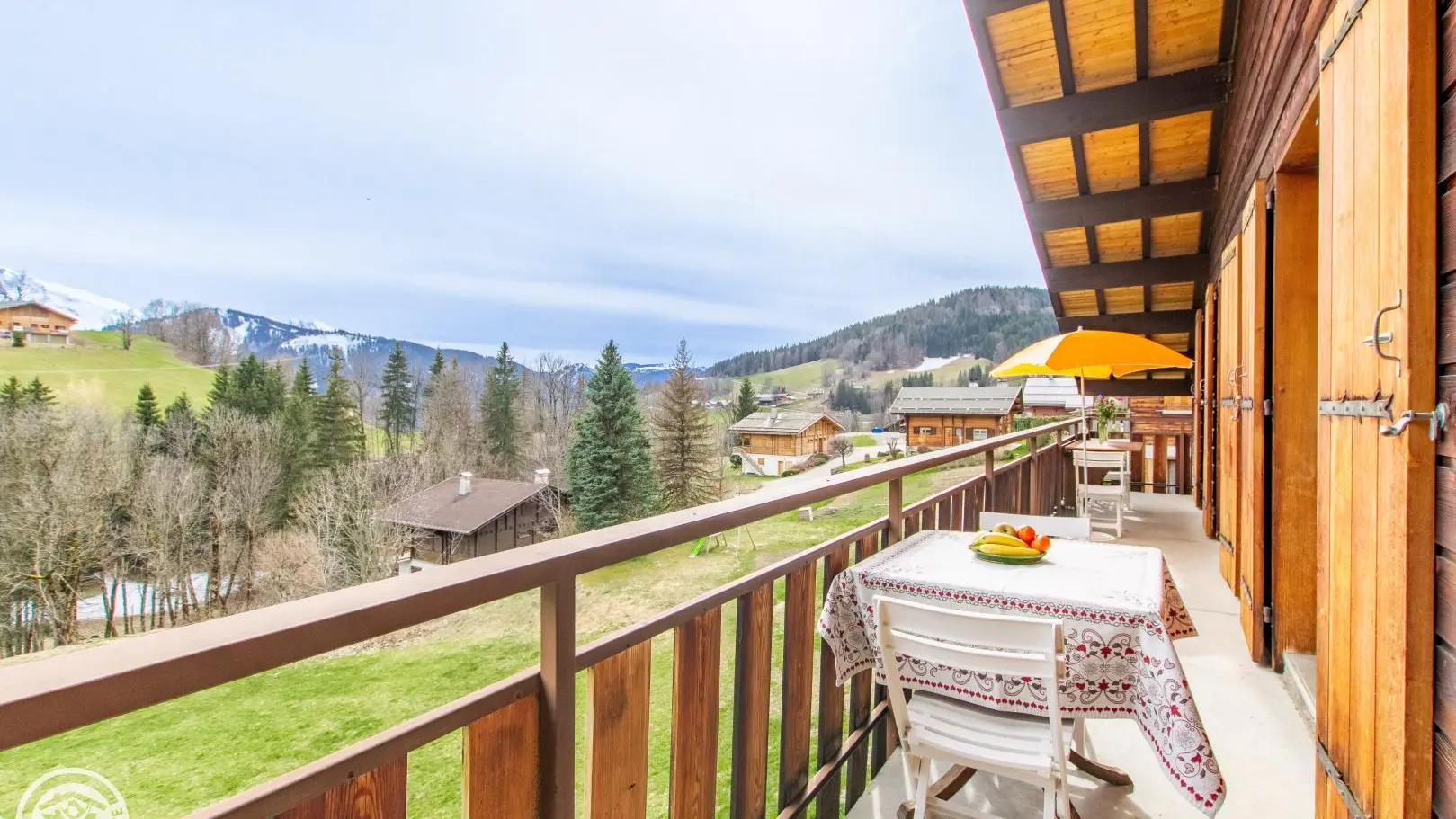 Casier à skis réservé au gîte. Balcon offrant une belle vue montagnes. Petite table de jardin, transats et parasol. Parking privatif sur place. Loisirs et services : Centre du Chinaillon (commerces, restaurants) à 1,5km. Centre du Grand-Bornand village 6km.