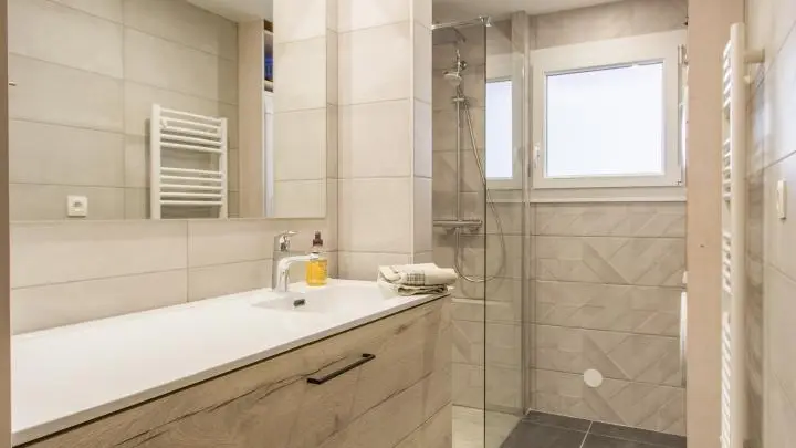 2 salles d''eau avec douche. Lave-linge et sèche-linge dans une des salles d'eau.