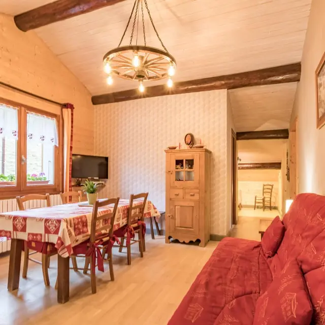 Maison comprenant 2 gîtes et le logement des propriétaires. Gîte de 50 m2 au 1er étage : coin cuisine dans le séjour (clic-clac 130 cm), chambre 1 (1 lit 140), chambre 2 ( 2 lits 90), coin nuit (non fermé (1 lit 80)). Salle de bains/wc. Chauffage central. Balcon, terrain et barbecue communs, salon de jardin. Possibilité de location de draps. Gîte à proximité de la route menant de Thônes au Col de la Croix Fry (route passante). Station de ski : La Croix-Fry / Merdassier reliée au domaine de la Clusaz à 7 km : Ski de fond, raquettes, ski de randonnée. Sentiers pédestres à proximité. Halte garderie à 200 m. Navette gratuite sur place, en hiver. Thônes à 6 km (grandes surfaces, piscine, tennis, cinéma, musée, animations ...)