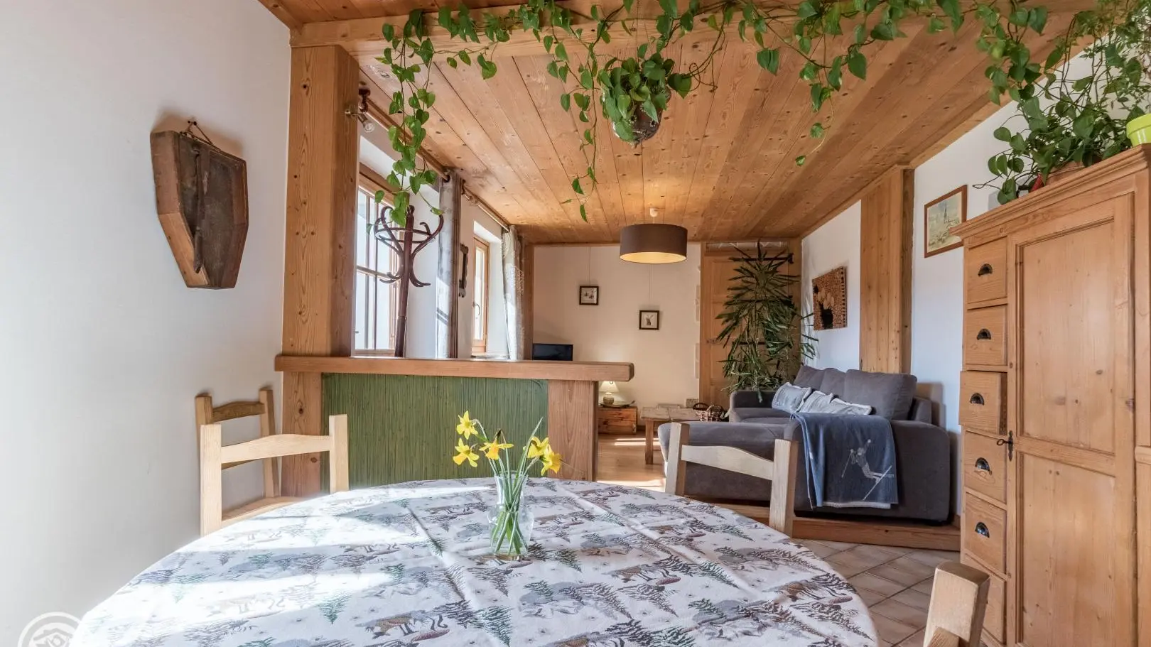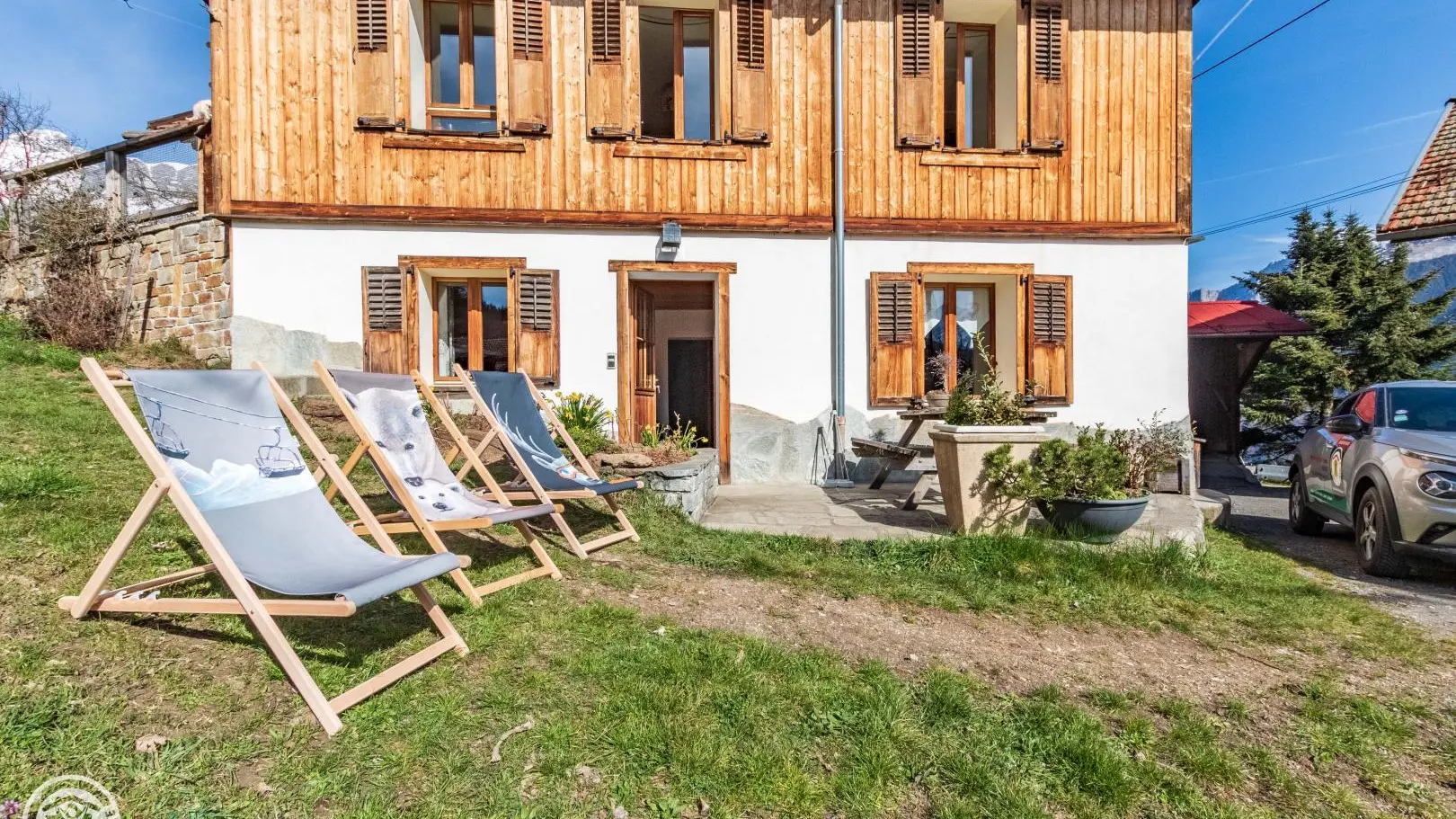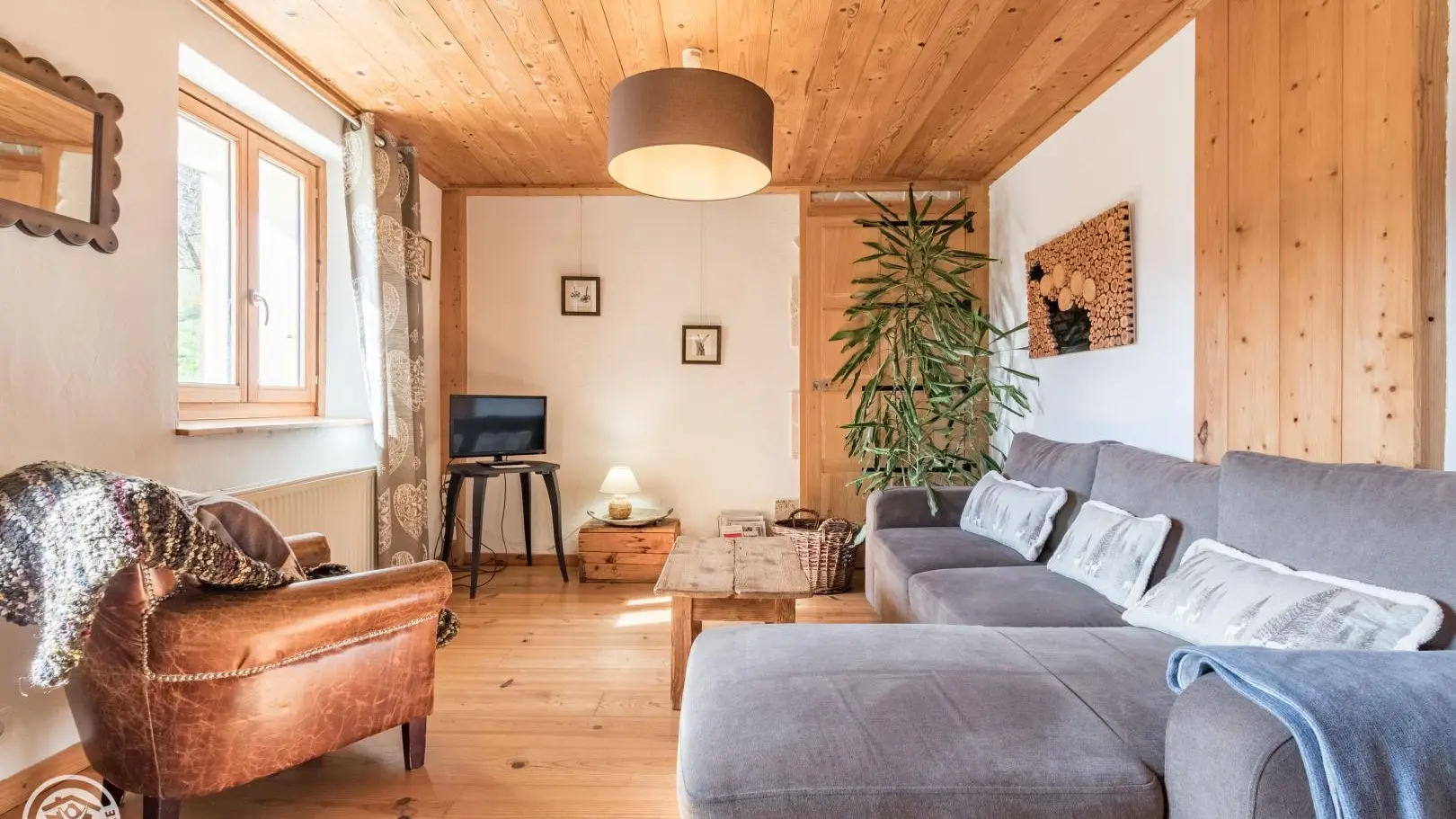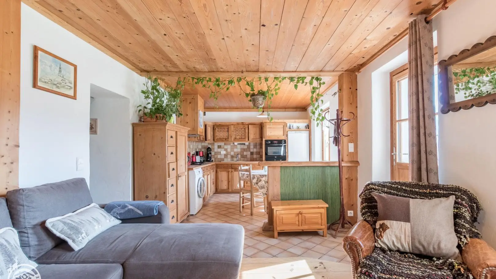 Ambiance chaleureuse et cosy pour ce gîte de 50m2 aménagé en rez-de-jardin d'une ancienne ferme rénovée située à Sallanches, à proximité de Combloux.