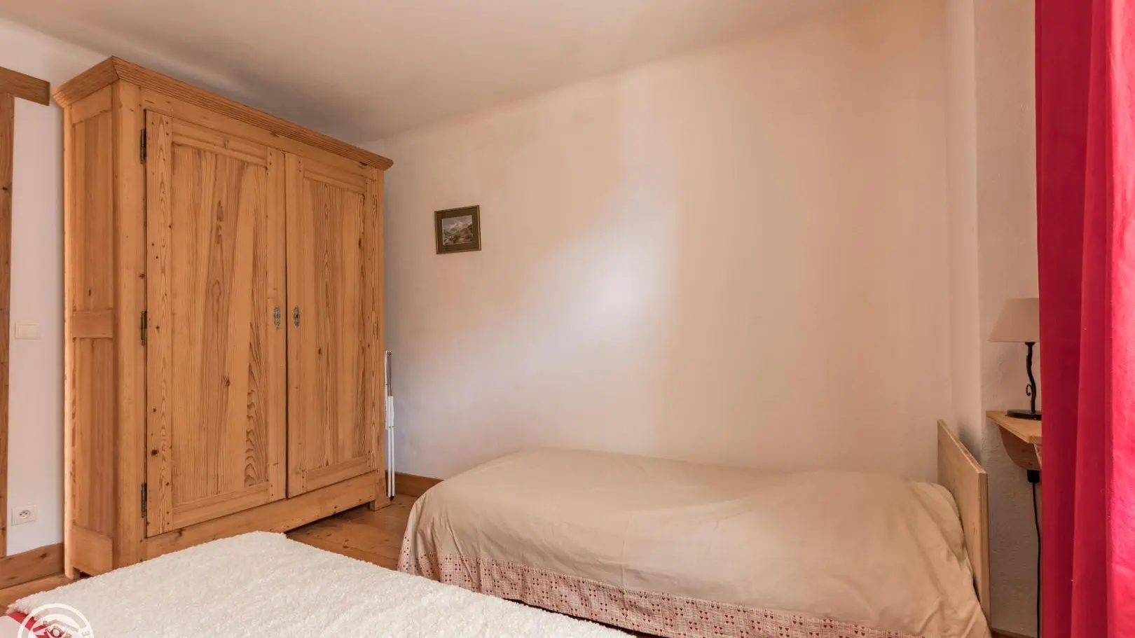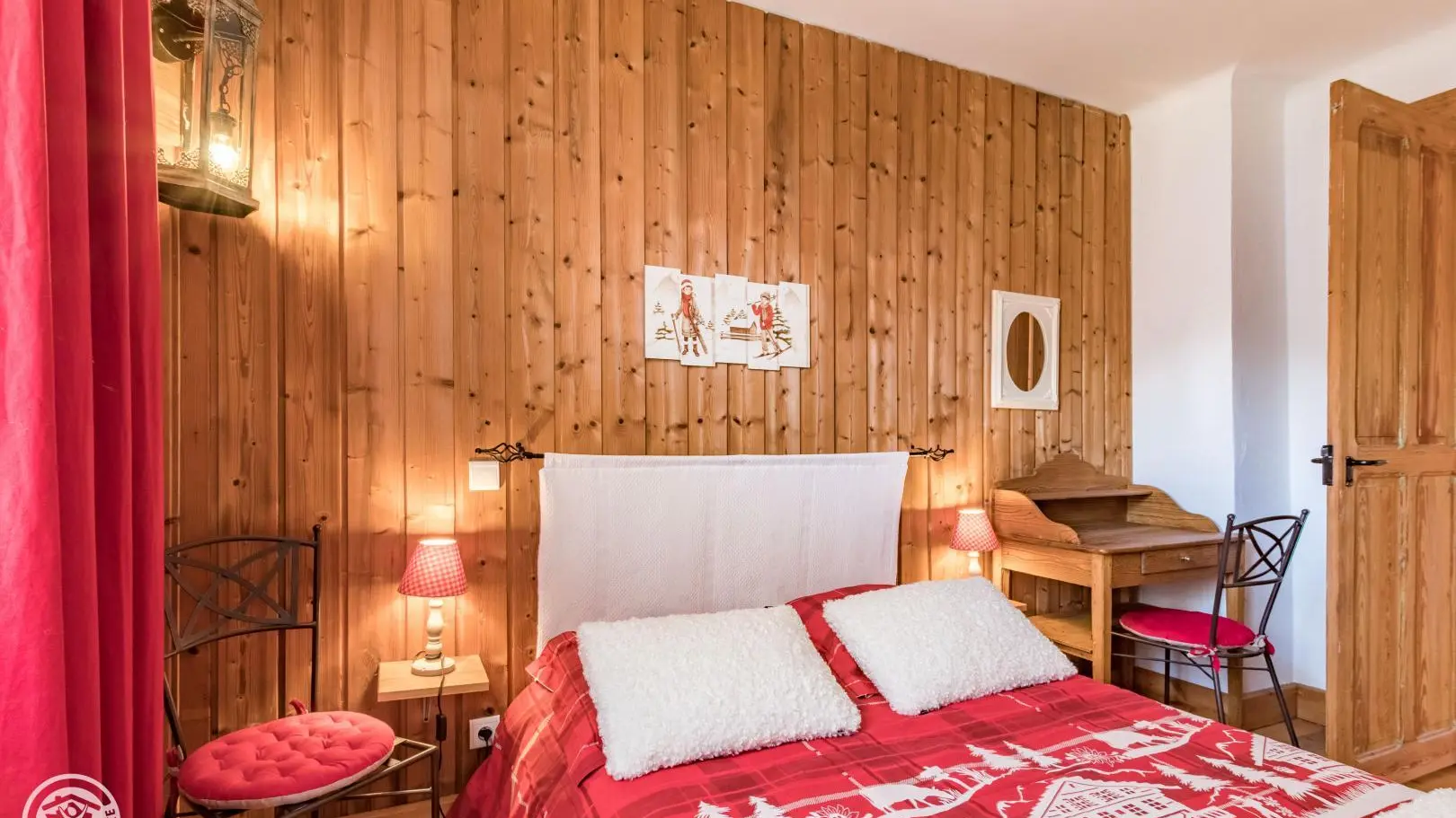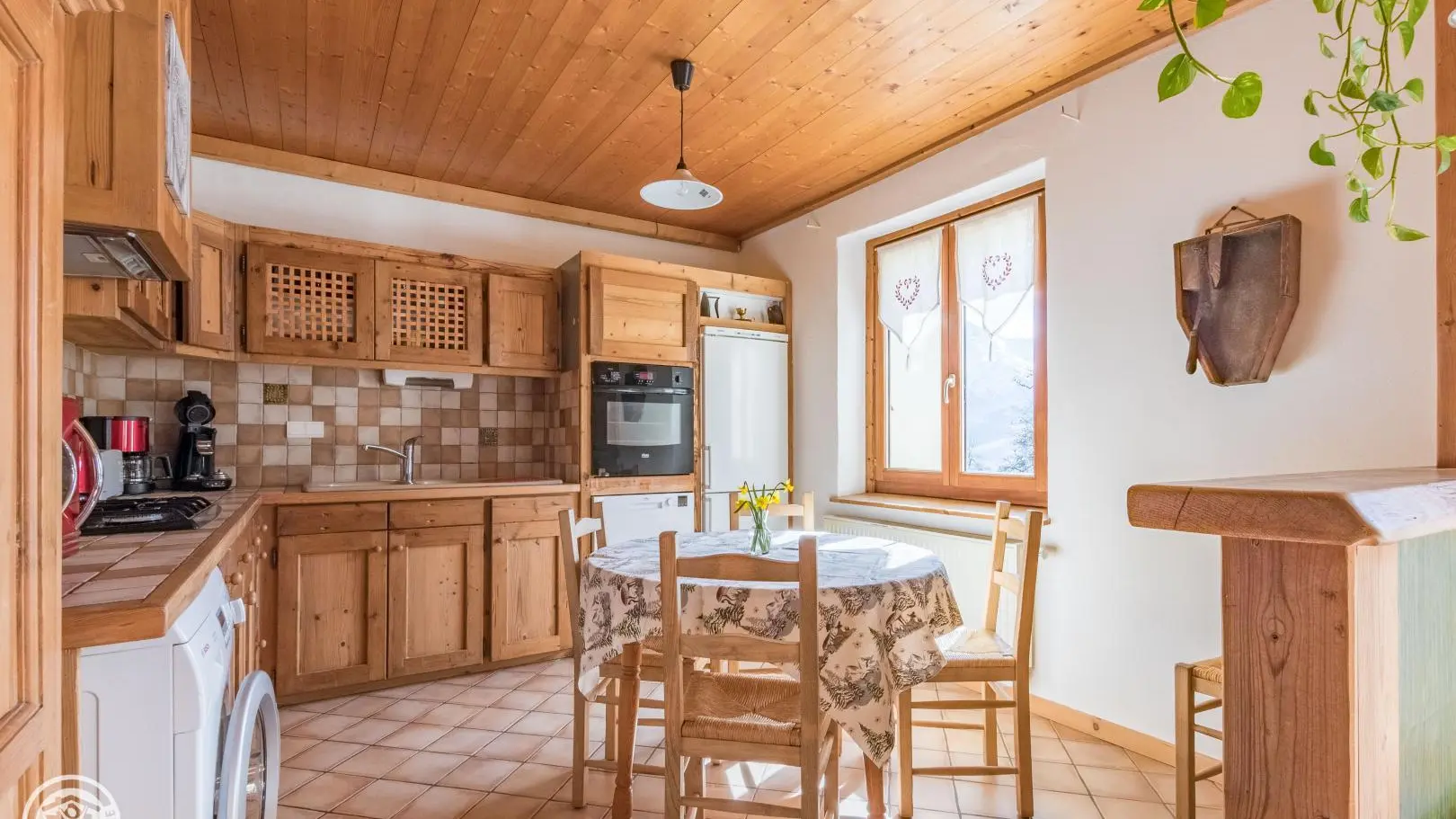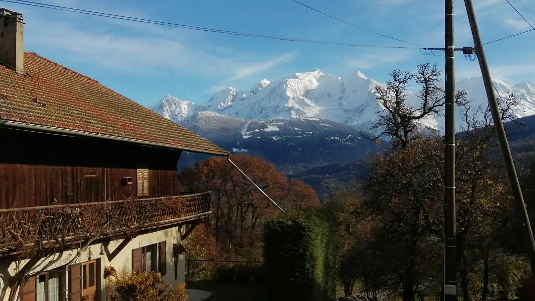 Cuisine intégrée ouverte sur séjour (TV, canapé d'angle convertible), chambre avec 1 lit 140cm + 1 lit 90cm, Salle d'eau (douche), avec WC. Terrasse Sud-Est avec table forestière face au Mont-Blanc. Possibilité de louer les draps. Chauffage centrale fioul. Place de stationnement pour 1 véhicule devant le gîte.