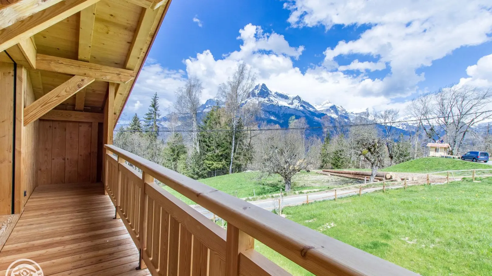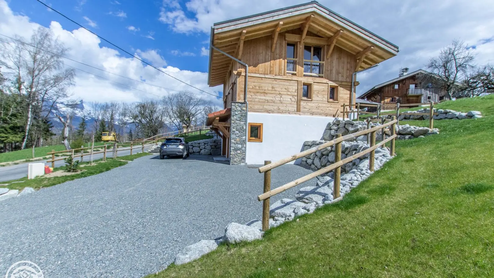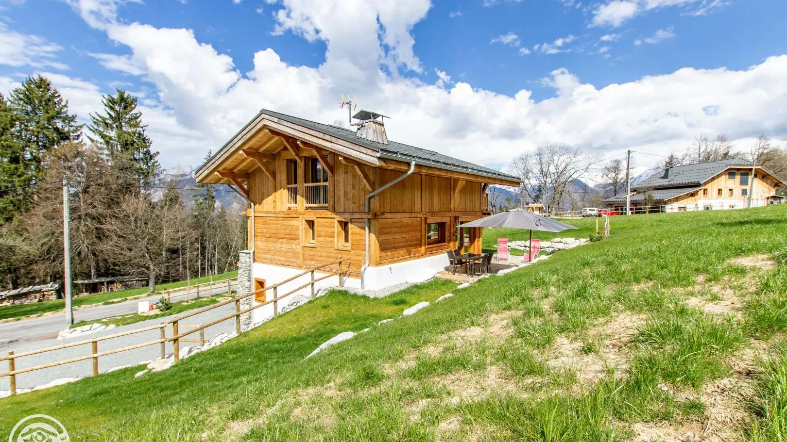 Le chalet est situé en bordure de route secondaire.