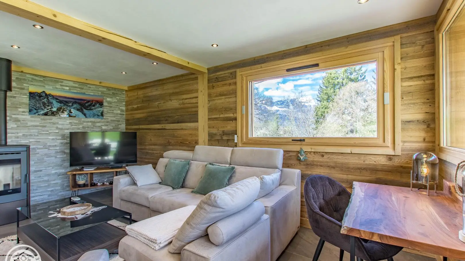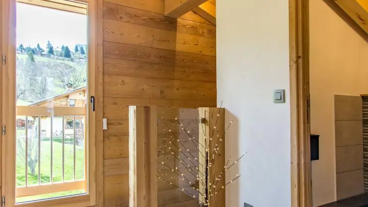 Chalet individuel de 110m2 (+ garage, cave et buanderie), aménagé à proximité du centre village de Combloux (1,2km). Très belle vue sur les montagnes environnantes : Mont-Blanc, Fiz, Aravis.