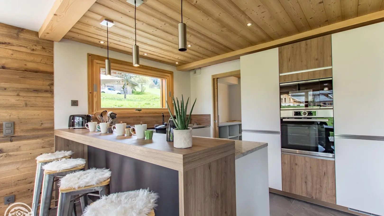 Centre village de Combloux, commerces, et plan d'eau biotope (baignade estivale face au Mont-Blanc) à 2 minutes en voiture (1,2km).