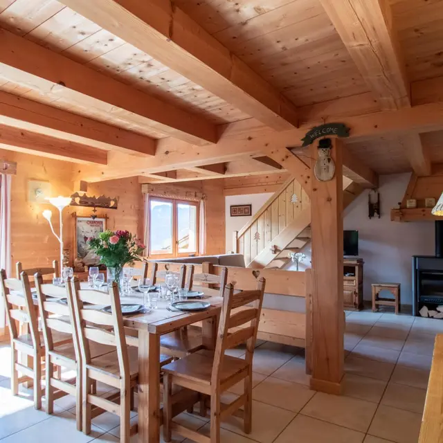 Gîte (100 m2 dont 11 mansardés) : Cuisine équipée ouverte sur séjour, poêle à bois (foyer apparent). Chambre 1 ( 2 lits 90). Salle de bains, wc indépendant. A l'étage: mezzanine (2 lits 90), Chambre 2 (1 lit 140), Chambre 3 (1 lit 140). Salle d'eau/wc. Les draps sont fournis et les lits faits à l'arrivée. Gîte utilisant des Énergies Renouvelables (chauffage central à granulés de bois). . Balcon, terrasse, terrain, barbecue, table ping-pong commune. Ski-bus gratuit sur place en saison d'hiver, accès à la Station Croix Fry/ Merdassier reliée à La Clusaz. En été (juillet et août) piscine chauffée en plein air à 5km (col de Merdassier).