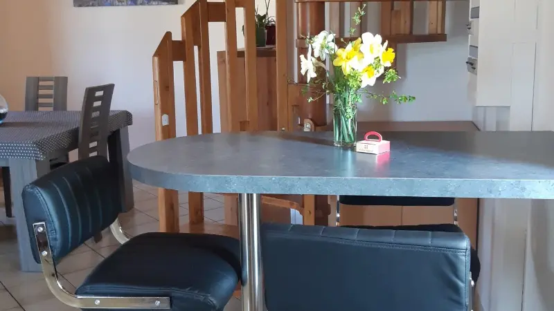 L'appartement est mitoyen à notre maison mais totalement indépendant avec une place de parking. Nous pouvons mettre un parc à disposition et indiquer des itinéraires de ballades pédestres et équestres. Dans les environs du gîte:- Sentiers de randonnées et parcours santé à Choisy et dans les communes environnantes,- A 5 km de tous commerces et services- A 8 km de la rivière des Usses- A 8 km de la Balme de Sillingy et de son plan d'eau- A 8 km de Cruseilles avec son plan d'eau, sa piscine extérieure, parc animalier (daims)- A 15 km d'Annecy et son lac et le parc animalier de la Grande Jeanne (mouflons, daims, cerfs,...)- A 30 km de son lac et aéroport- A 30km du Plateau des Glières, haut lieu de la résistance,- A 35 km du Semnoz et ses alpages (station de ski familiale)- A 46 km d'Aix les Bains avec son lac et les thermes,- A 50 km des domaines skiables de la Clusaz et du Grand Bornand, - A 92 km de Chamonix (Aiguille du Midi, Mer de Glace,...) En période de vacances scolaires: location à la semaine du samedi 16h au samedi suivant 11h.Haute Saison (Juillet/ Août) :420€Reste de l'année: 350€Option Linge de toilette : 5€/semaineOption Ménage: 50€/semaineOption Barbecue à Gaz : 10€/semaine.Le nettoyage du barbecue sera assuré par nos soins. En dehors des périodes de vacances scolaires, la durée de location peut être modulable.