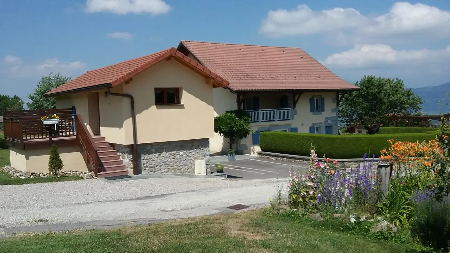 Belle terrasse ouest sans vis à vis avec mobilier de jardin, barbecue et transats. Jardin. Draps et linge de toilette fournis (peignoirs), lit fait et ménage inclus. Buanderie. Annecy et son lac 33km, Genève et Lac Léman 27km, Chamonix à 70km .