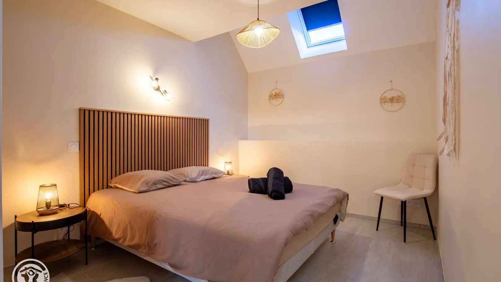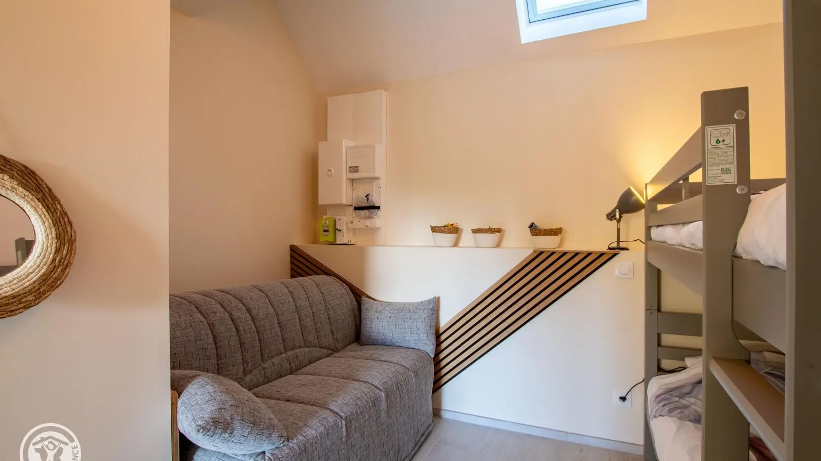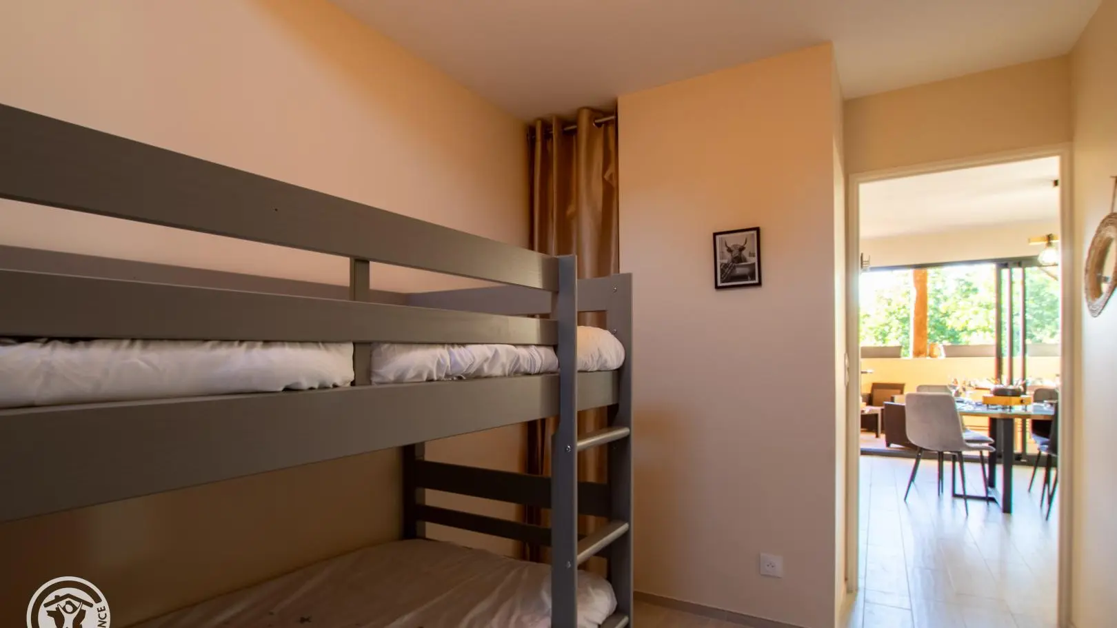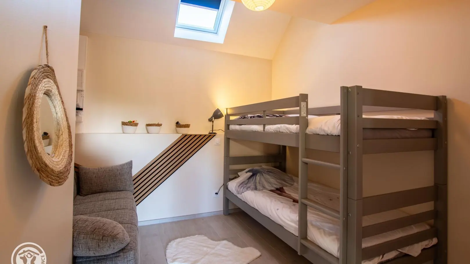 Chambre 1 (1 lit 160x200 cm), chambre 2 (2 lits 90x190 superposés, 1 canapé convertible), chambre 3 (1 lit 140x200 cm).
