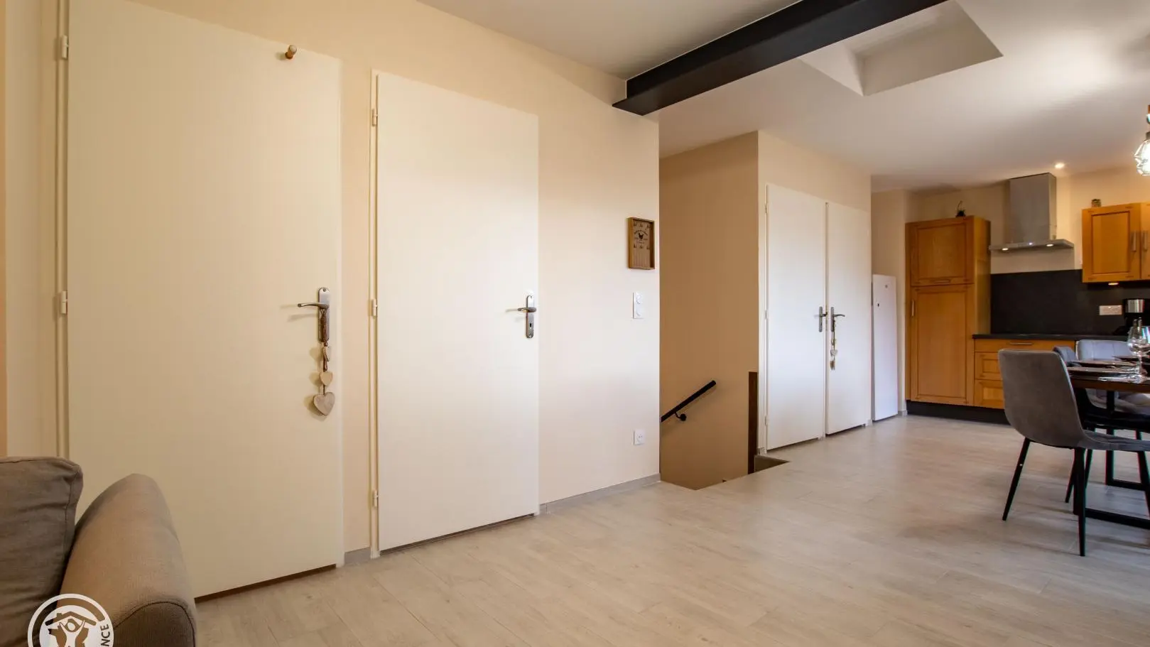 Appartement au 1er étage d'une grande bâtisse comprenant également deux autres gîtes. Accès indépendant par escalier intérieur.