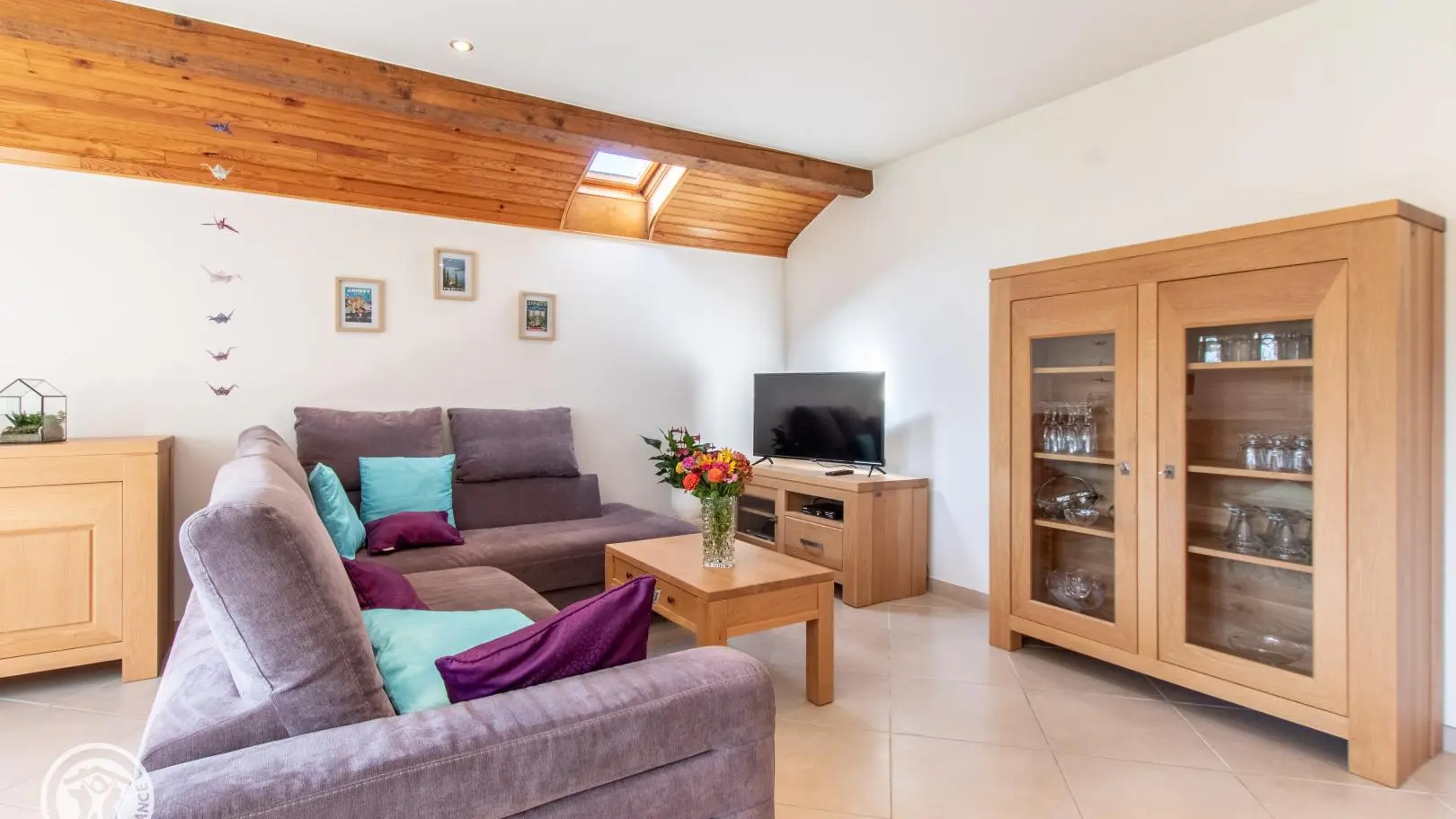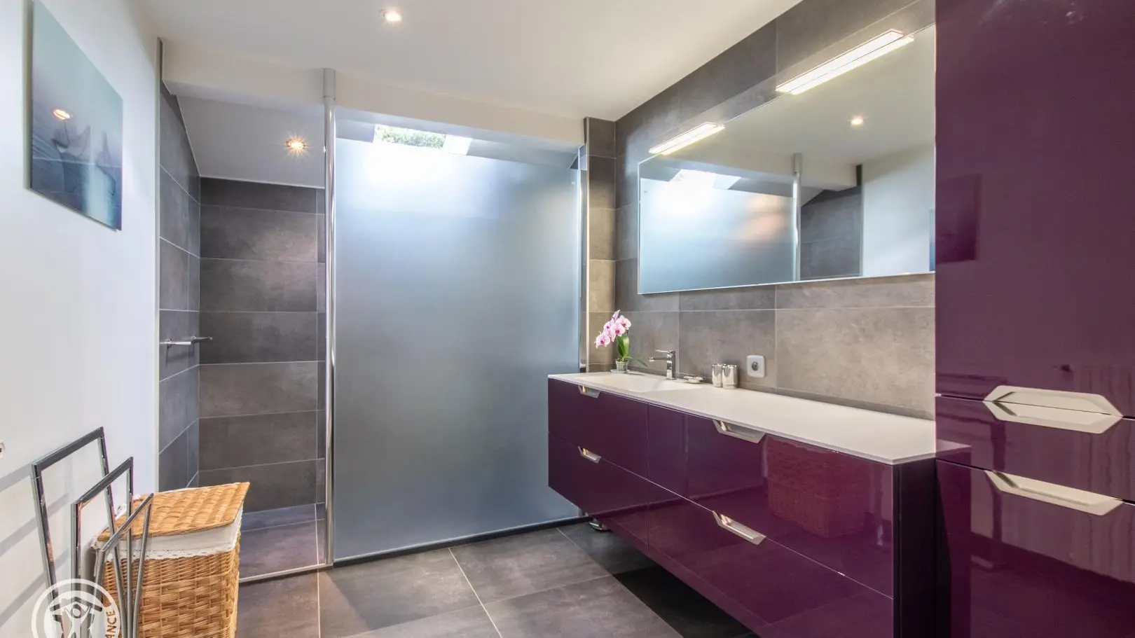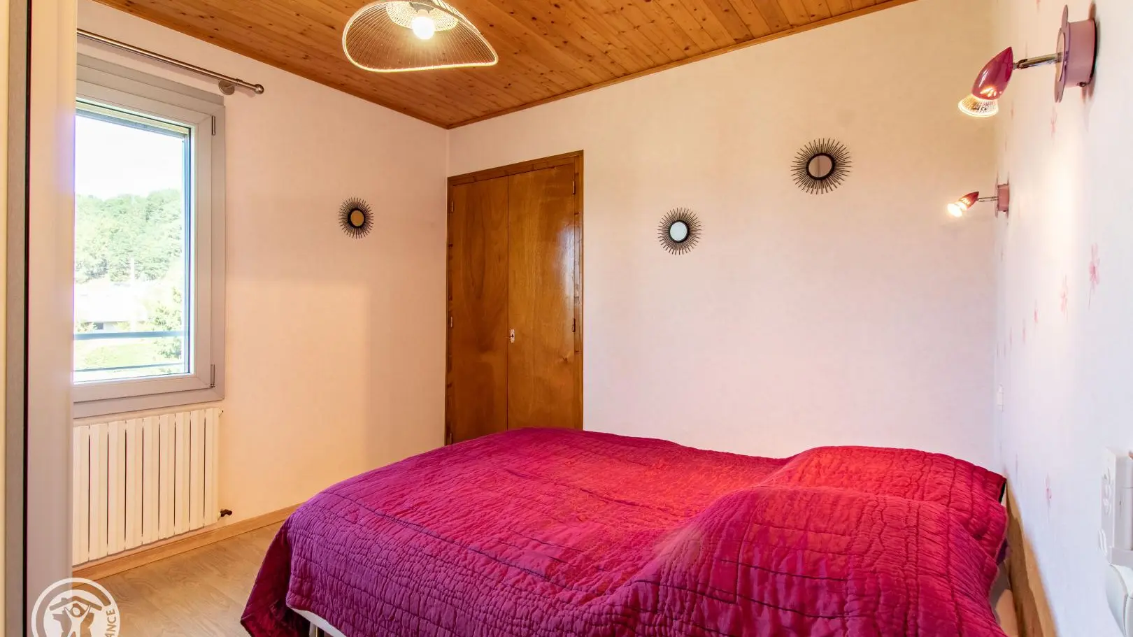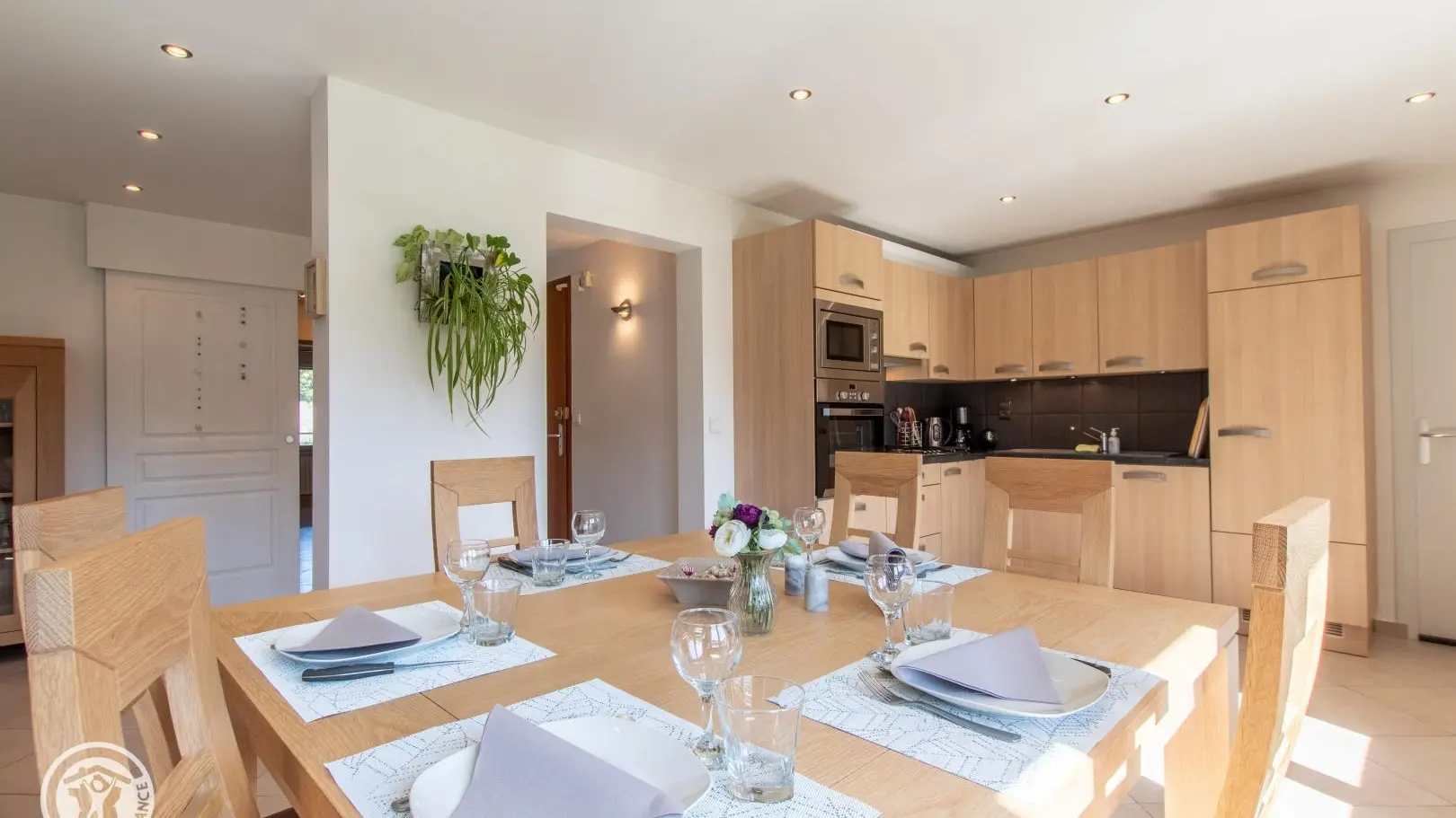 Gîte de 89 m² aménagé au 2ème étage d'une maison comprenant également le logement des propriétaires. Accès par escalier extérieur et intérieur (montée commune). Hall d'entrée avec ouverture sur pièce de vie comprenant une cuisine intégrée ouverte sur séjour (table jusqu'à 6 personnes) et un espace salon (canapé, TV). Cellier. Espace nuit et salles d'eau séparées du séjour par le hall et une porte coulissante. Chambre 1 (1 lit 140x190, dressing), chambre 2 (1 lit 140x190, dressing), chambre 3 (1 canapé convertible, rangements). Salle d'eau avec douche à l'italienne, vaste plan de toilette et nombreux rangements. WC indépendant. Lave-linge. Moustiquaires intégrées aux fenêtres. Accès espace extérieur sur le terrain autour de la maison. Grand espace jardin avec plancha, parasol, table de pique-nique en bois, chaises transat et bains de soleil Lafuma.