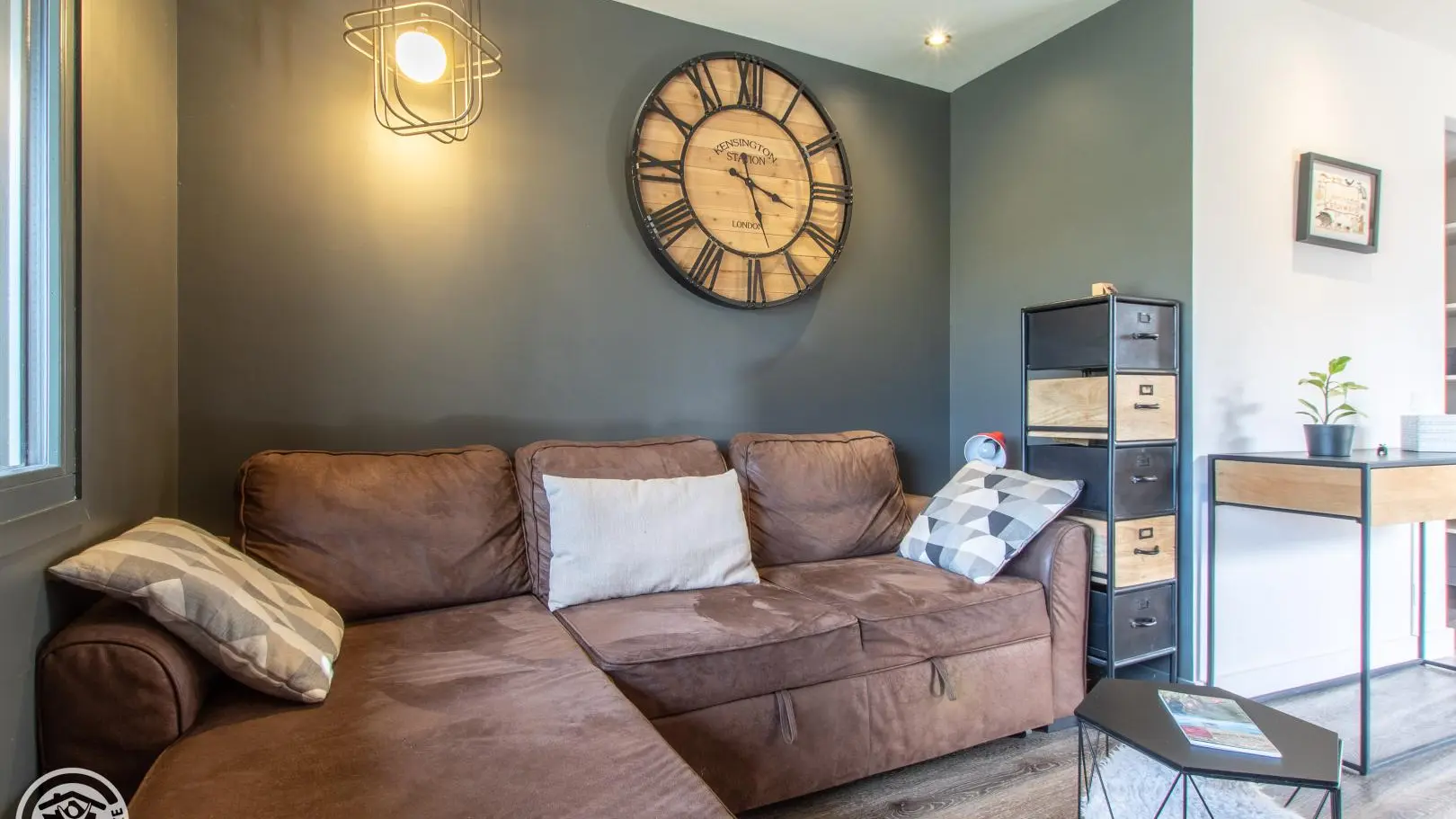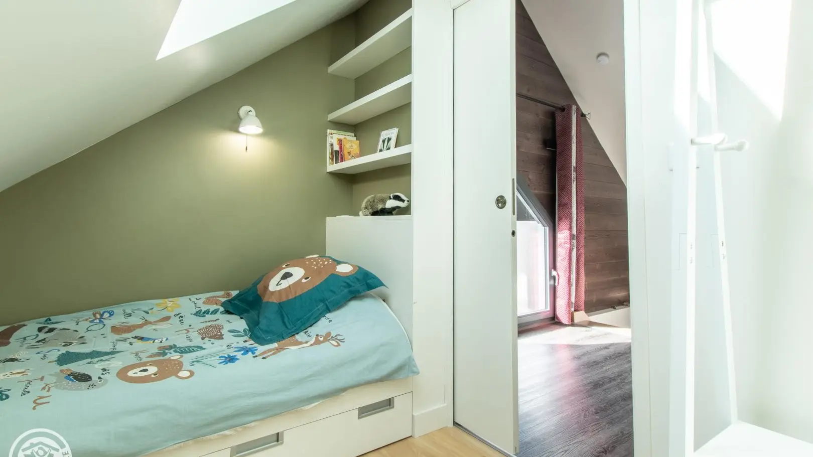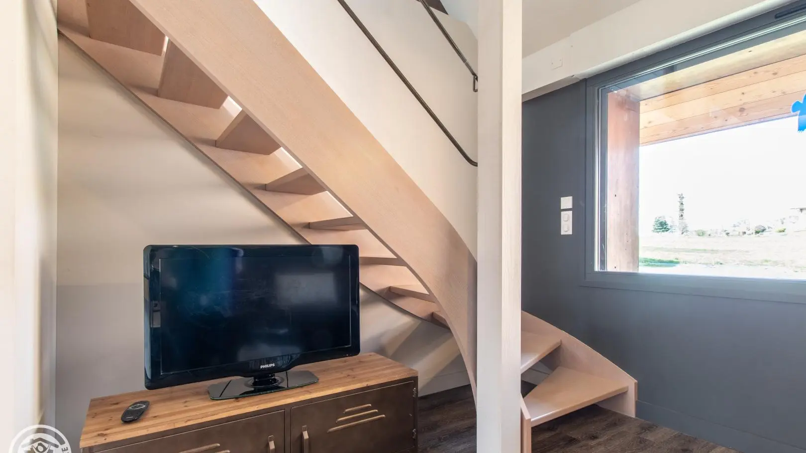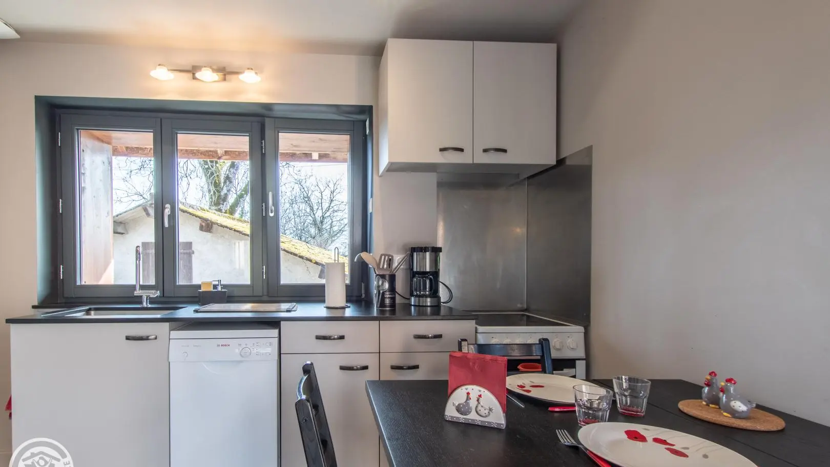 Dans une maison comprenant deux gîtes et le logement des propriétaires, hébergement de 36 m² (loi Carrez) sur deux niveaux comprenant en rez-de-terrasse une cuisine équipée (lave-linge, lave-vaisselle) avec table de repas ainsi qu'un séjour (TV sous escalier, canapé convertible avec méridienne). Espace rangement et WC indépendant. A l'étage, chambre 1 (1 lit 140x190) et chambre 2 (1 lit 90x190) mansardées. Salle d'eau avec douche et vasque sur meuble, WC.