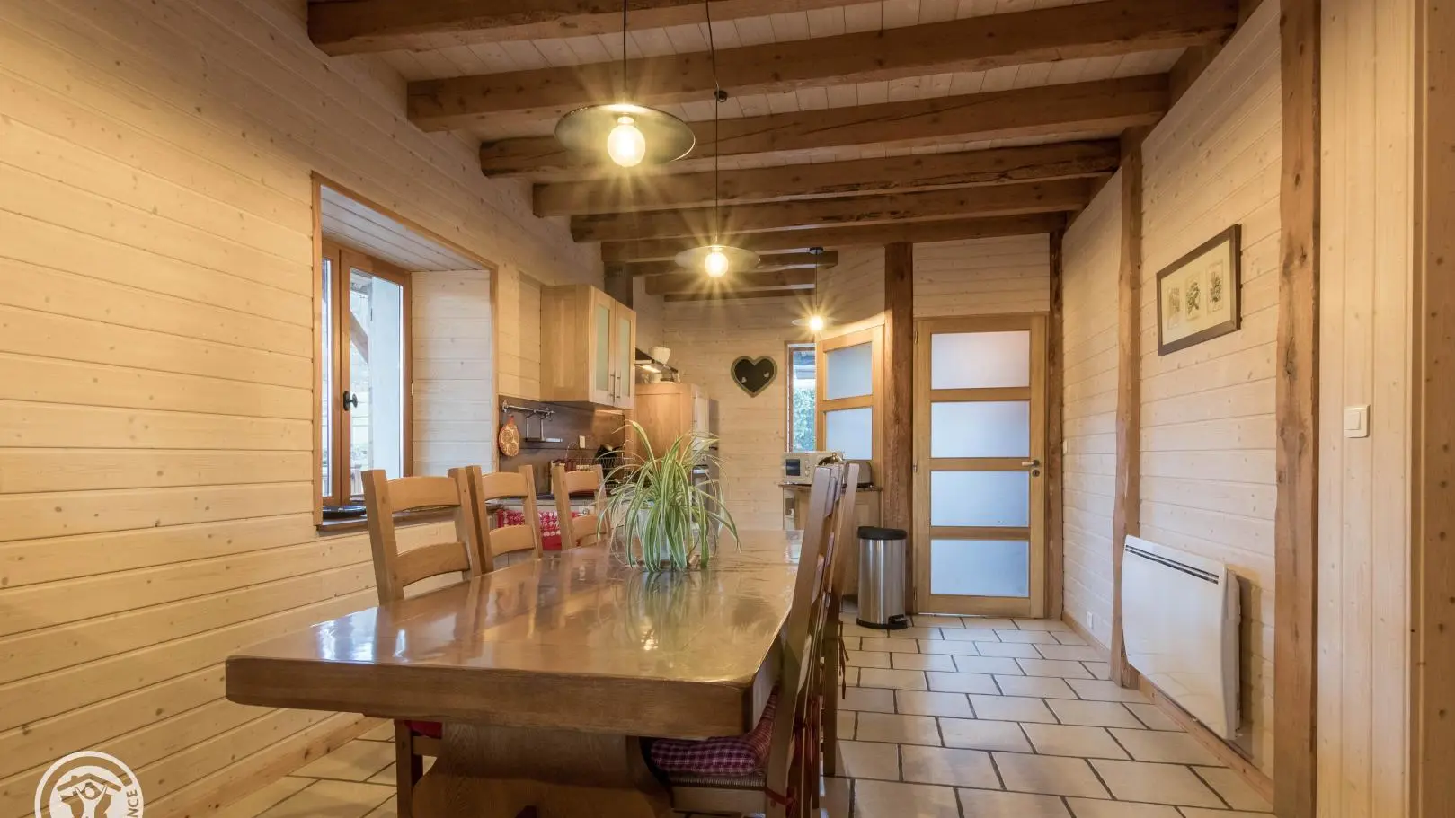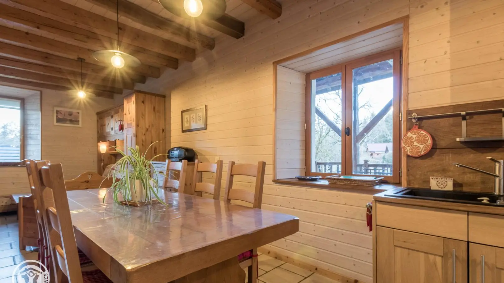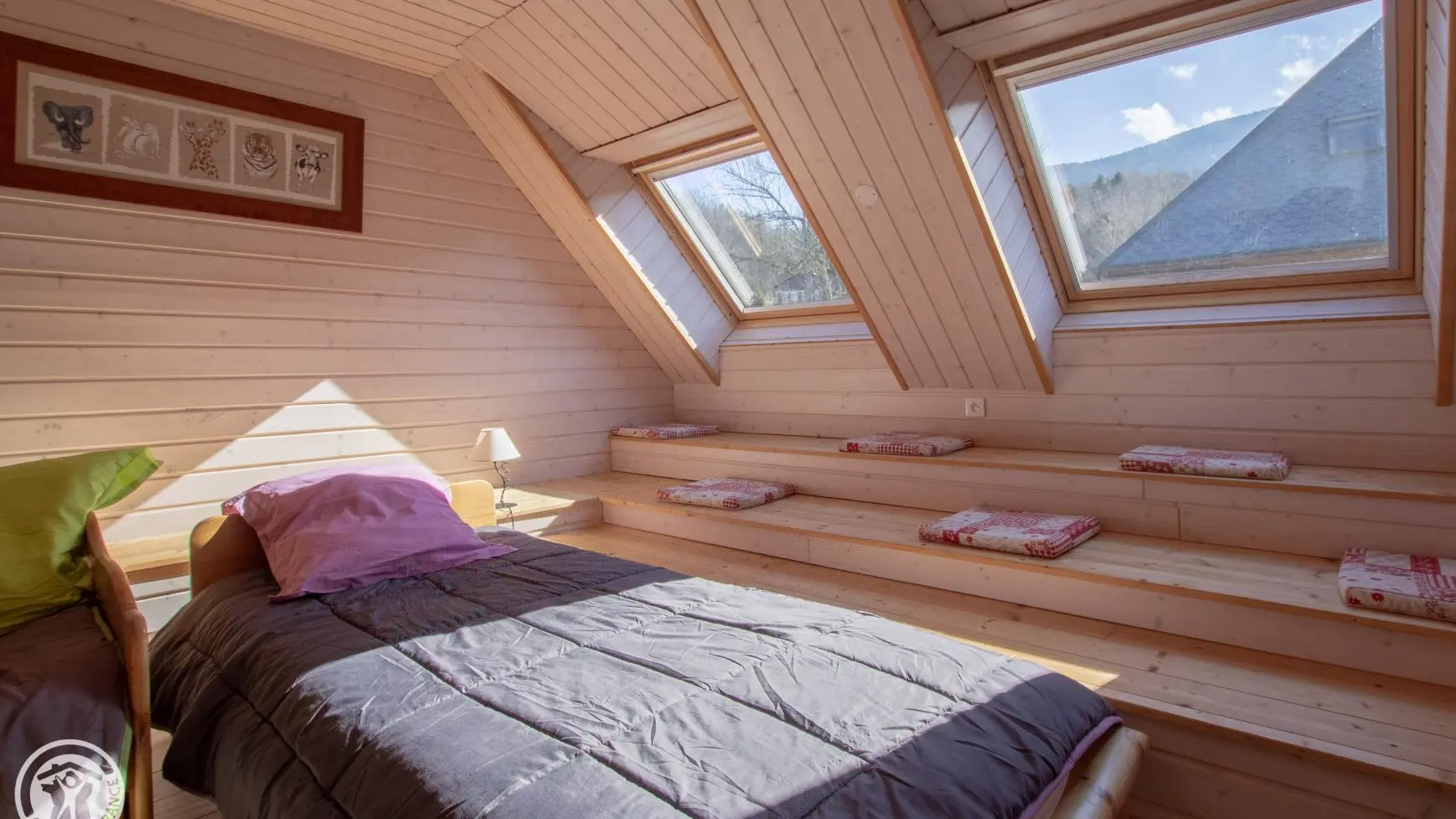 Dans une ancienne ferme classée au patrimoine et restaurée avec goût, au cœur du Parc Naturel du Massif des Bauges, à proximité d'Annecy et d'Aix-Les-Bains, gîte de 78m² + mansardes aménagé sur 2 niveaux, mitoyen à l'habitation des propriétaires. Belle ambiance montagne. Entrée indépendante. Rez-de-chaussée : cuisine ouverte sur séjour (poêle à bois, canapé.), salle d'eau , wc indépendant. A l'étage : chambre 1 (1 lit 140x200cm), chambre 2 (3 lits 90cm + 1 lit en gigogne d'appoint), salle d'eau, wc indépendant. Possibilité de location de draps. Coin terrasse (barbecue, salon de jardin), jardin. Cour, parking. Annecy (lac/plages, vieille ville) à 12km, Aix les Bains et son lac à 23km. Ski (piste, fond, promenades en raquettes) au Semnoz à 13km. Nombreuses randonnées dans le PNR des Bauges.