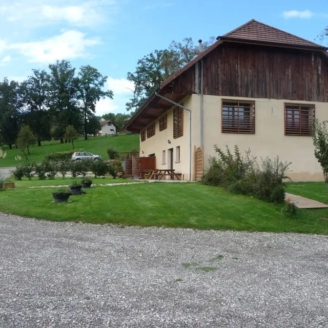 A quelques minutes d'Annecy et de son lac, au cœur de la campagne albanaise, grande ferme transformée en 4 gîtes mitoyens. Gîte de 50 m2 aménagé de plain pied. Cuisine équipée (micro-ondes) ouverte salon (clic-clac 2 personnes). Chambre (1 lit 140). Salle d'eau/WC. Chauffage central, terrasse avec mobilier, barbecue, jardin. Draps, linge de toilette fournis, lits faits. Démarche environnementale sur la gestion de l'eau. Vue panoramique sur les sommets du bassin annécien.