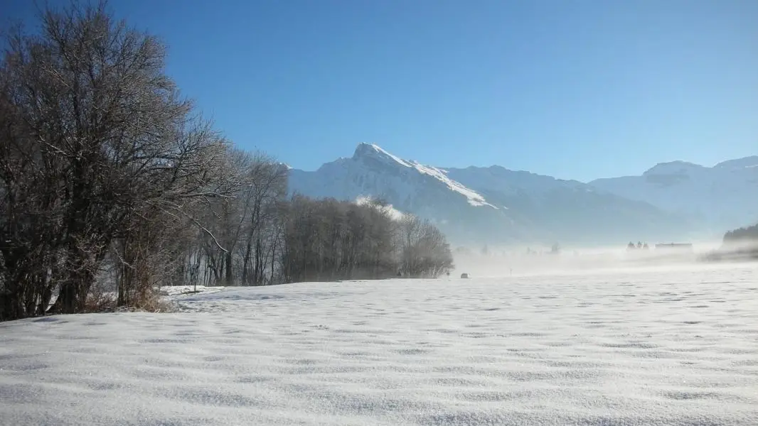 Vue panoramique sur les sommets des Dents Blanche au Buet. Gîte au 1er étage dans maison savoyarde (61 m2). Coin cuisine, salle à manger et salon (TV), Chambre 1 (1 lit 2 pers., 1 lit 1 pers), Chambre 2 (1 lit 2pers., 1 lit bébé), Salle de bains, wc in...