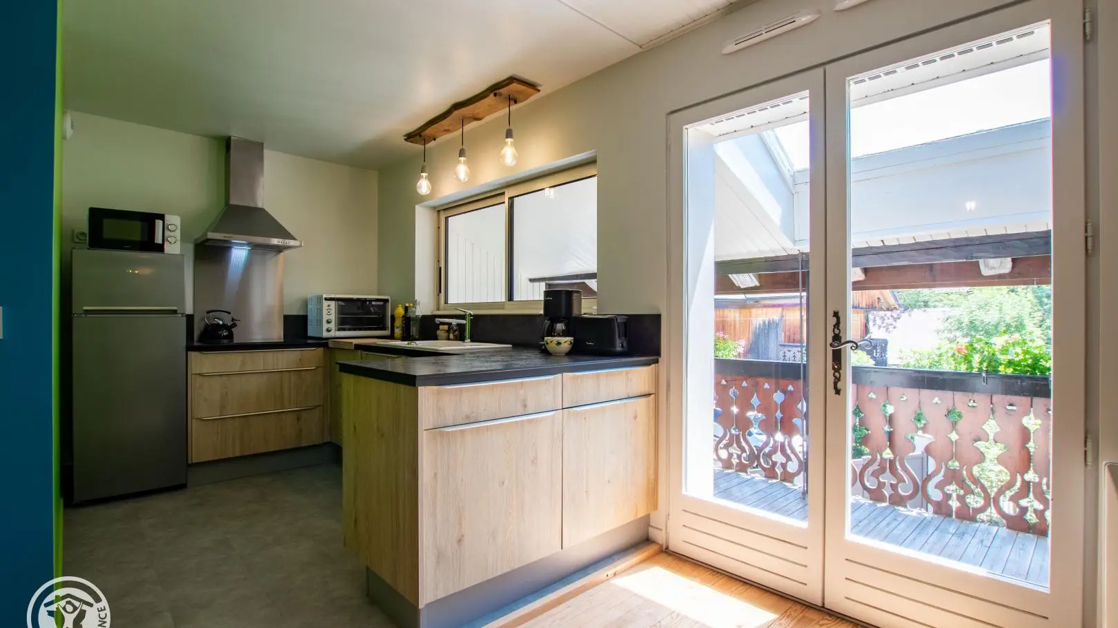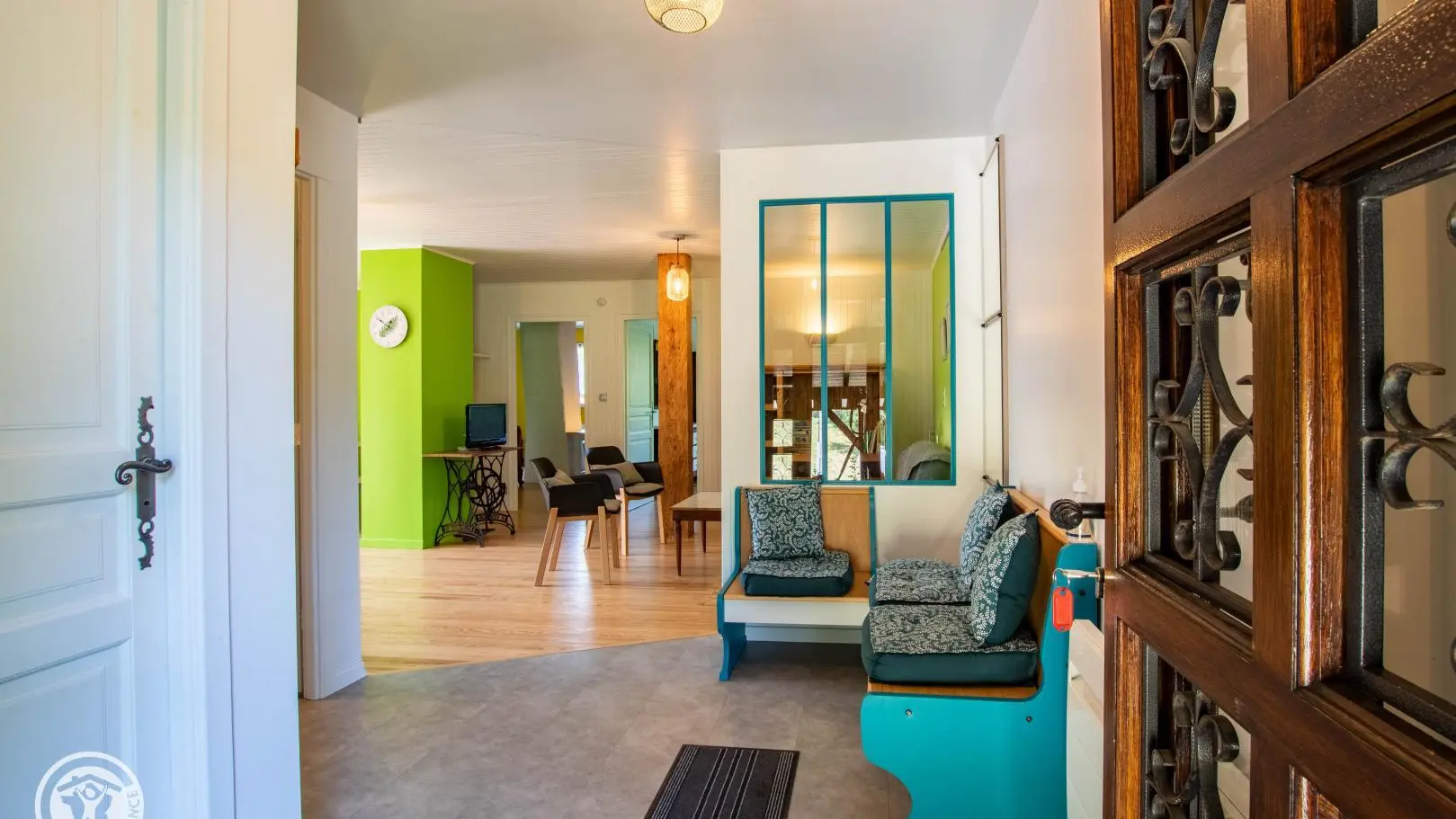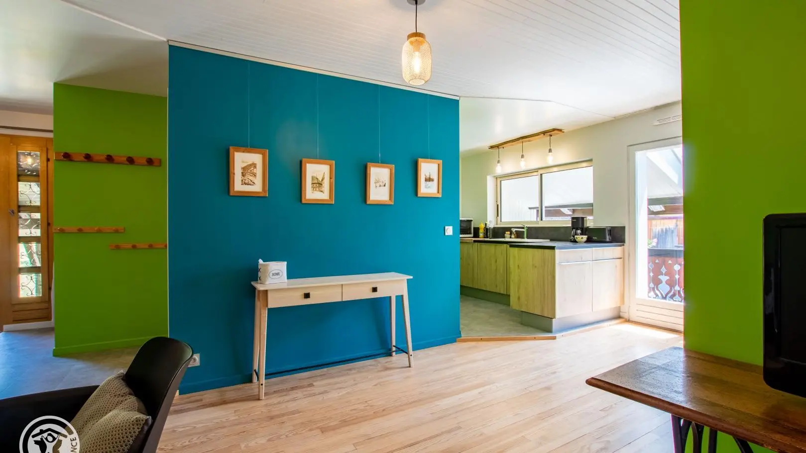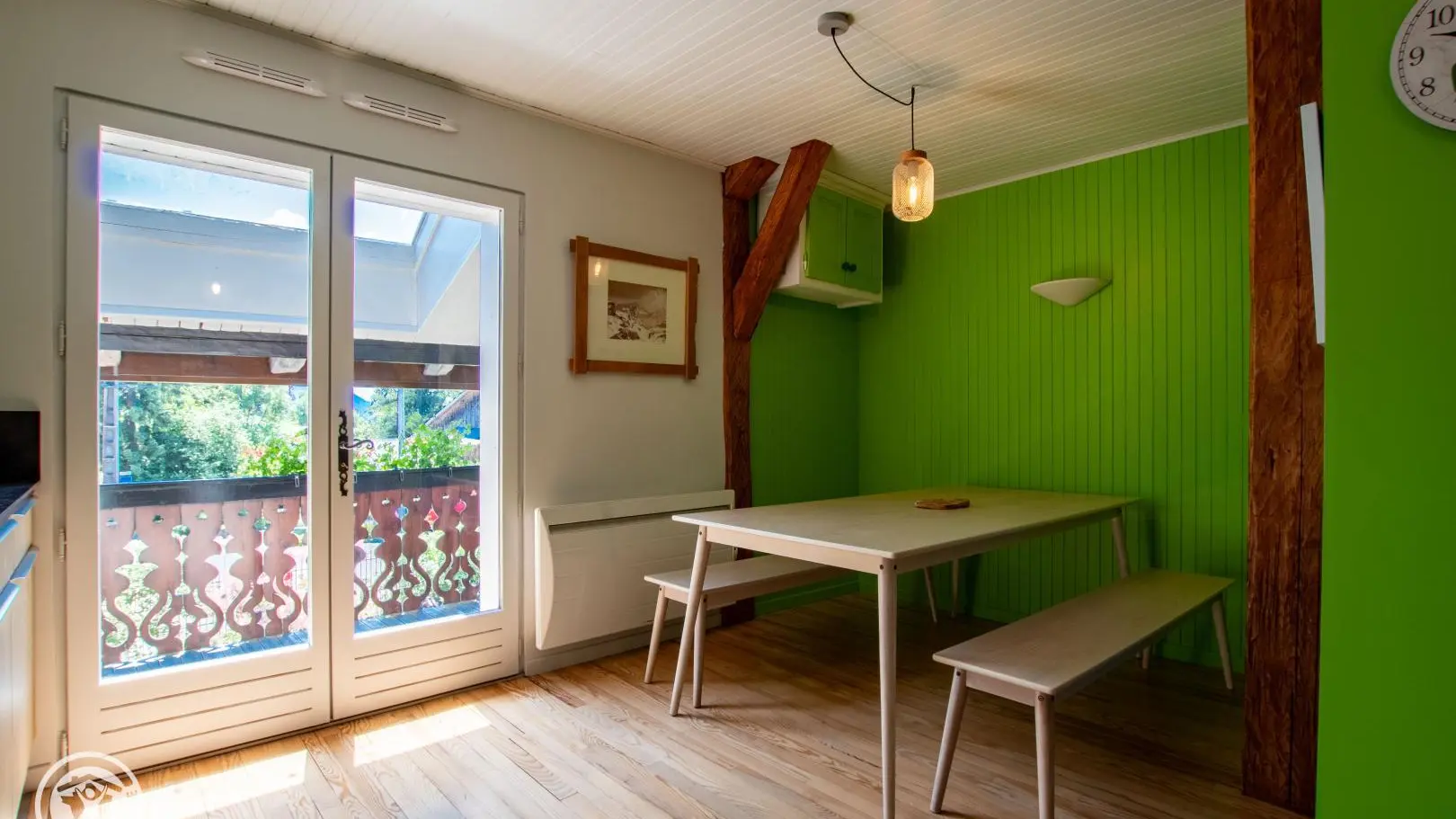 Gîte de 84m2 situé dans une maison de montagne, rénovée au 1er étage et mitoyen à l'appartement des propriétaires.