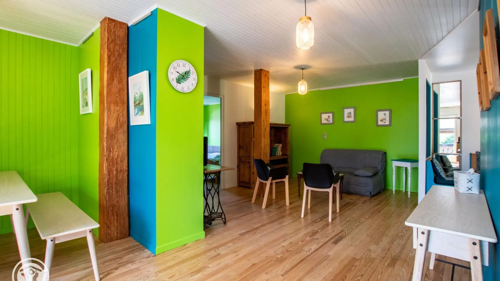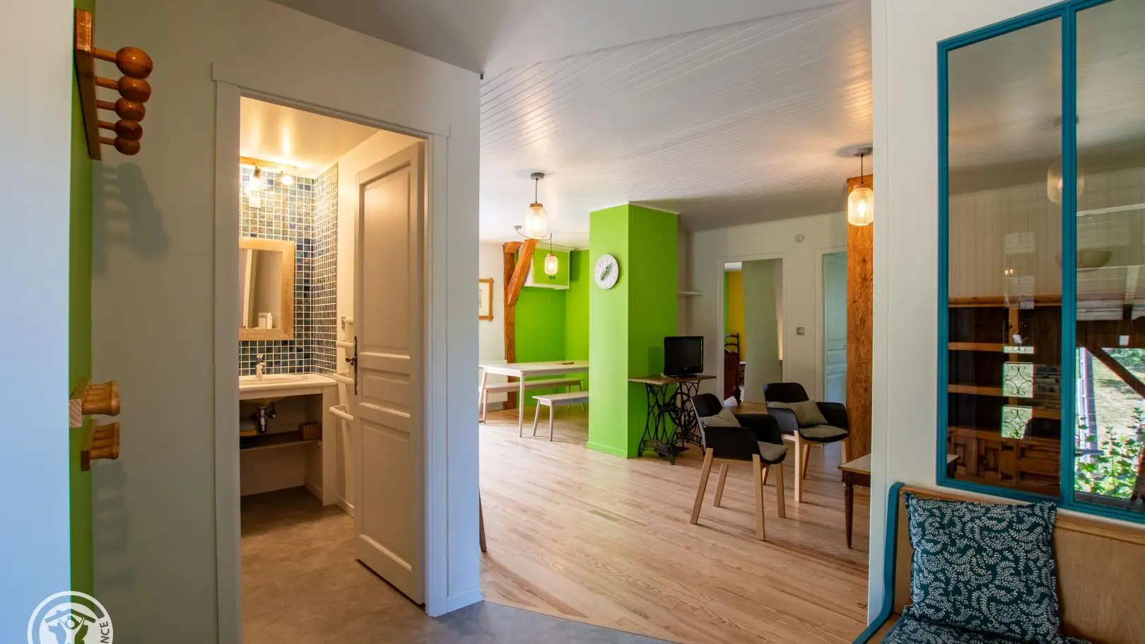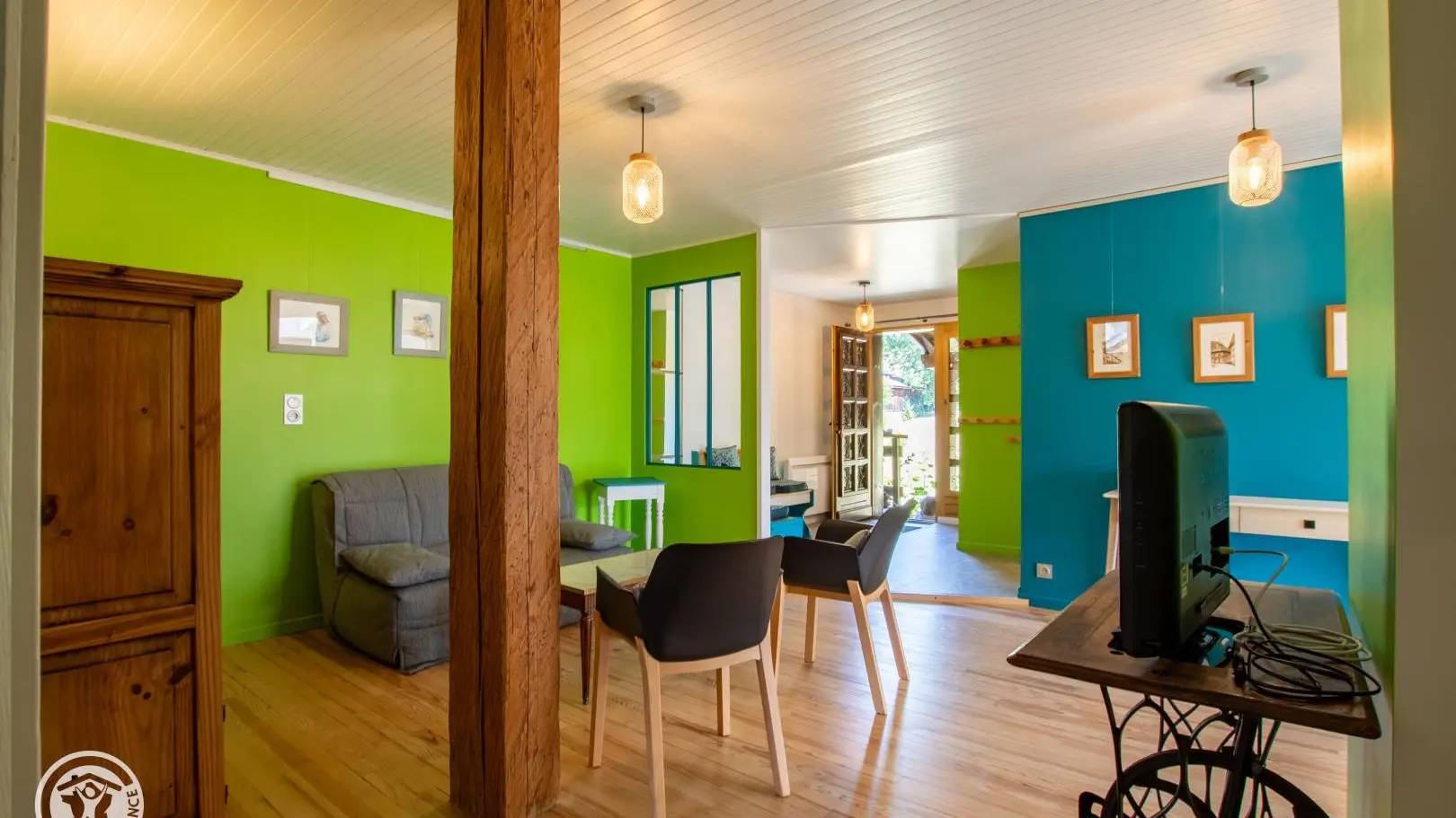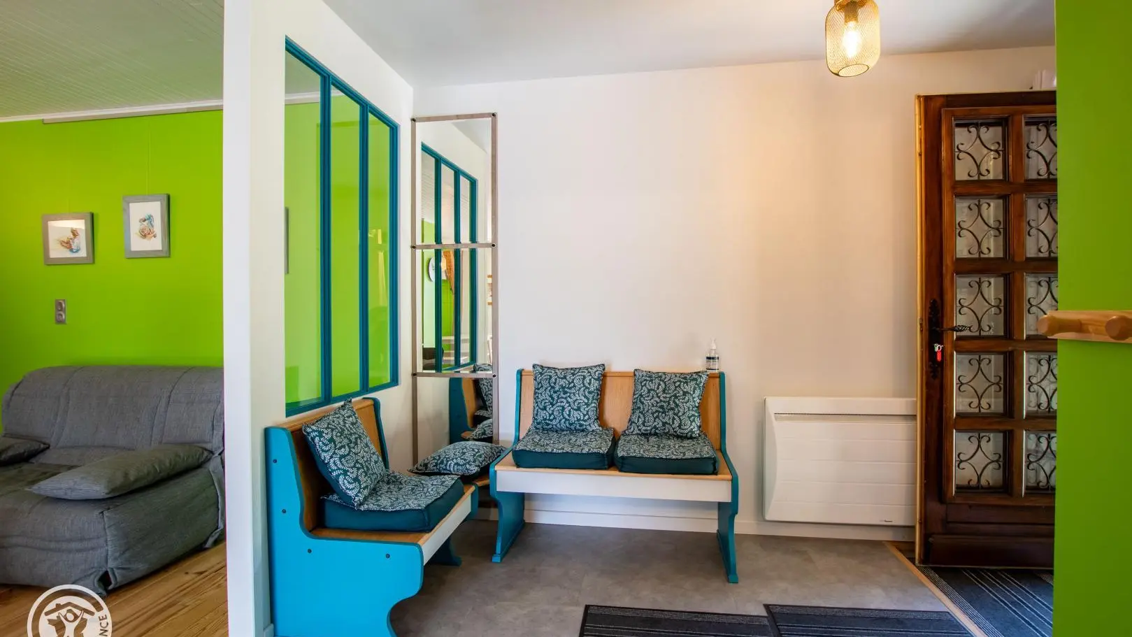 Gîte de 84m2 situé dans une maison de montagne, rénovée au 1er étage et mitoyen à l'appartement des propriétaires.