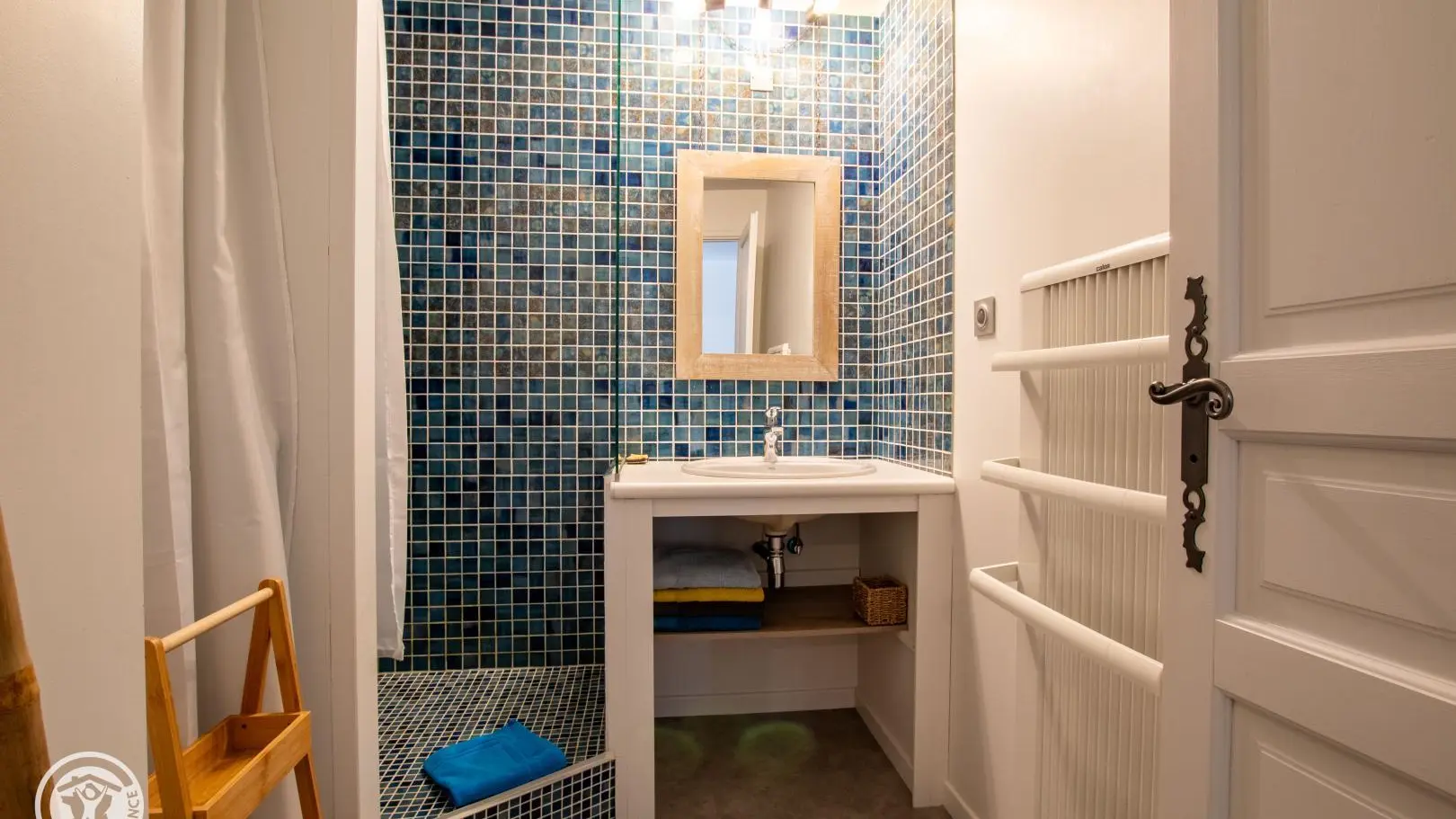 Salle d'eau avec douche à l'italienne, lave-linge, wc indépendant.