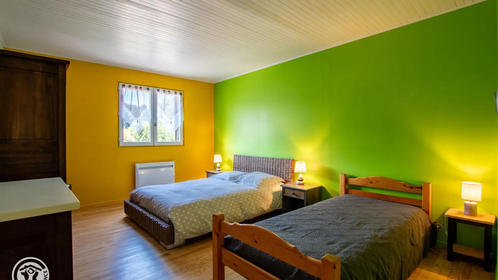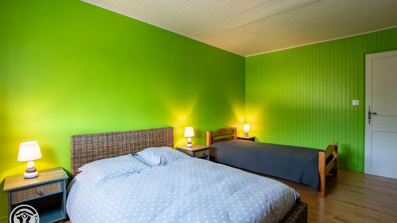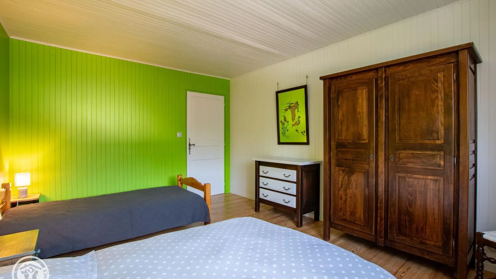 Chambre 1 : 1 lit 130x190 cm et 1 lit 90x190 cm avec bureau et commode. Chambre 2 : 1 lit 140x190 cm et 1 lit 90x190 cm avec armoire penderie et commode.
