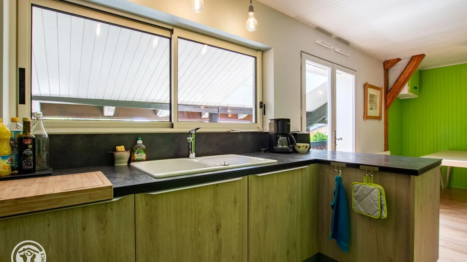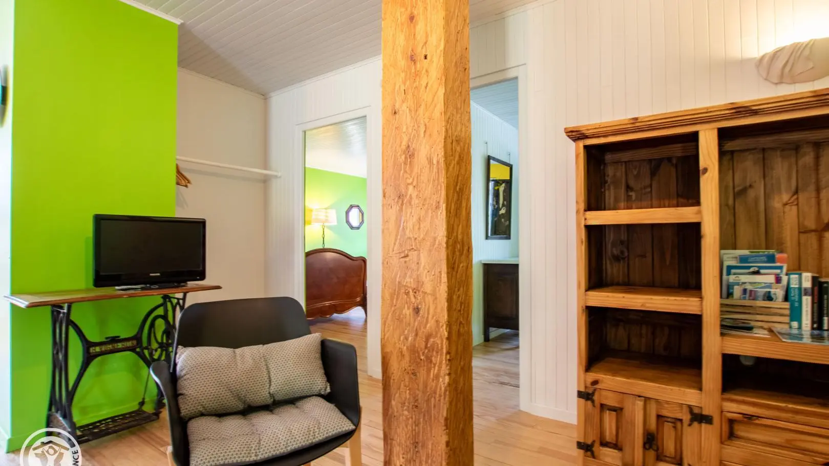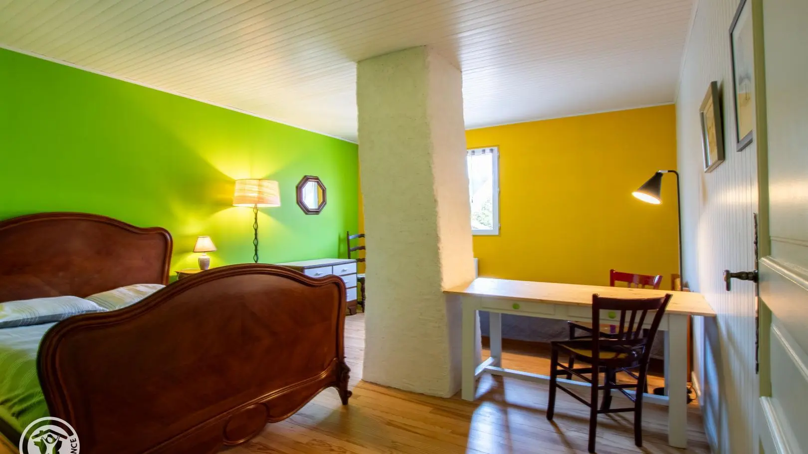 Chambre 1 : 1 lit 130x190 cm et 1 lit 90x190 cm avec bureau et commode. Chambre 2 : 1 lit 140x190 cm et 1 lit 90x190 cm avec armoire penderie et commode.
