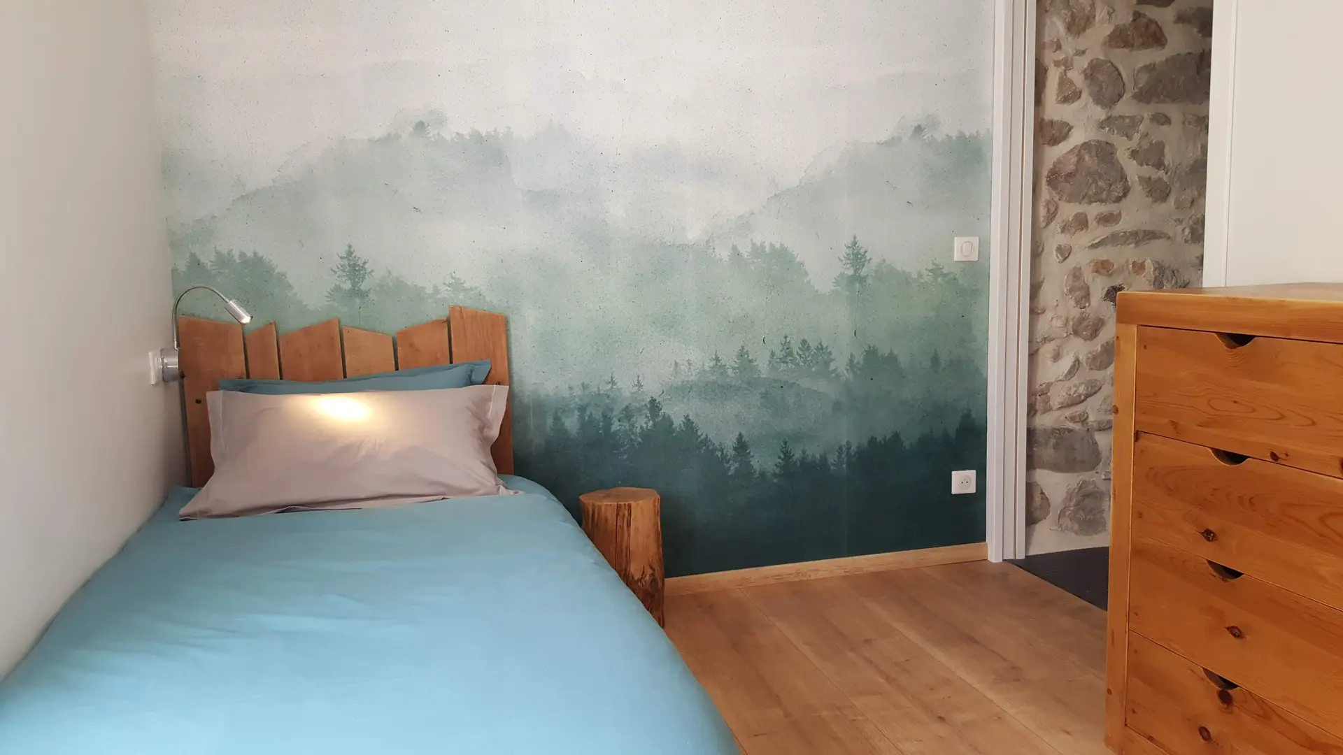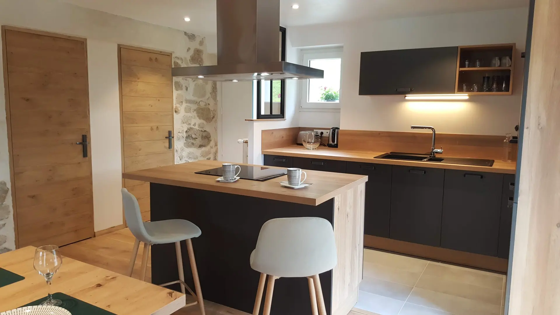 Appartement entièrement rénové en 2020, de plain pied, comprenant une belle pièce à vivre, 2 chambres. Grande terrasse de 23 m² bien orientée sud, ensoleillée du lever au coucher du soleil. Vue sur la campagne. Environnement très calme dans petit hameau.
