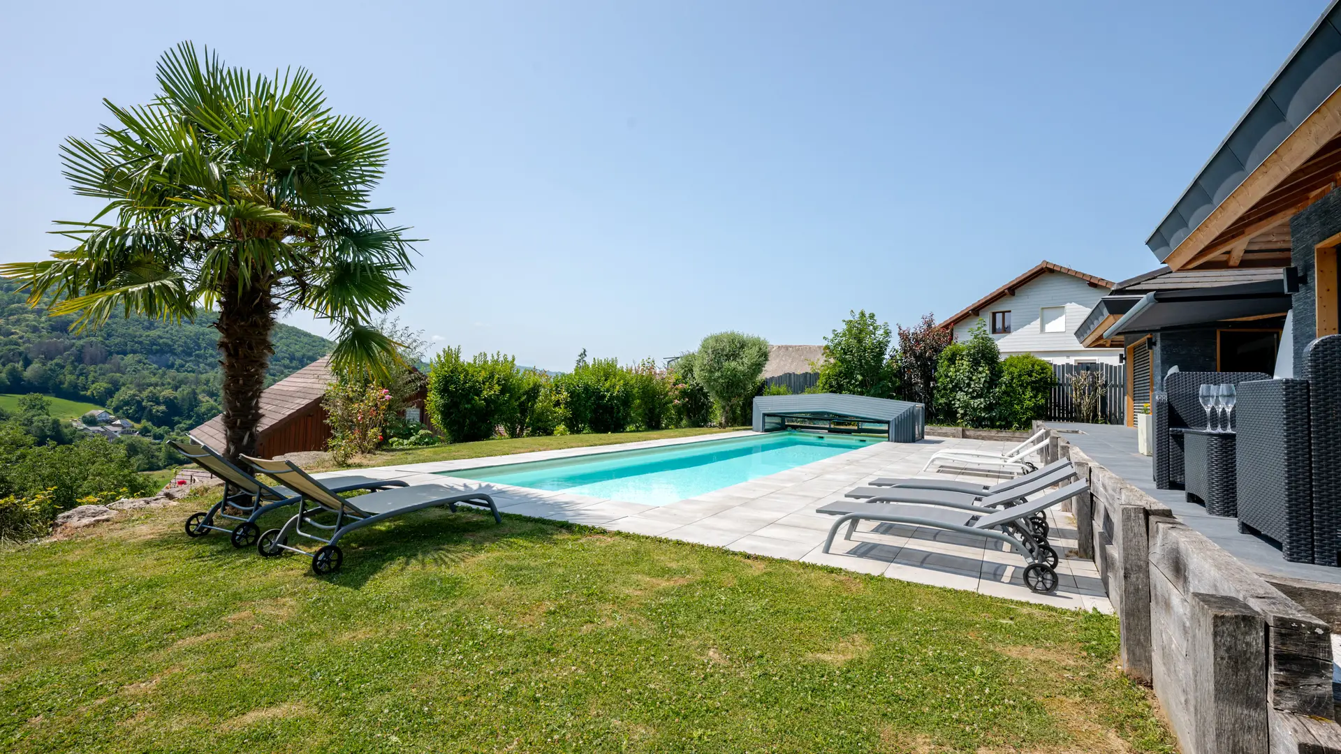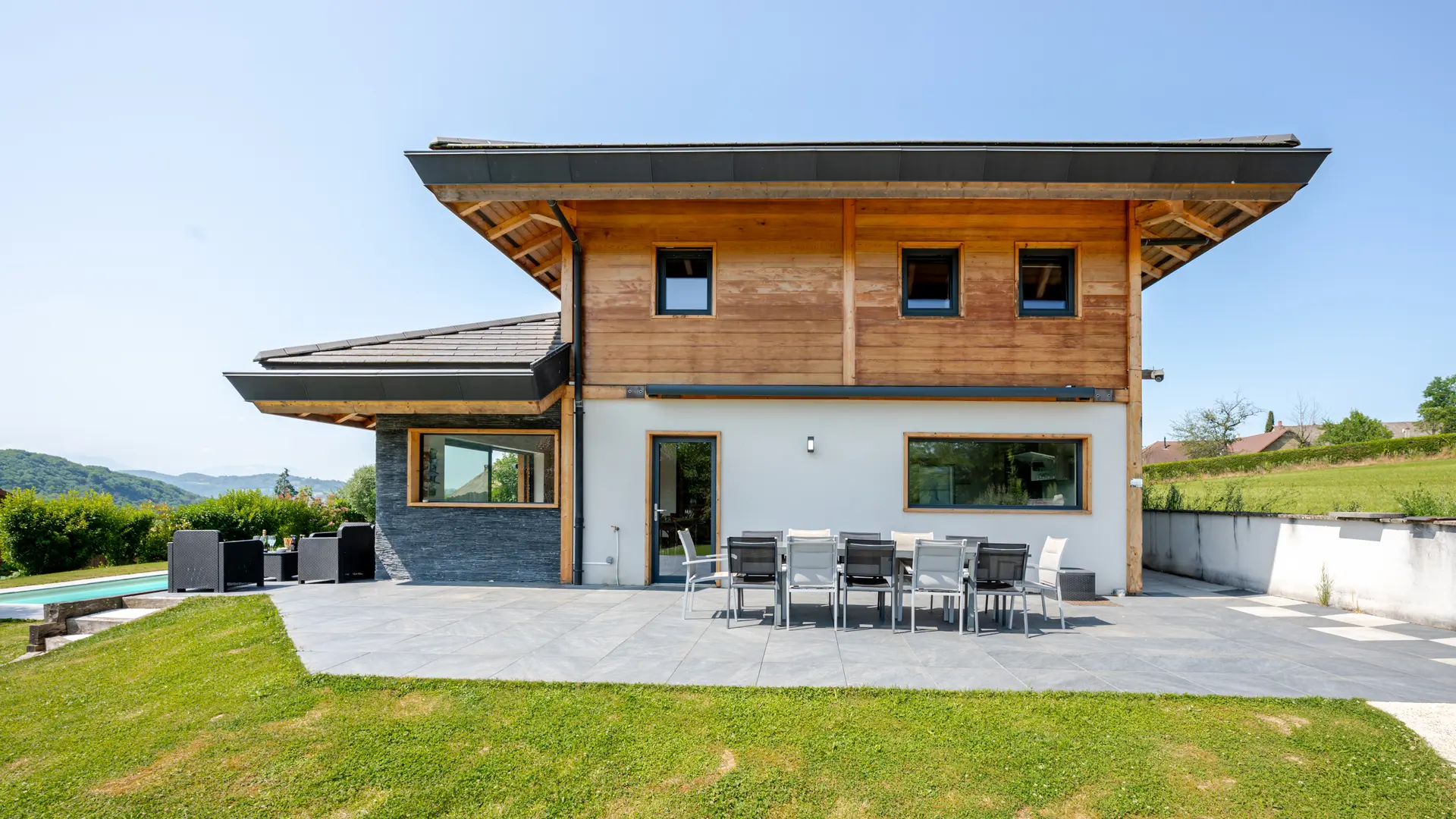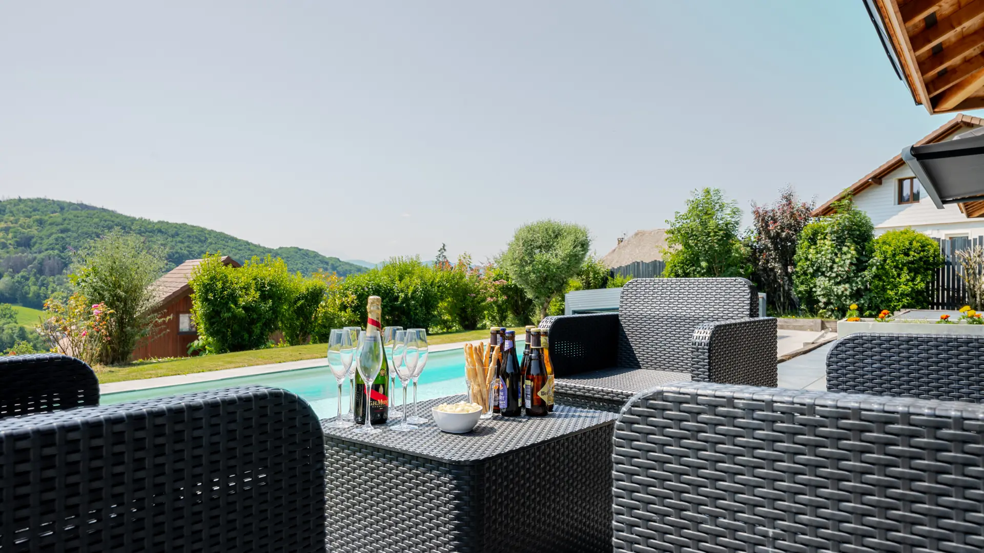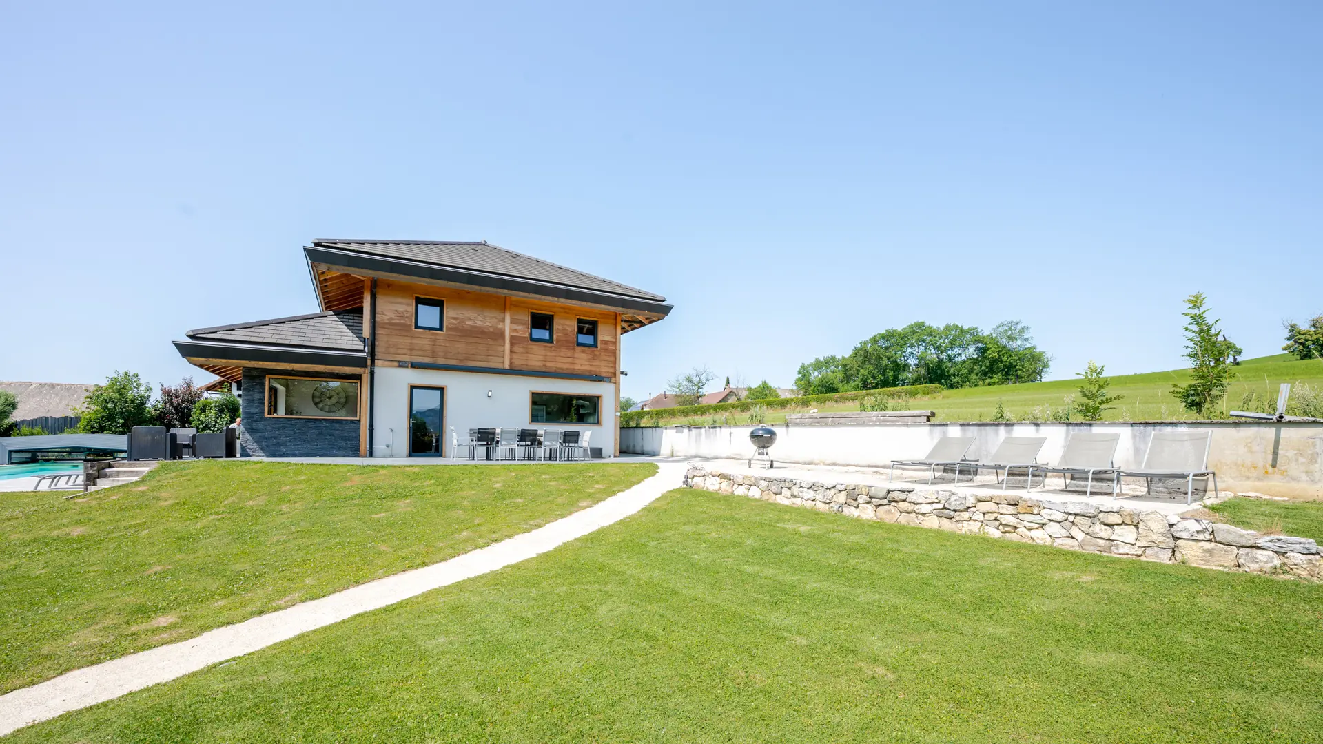 Gite au calme en situation dominante situé à 12 km d'Annecy avec accès sécurisé, parking pour 5 voitures, piscine ouverte de début mai à fin septembre, climatisation. Idéal pour les regroupements de famille ou d'amis. Fêtes et bruit non autorisés.