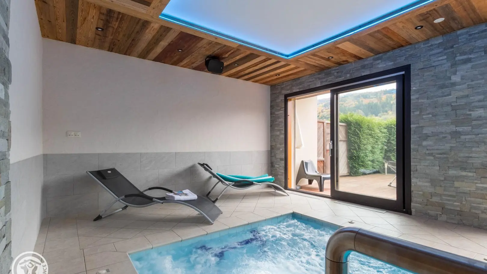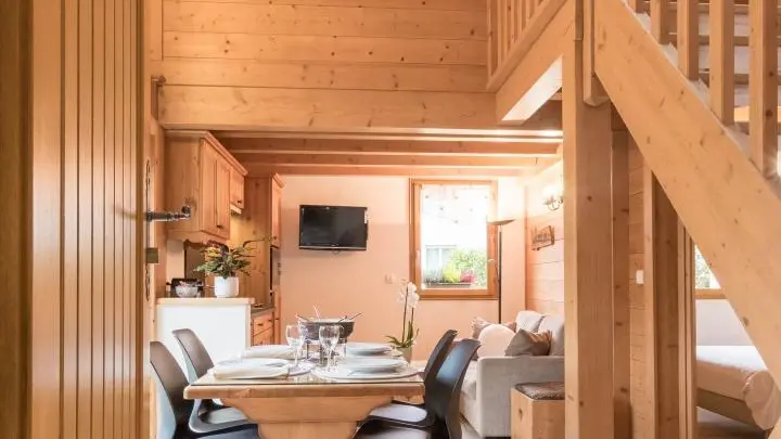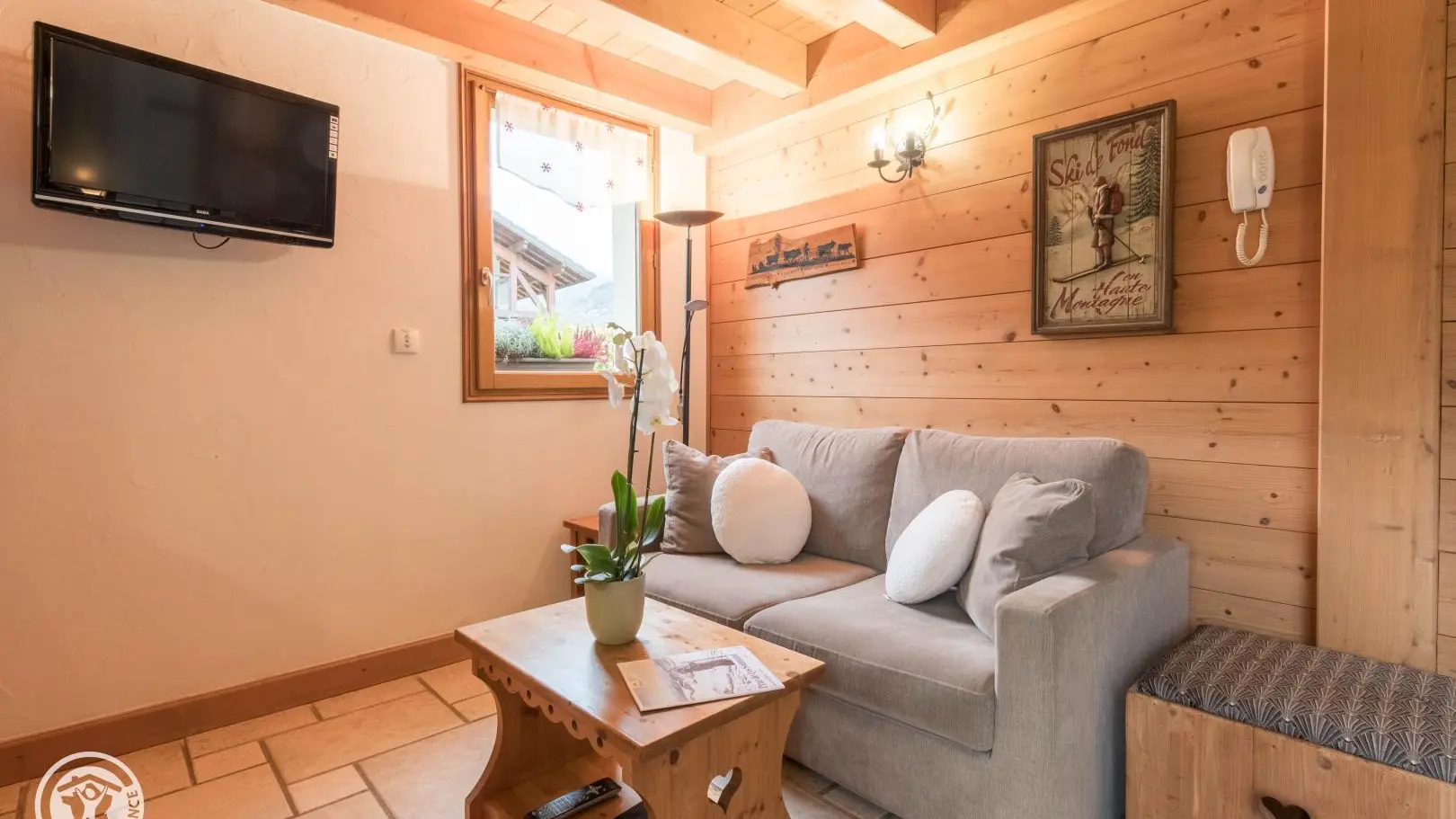 Cadre idéal pour faire une pause et se ressourcer! A mi-chemin entre Samoëns et Les Gets, gîte de 40 m2 + mansardes, situé dans une maison comprenant un autre gîte et le logement des propriétaires. Entrée commune et de plain-pied. Cuisine intégrée ouverte sur séjour (TV 30 chaînes européennes, DVD), CH1 (1 lit 140), salle de bains, WC. A l'étage : CH2 (2 lits 90). Chauffage central. Draps fournis et lits faits à l'arrivée, serviettes fournis. Terrasse, jardin, abri voiture, cave, laverie commune. A disposition en intérieur : piscine/spa à 34 °C avec jets d'hydromassages. Sauna et espace remise en forme. Navette à 800 m (Praz-de-Lys)