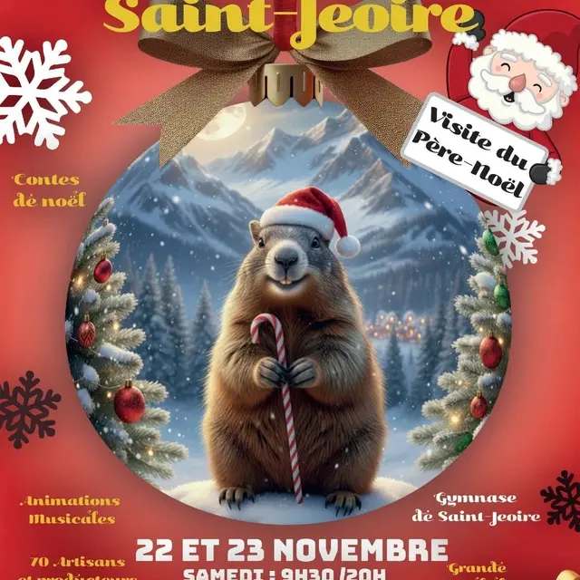 Marché de Noël de Saint-Jeoire. 80 exposants, artisans et producteurs locaux (gourmandises, thés, escargots, noix, sculptures, peintures, travail du bois, crochet, couture, bijoux, cuir, etc). Visite du Père Noël avec dépôt de commandes dans la boîte aux lettres. Repas panini le samedi, grande tartiflette le dimanche ! Contes en musique, animations musicales. Concours de Rissoles !