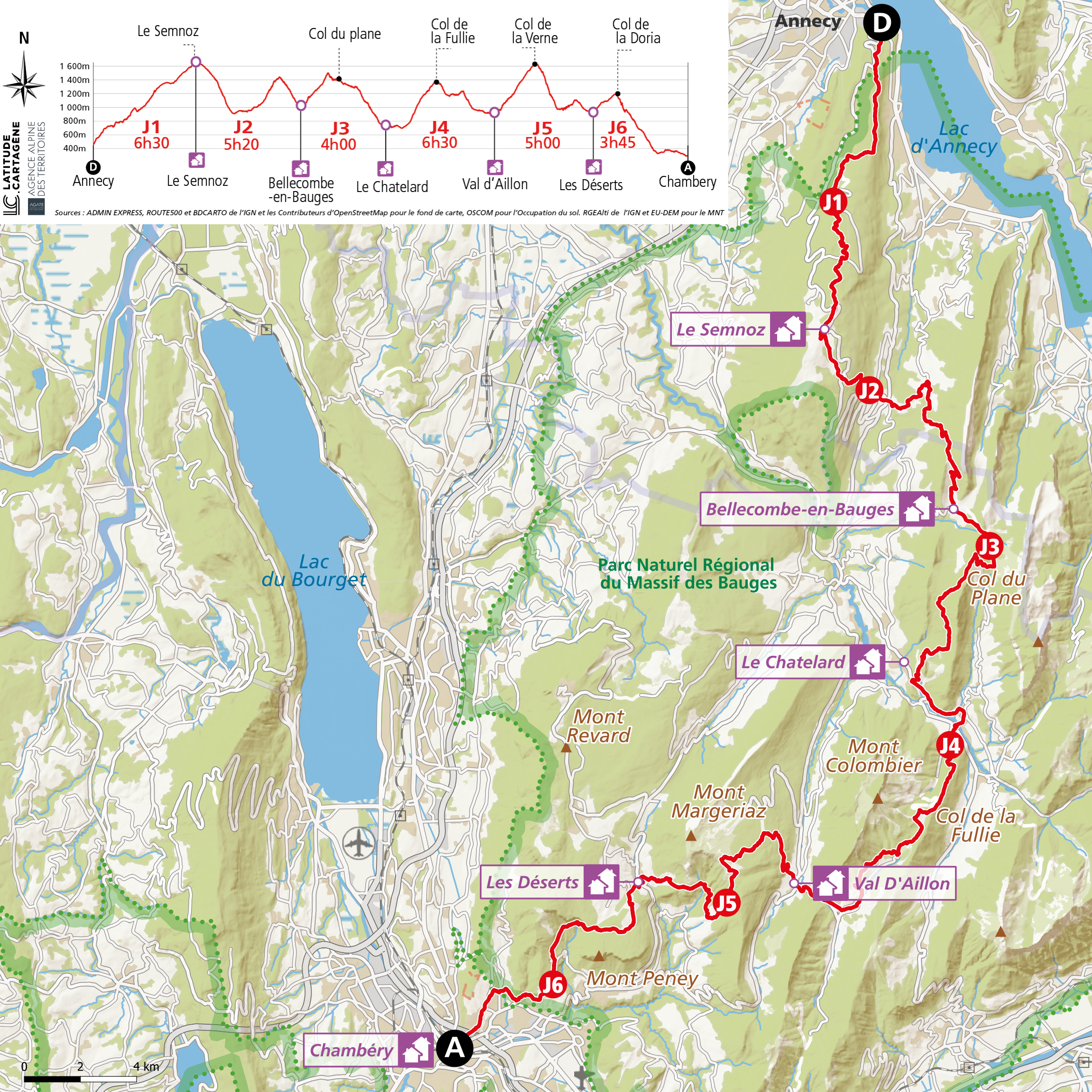 6 jours d'itinérance douce, de gare à gare, pour une traversée intégrale du massif des Bauges. Au cœur des Savoie, un trait d'union original reliant les deux capitales Savoyardes, Annecy et Chambéry !