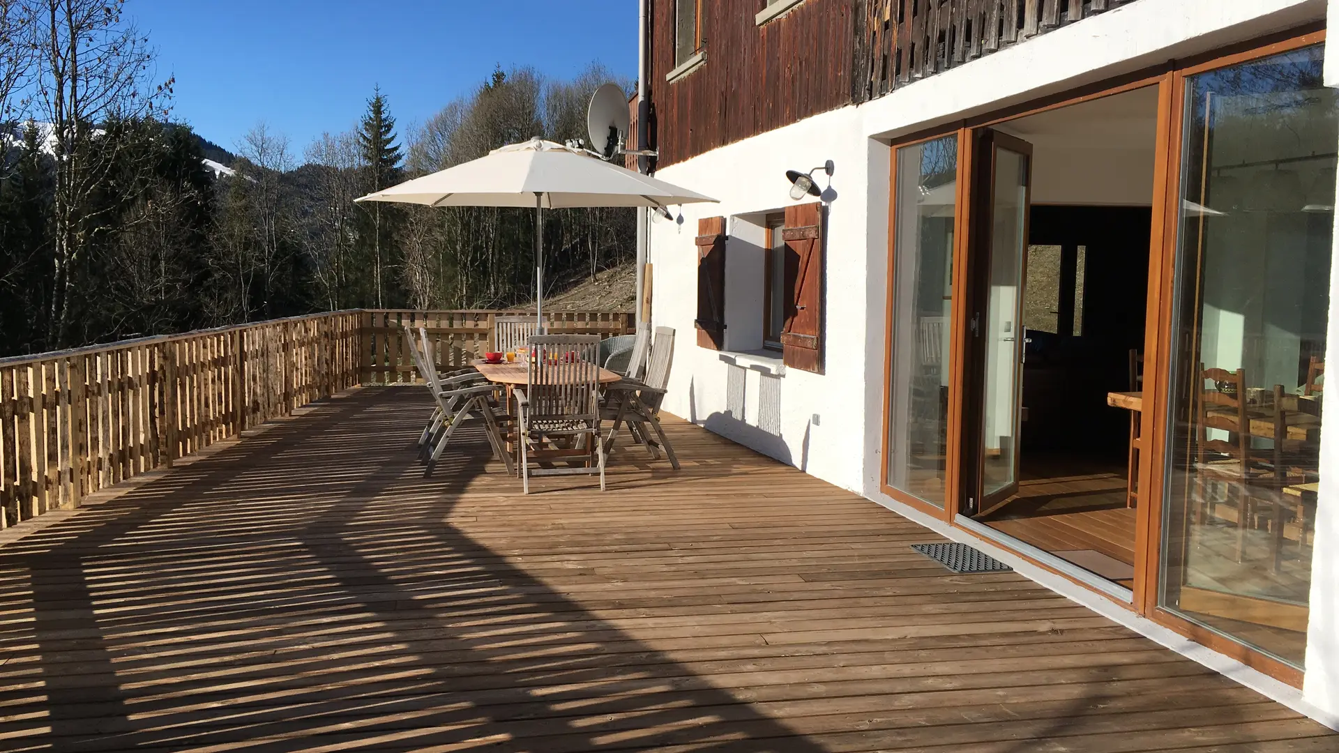 Le chalet est accroché à la montagne, entouré de nature sans vis-à-vis. L'appartement très calme et spacieux occupe la totalité du rez-de-chaussée. Il dispose seul des terrasses et du jardin. Il a un sauna, poêle cheminé, trampoline, balançoires, jeux de société, plancha… Il est proche des commodités, à 1,5 km seulement du village des Gets et des remontées mécaniques. Le ménage est compris dans le tarif mais les draps et serviettes ne le sont pas. Ils peuvent être fournis en supplément.