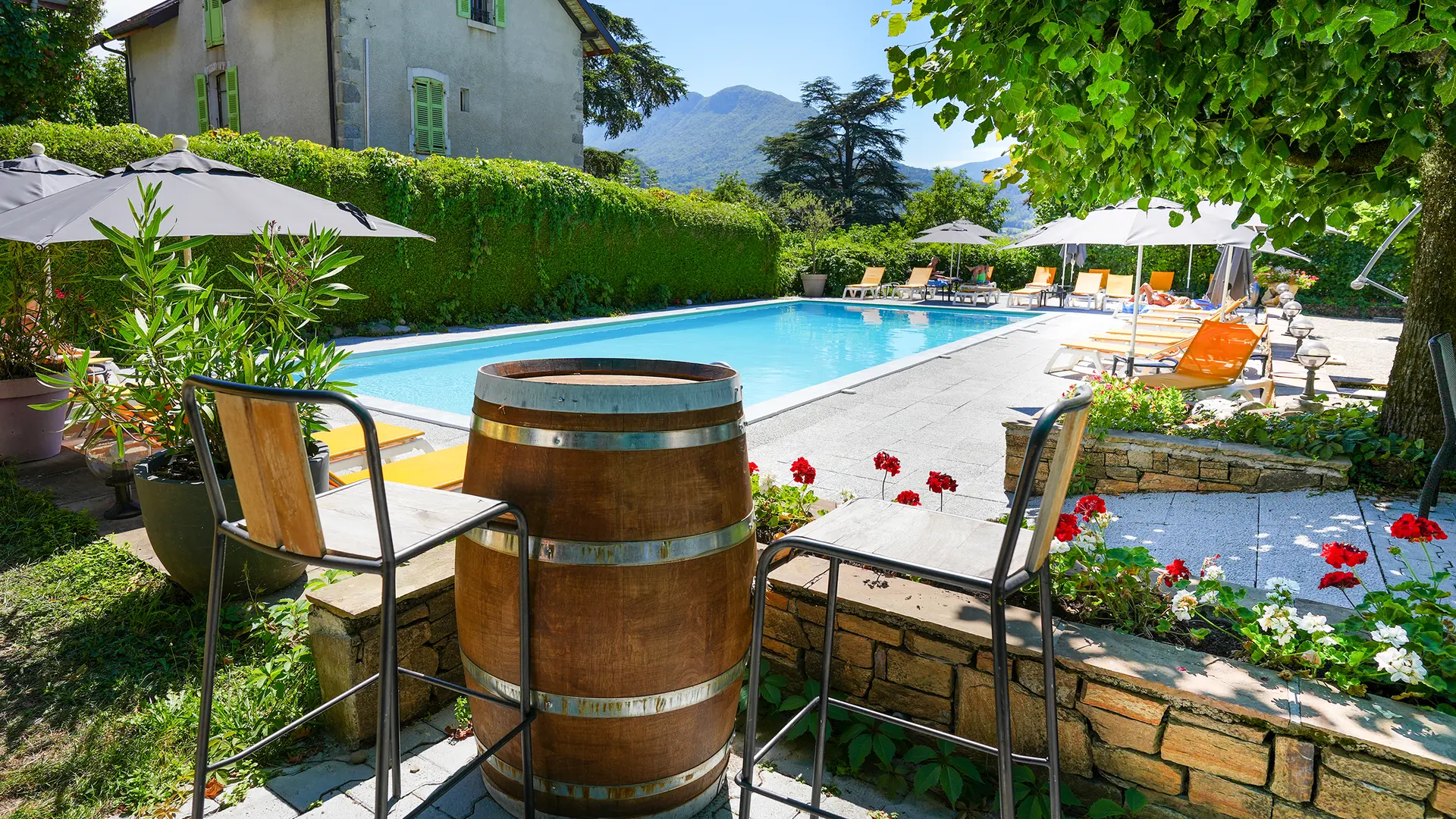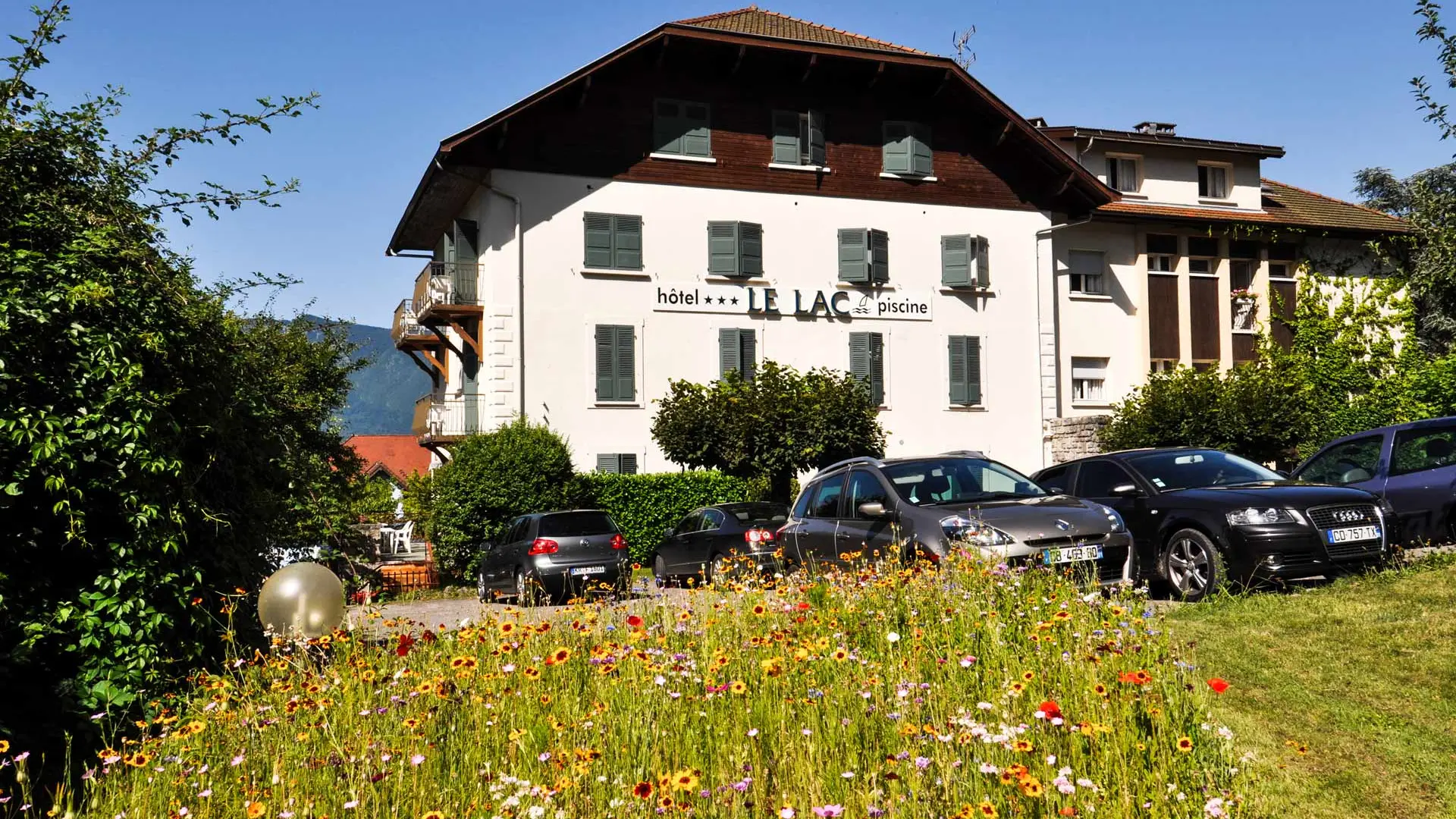 Jouissant d'une magnifique vue sur le Lac et les montagnes environnantes, l'hôtel possède une piscine extérieure au cœur des jardins ombragés, à 200 m de la plage de Talloires.