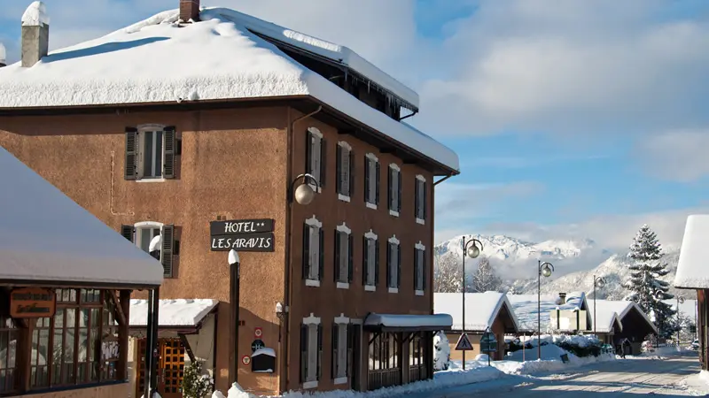 Un hôtel de montagne de tradition, construit en 1905 en centre-village, l'hôtel les Aravis n'est qu'à 3km des stations de ski de la Clusaz et du Grand-Bornand, et à 25km de la ville historique et le lac d'Annecy.