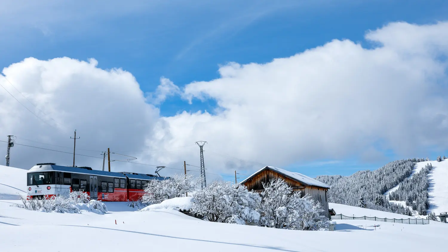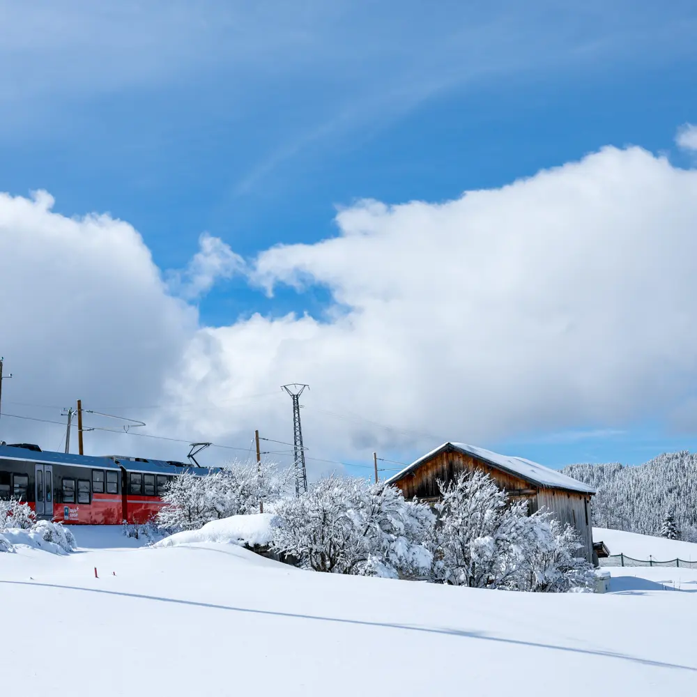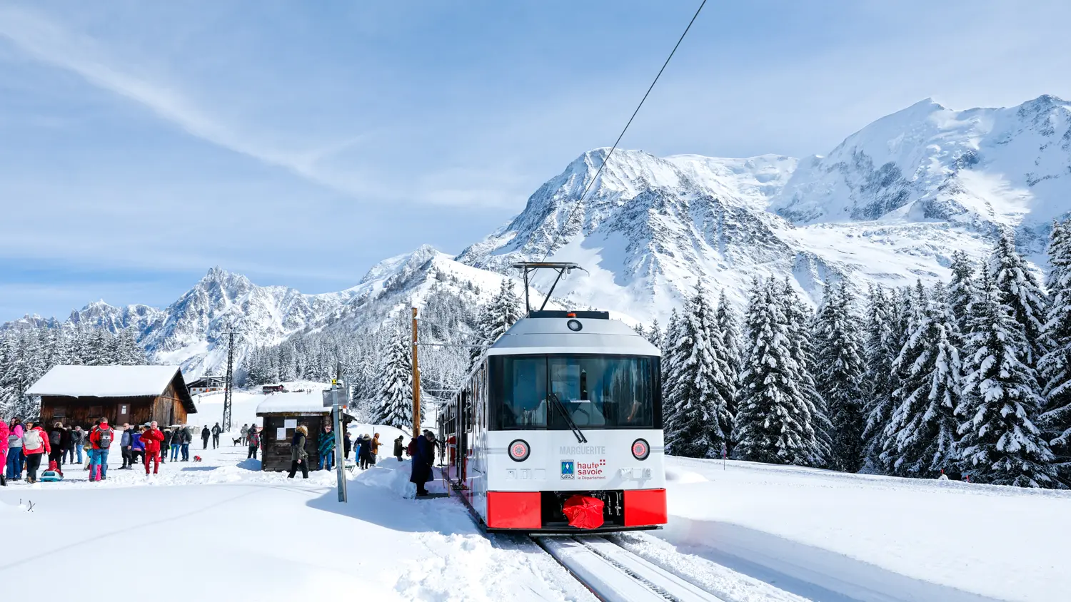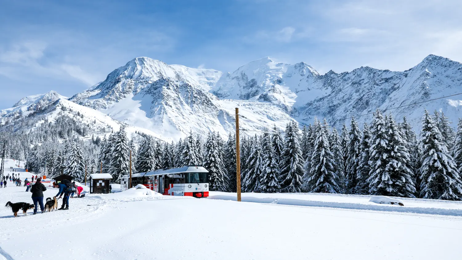 Suivre le chemin longeant la voie du train pour arriver à la table d'orientation de l'ancien hôtel Bellevue : vue sur la vallée de Chamonix, puis continuer jusqu'à Bellevue et l'arrivée du téléphérique venant des Houches.