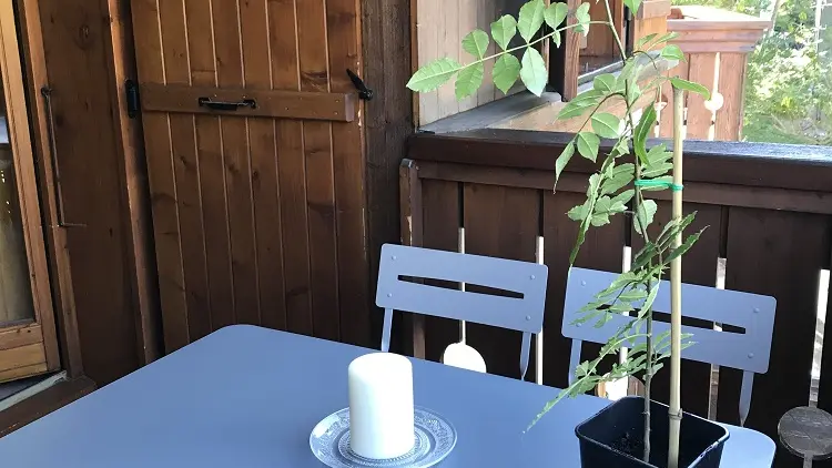 Grande terrasse de 6 m² avec mobilier. Exposition sud-est.