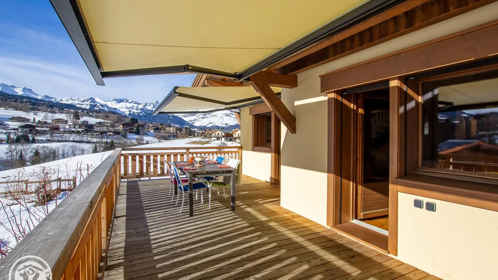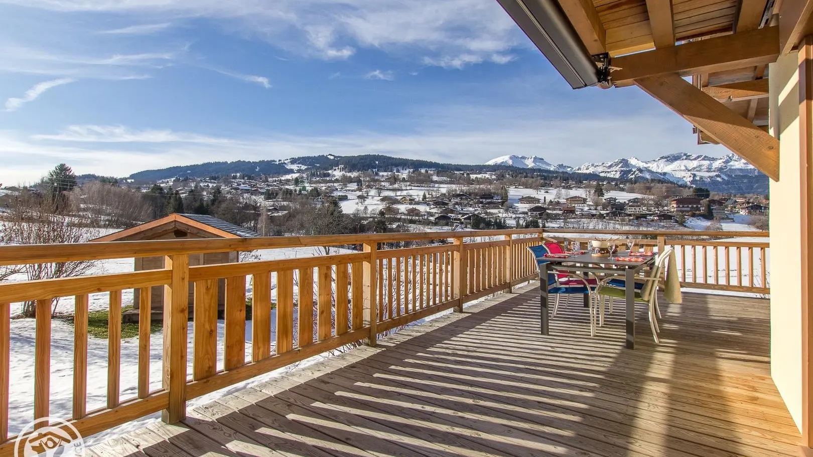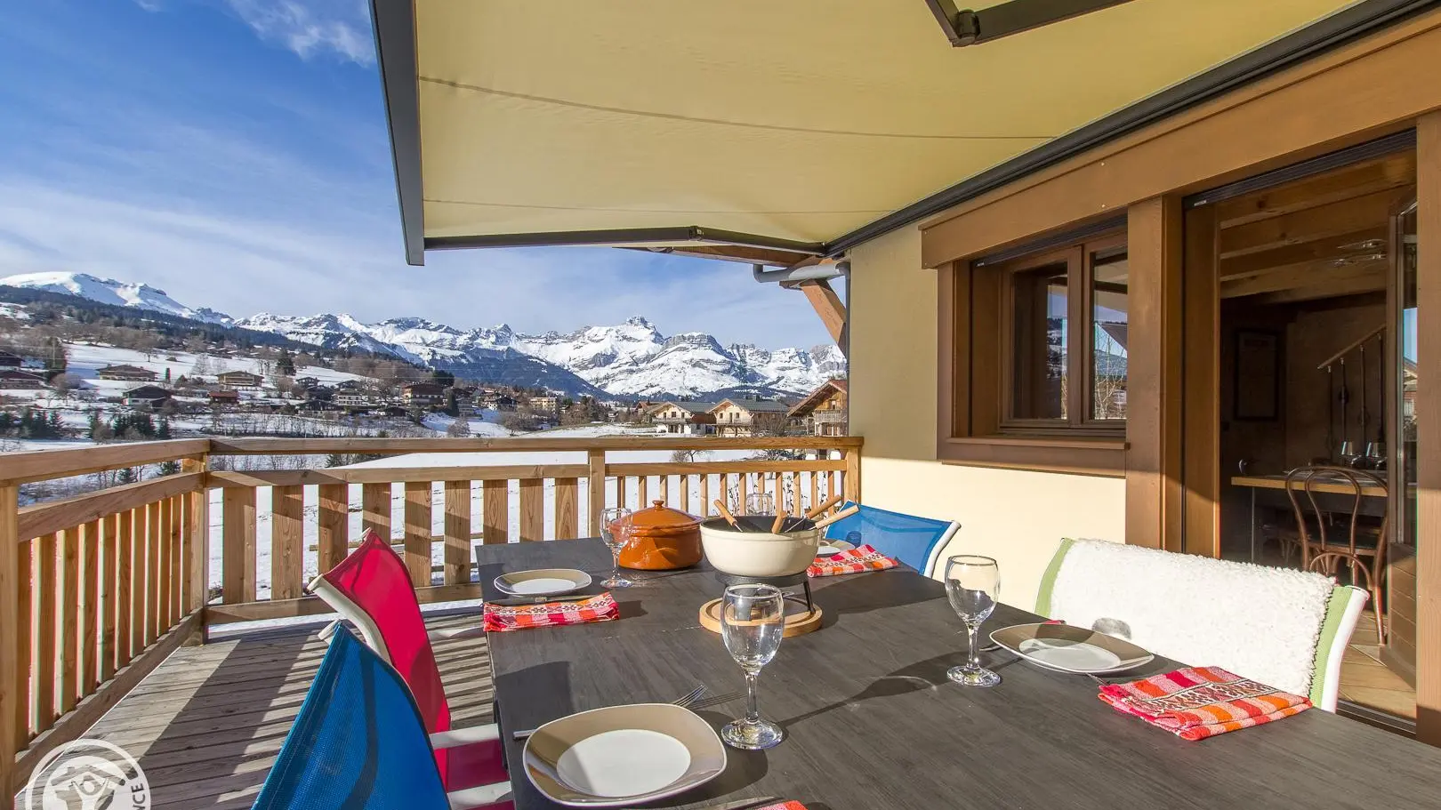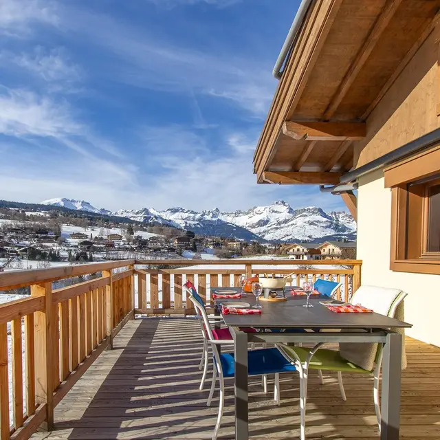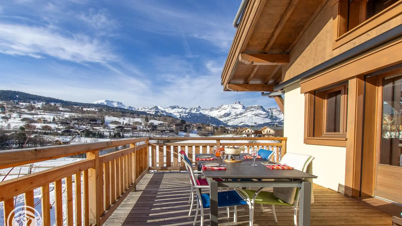 Très belle vue sur la vallée de Megève et ses sommets (Jaillet), ainsi que sur la chaîne des Aravis.