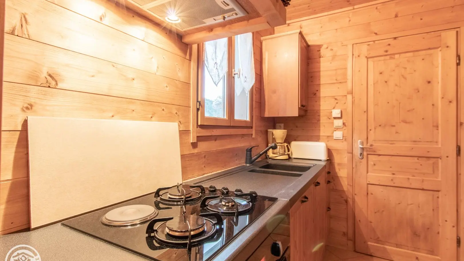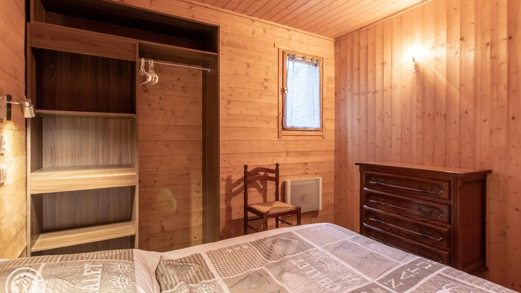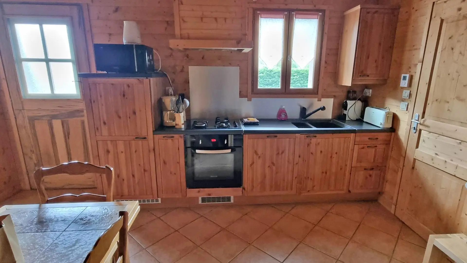 Ambiance bois chaleureuse. Accès indépendant. Cuisine intégrée ouverte sur séjour, salon avec canapé et table basse, TV 80 cm. Salle d'eau avec douche cabine et wc. Chambre 1 (1 lit 140x190, penderie et commode), Chambre 2 (2 lits superposés 90x190 avec rangements sous le lit). Draps et linges de maison fournis (lits faits à votre arrivée). Le linge de toilette est à apporter. Forfait ménage proposé en option. Lave-linge disponible sur demande auprès des propriétaires. Accès par le salon au garage (rangements et stockage ski, vélo possible). La proximité avec la route départementale peut créer quelques nuisances (circulation) lorsque l'on se trouve dans le jardin.