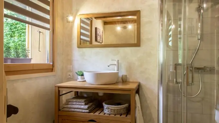 Confortable studio indépendant (33 m²) au calme. Ambiance et décoration chaleureuse (esprit bois et montagne). Accès au gîte par escalier extérieur.