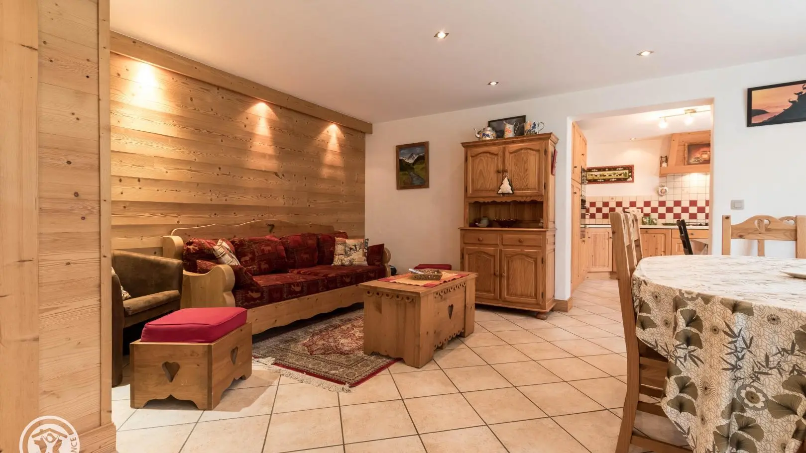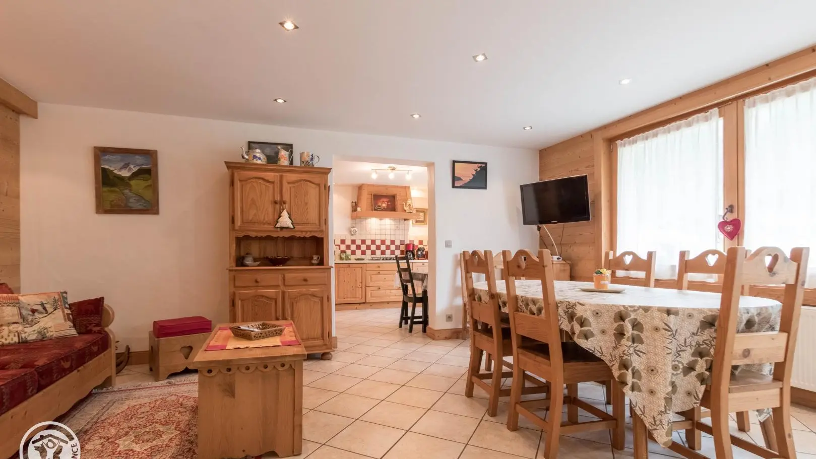 Face aux Dômes de Miage, ambiance chaleureuse bois et montagne pour ce gîte de 109m2 aménagé de plain pied dans une ancienne ferme rénovée comprenant également 3 autres logements. Cuisine intégrée, séjour (TV écran plat), coin repas, CH1 (1 lit 160X200...