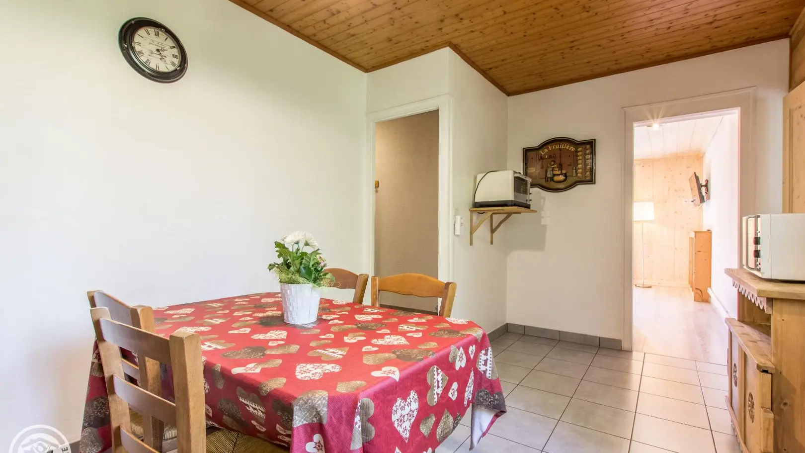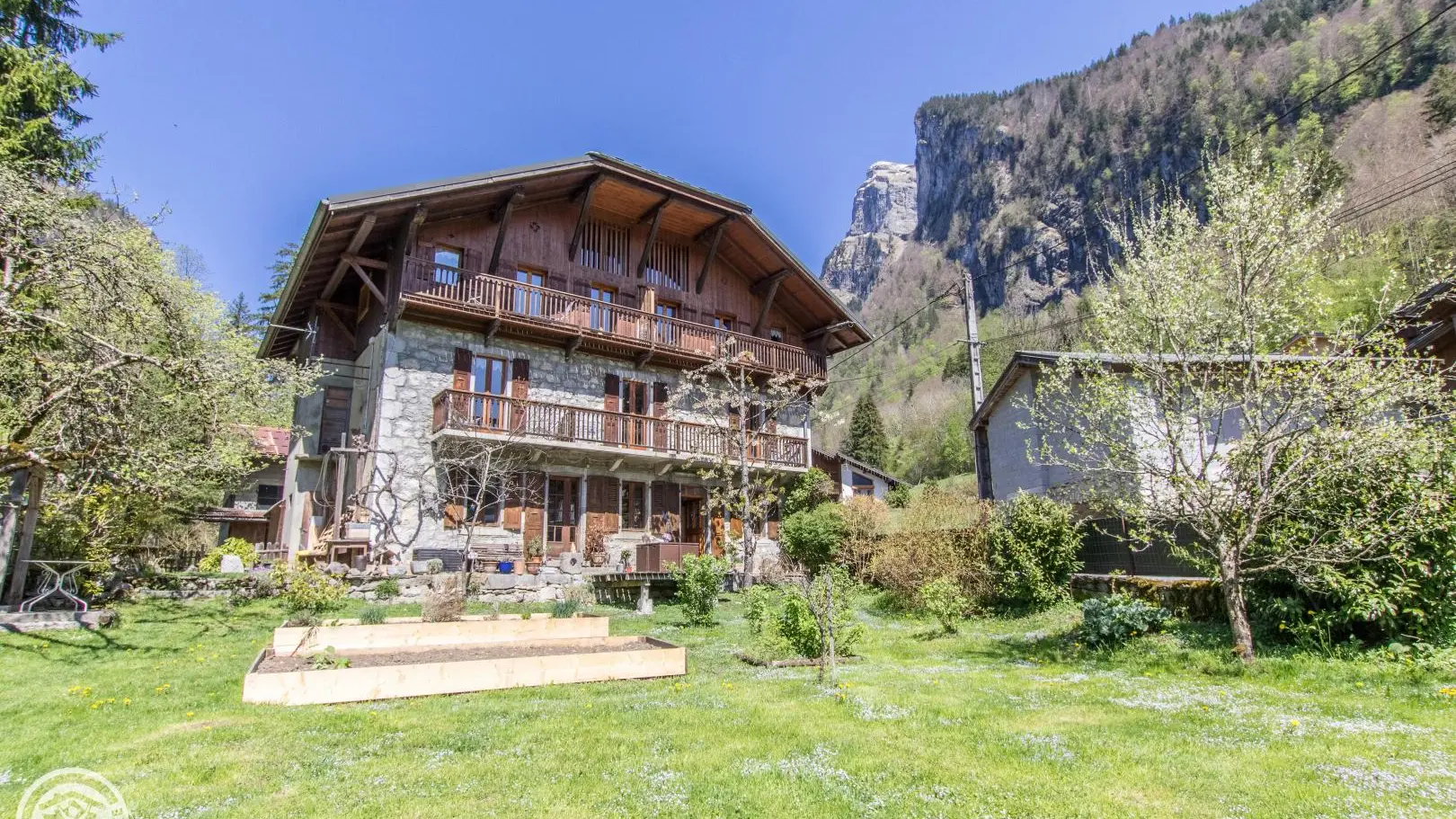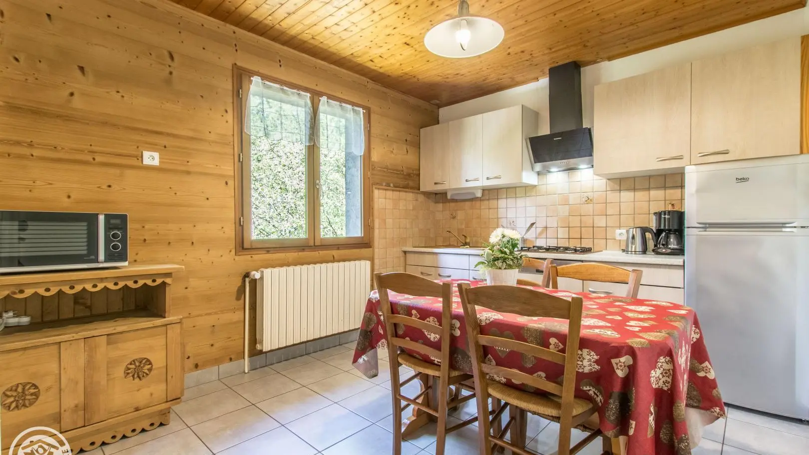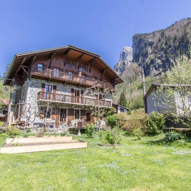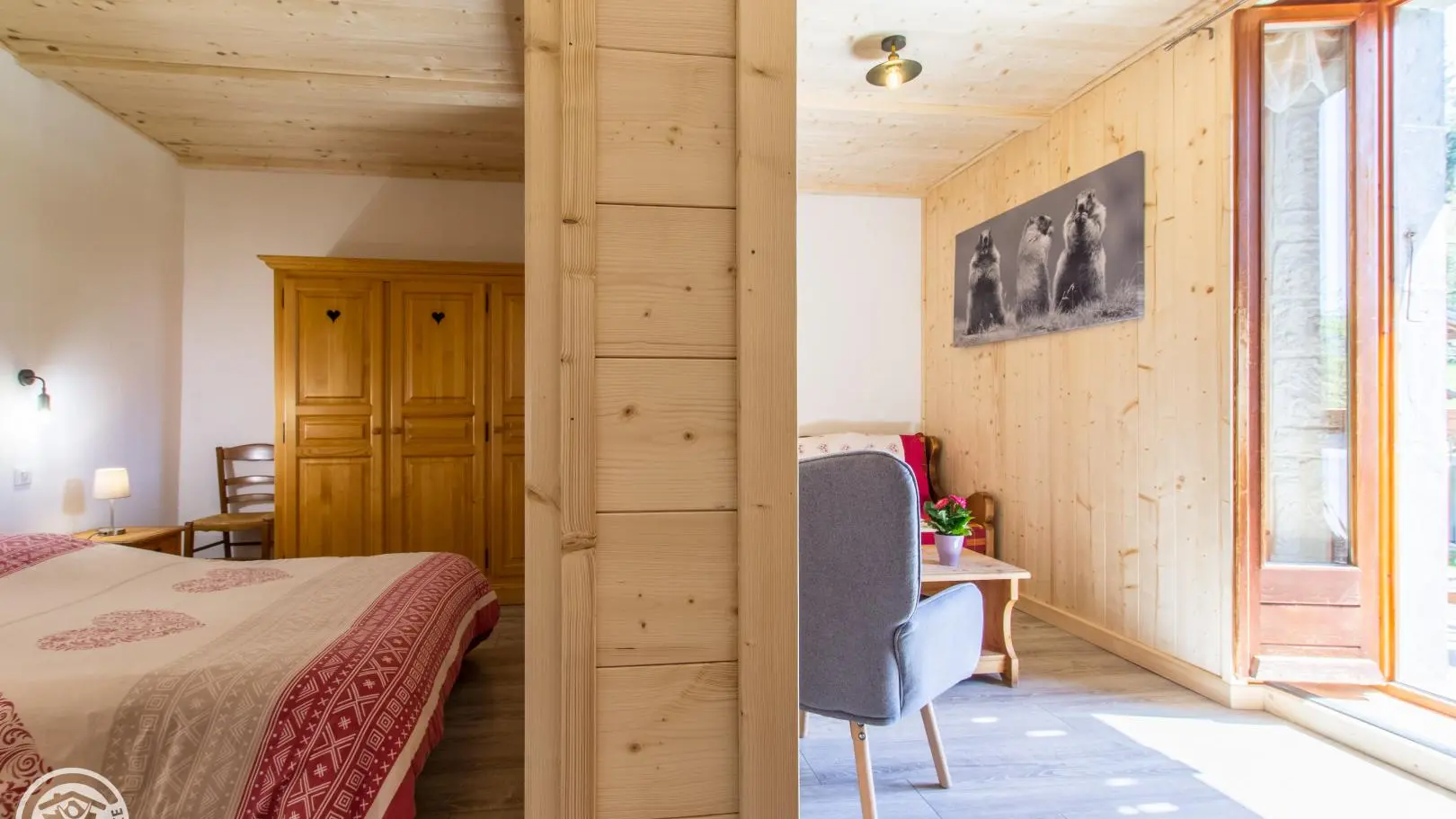 A proximité du centre de Samoëns : gîte de 56m2 aménagé au 1er étage d'une ancienne ferme rénovée de type chalet comprenant également 3 autres gîtes, et le logement des propriétaires (au rez-de-chaussée). Cuisine intégrée indépendante, chambre 1 (lit 140x190cm), chambre 2 (1 lit 140x190cm), salon (canapé, Tv), salle d'eau avec douche et wc. Internet wifi.