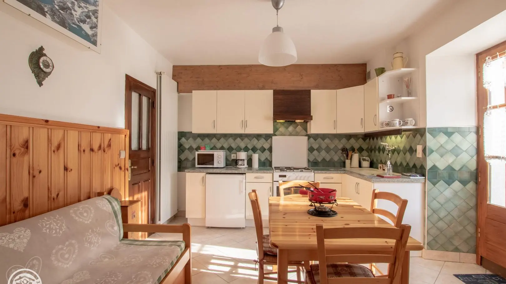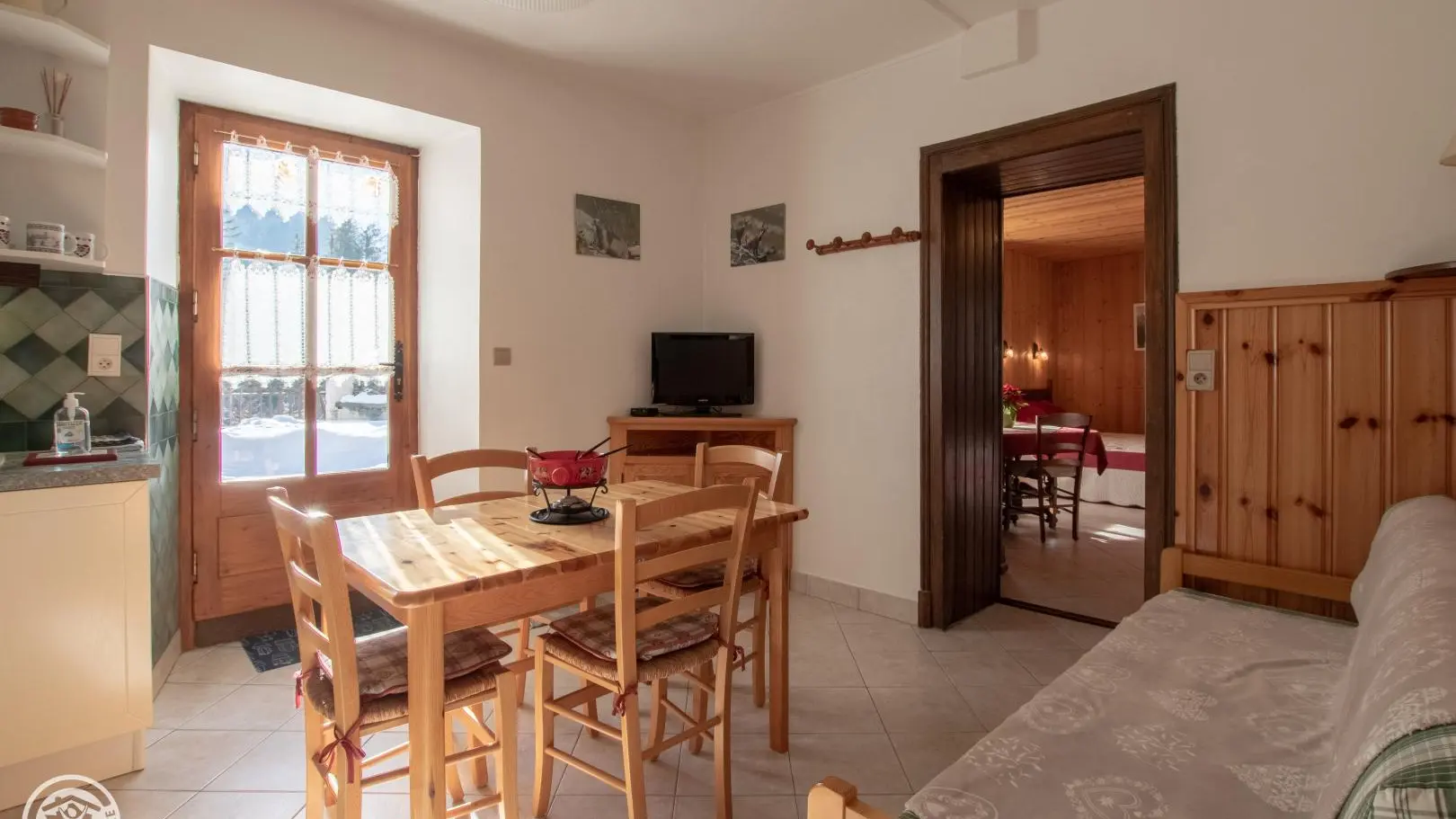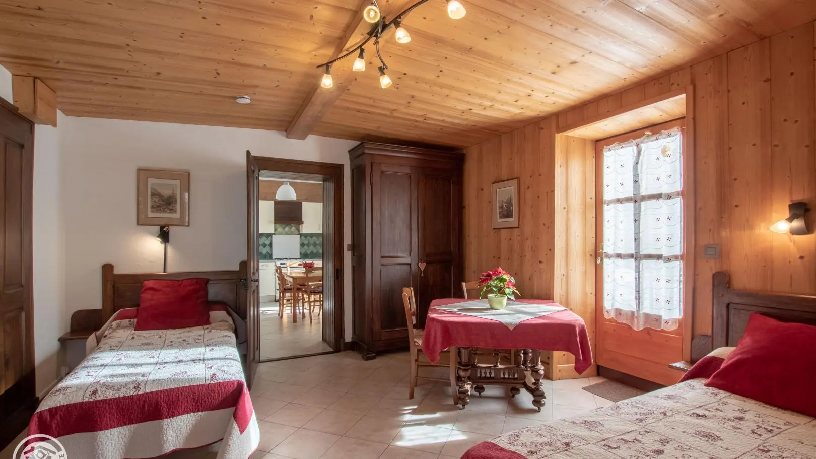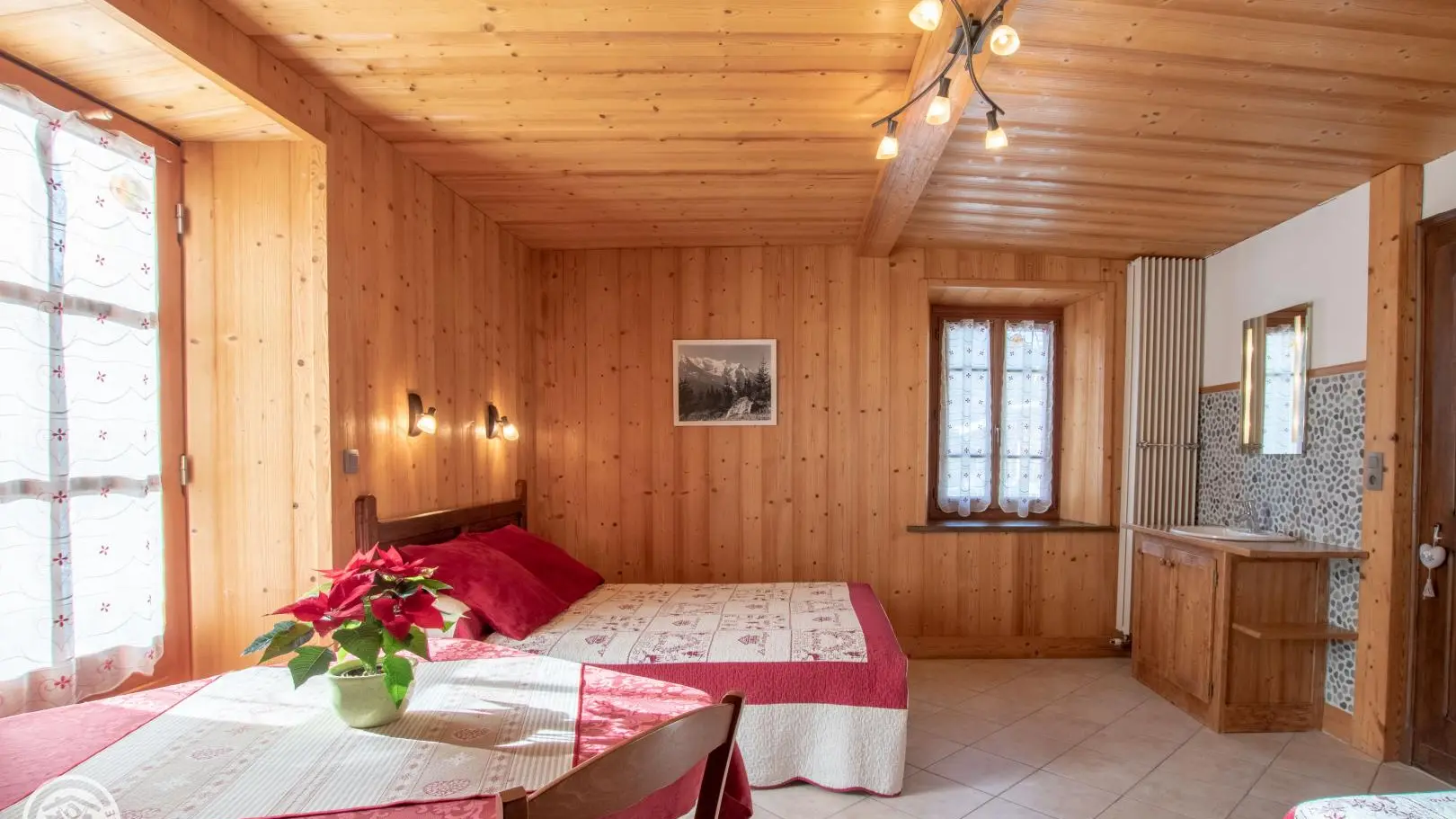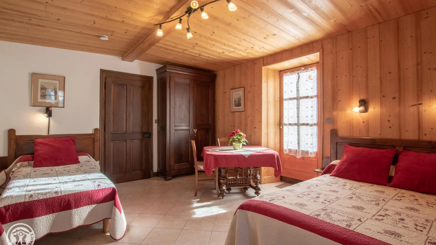 Aux portes de la vallée de Chamonix,maison de village type chalet comprend 2 gîtes et le logement des propriétaires. Gîte de 35m2 situé au 1er étage: cuisine/ séjour (banquette 80 cm, Ecran plat), 1 chbre spacieuse (1 lit 2 pers. 1 lit 1 pers.). Salle ...
