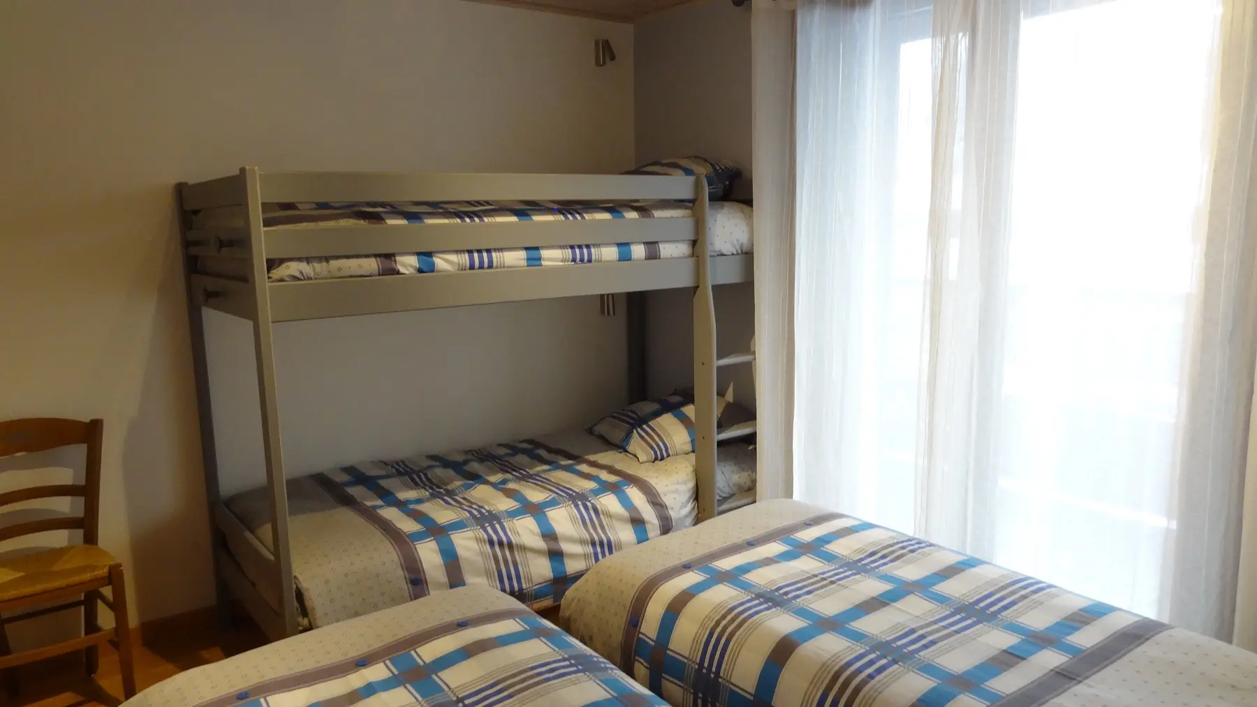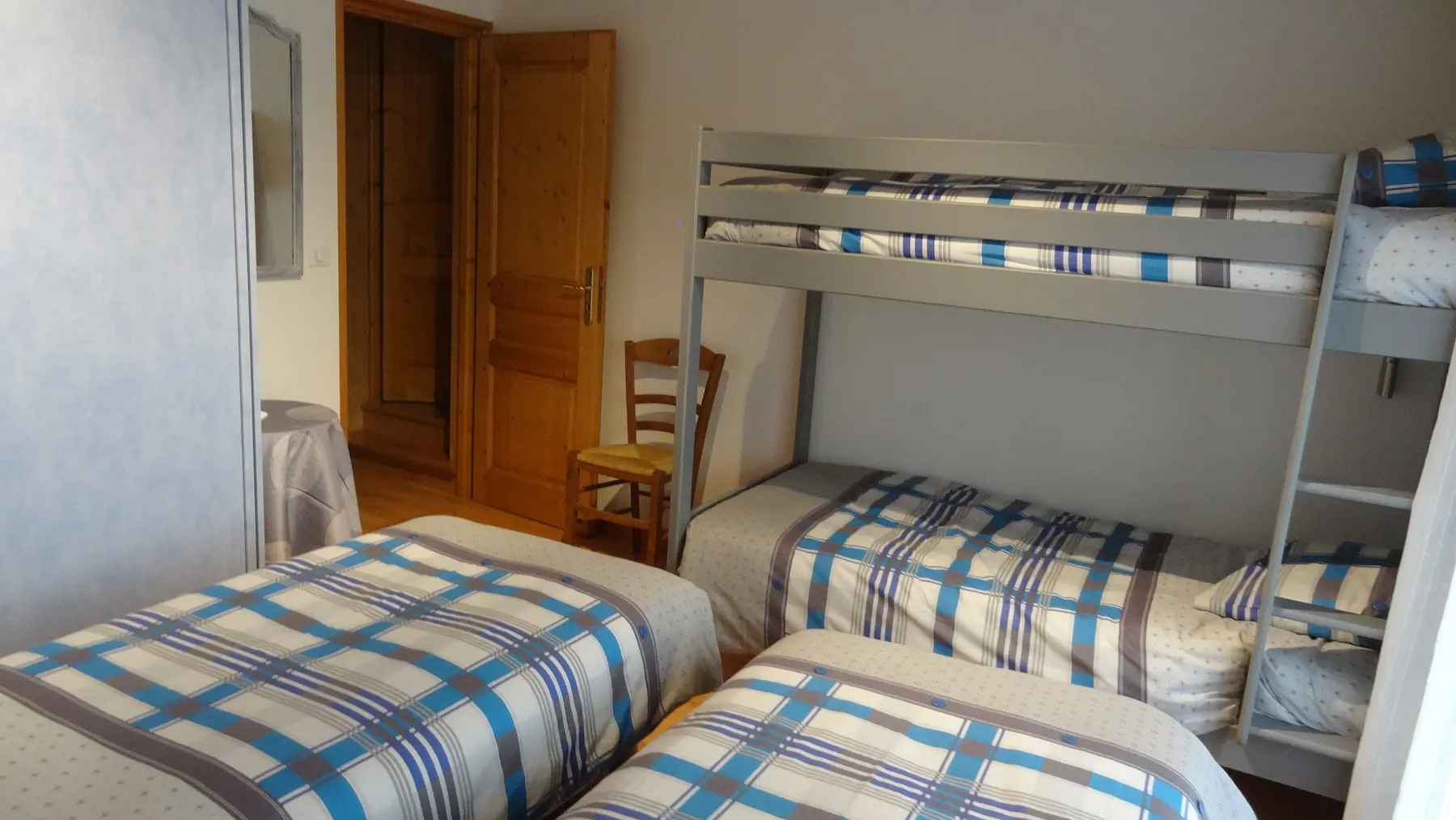 Appartement avec une pièce principale avec coin cuisine, séjour et salon. Une chambre avec 2 lits simples. Une chambre avec 2 lits simples et 2 autres lits simples superposés
