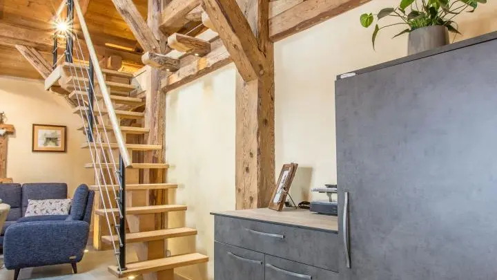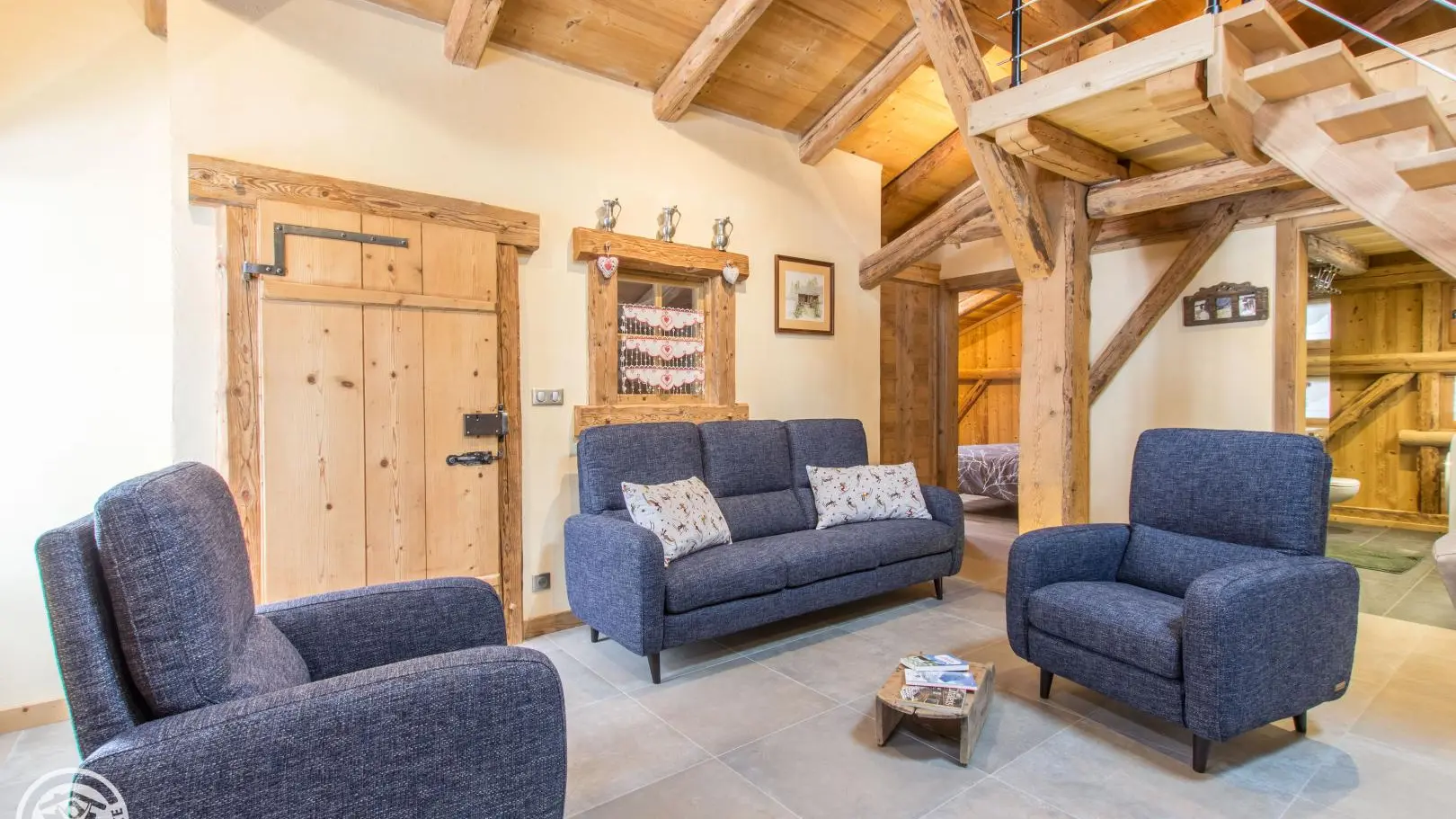 Gîte de 66m2 (+ mezzanine mansardée), aménagé au 1er étage d'une ancienne ferme Savoyarde rénovée datant du 18ème siècle. Environnement calme et préservé.