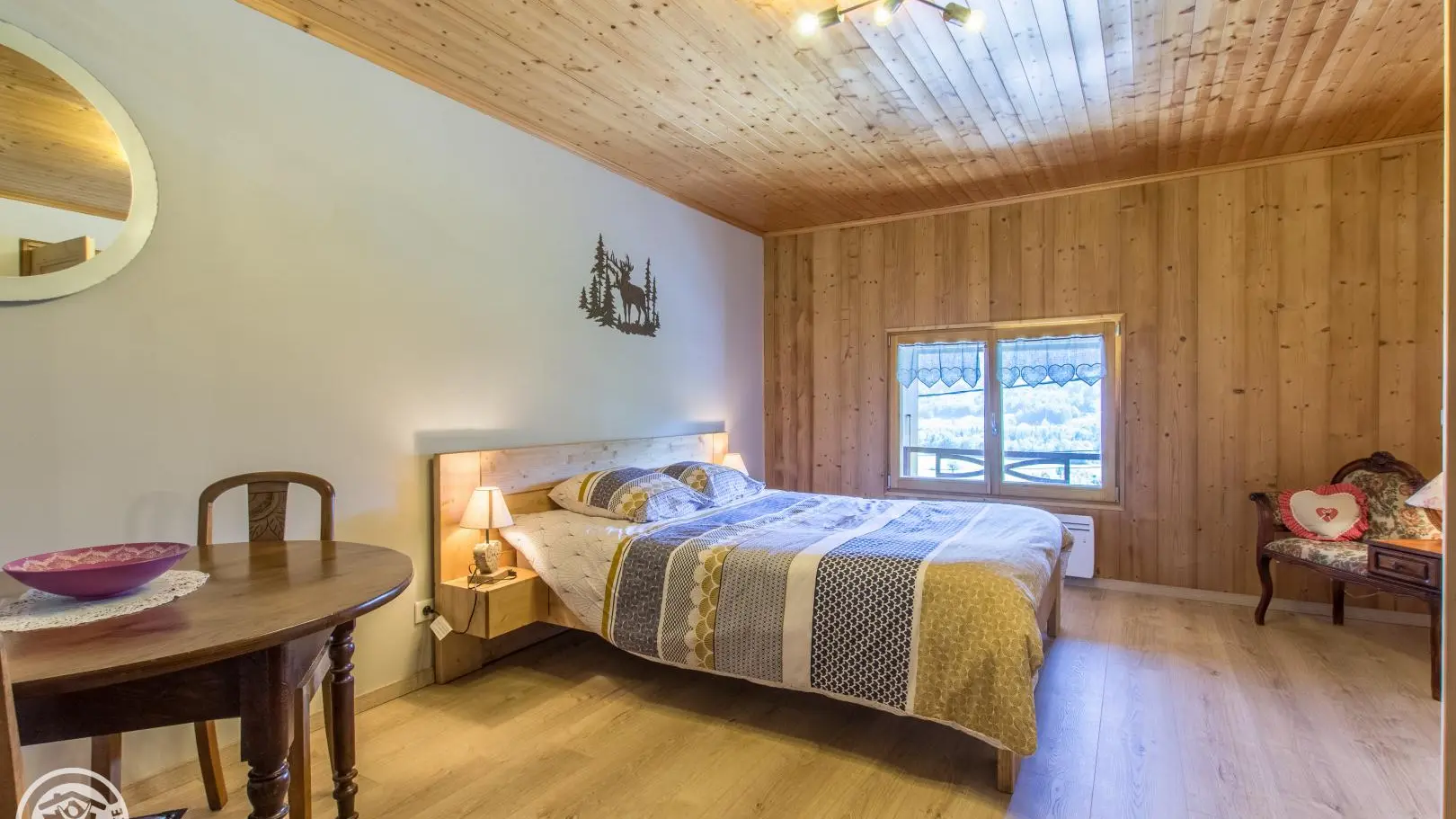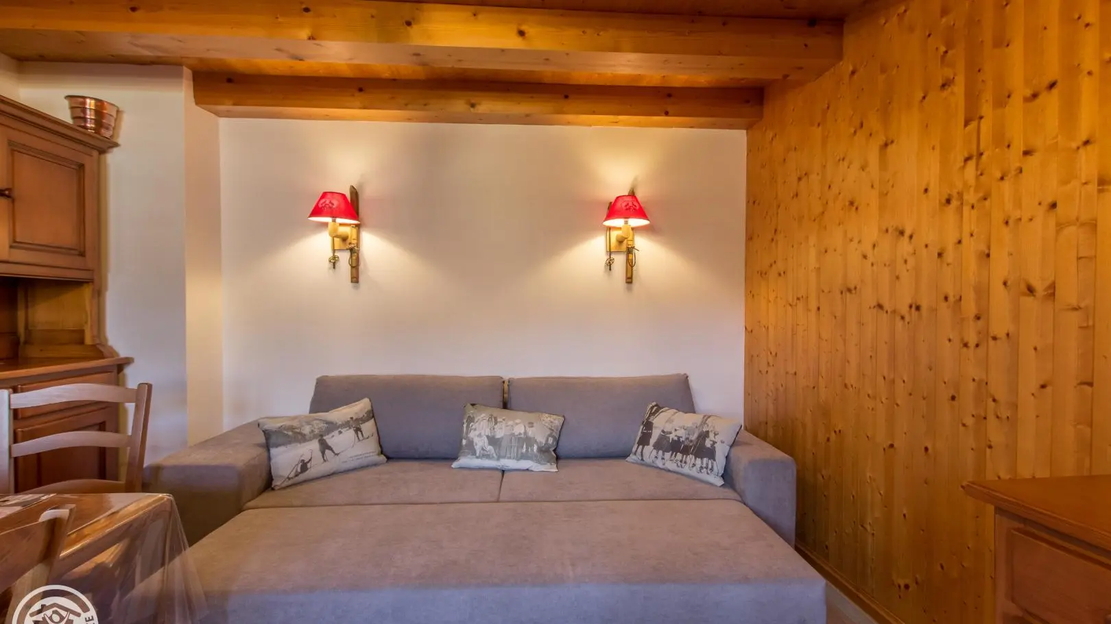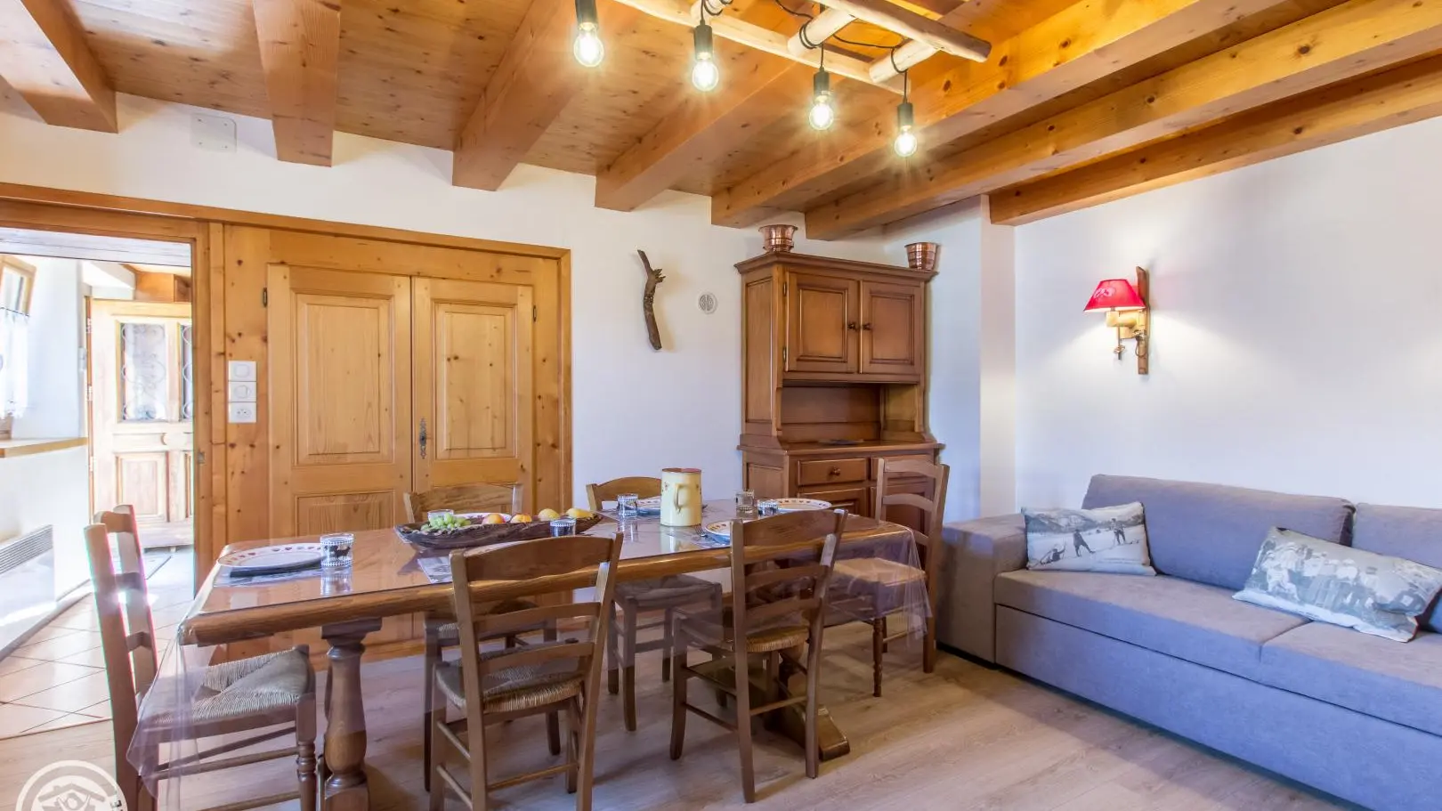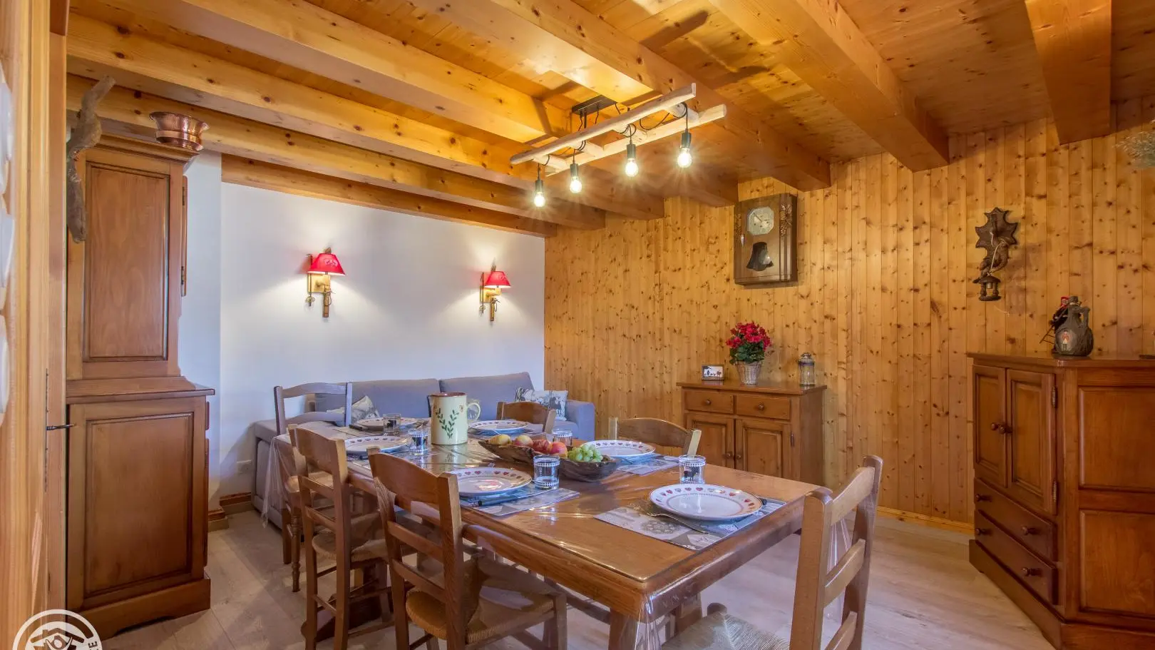 Aménagement intérieur chaleureux dans une ambiance chalet, tout en conservant l'esprit authentique de la ferme familiale.