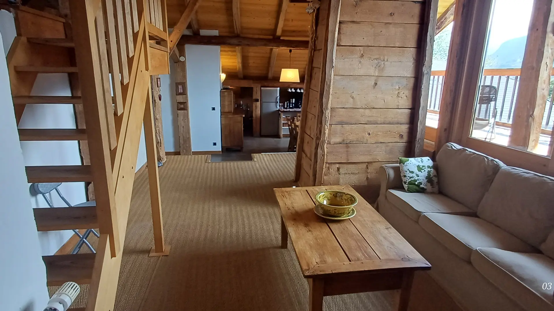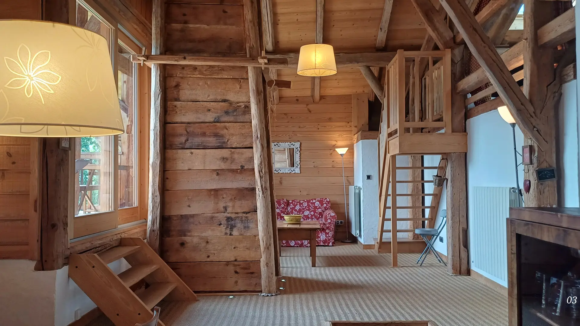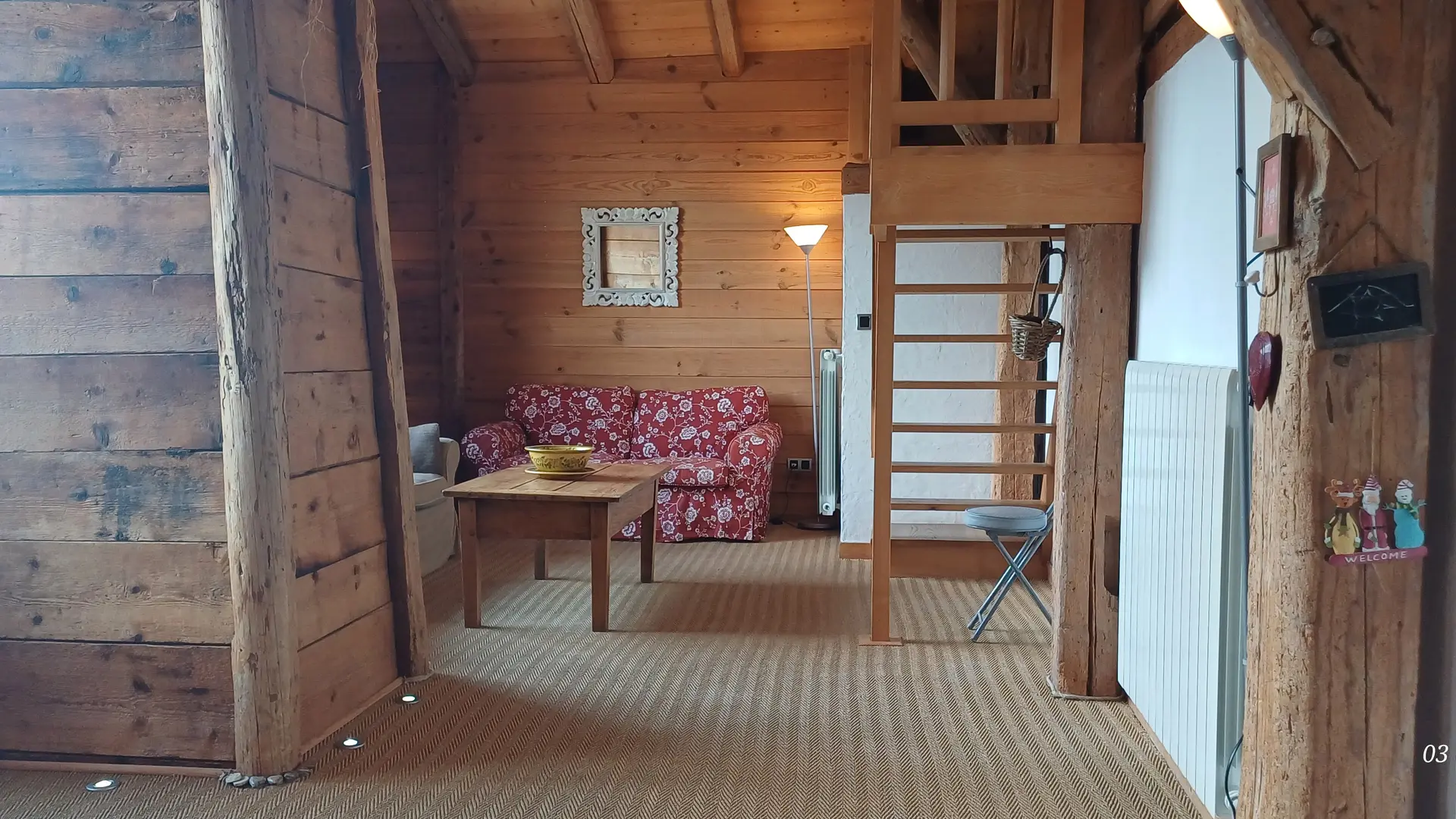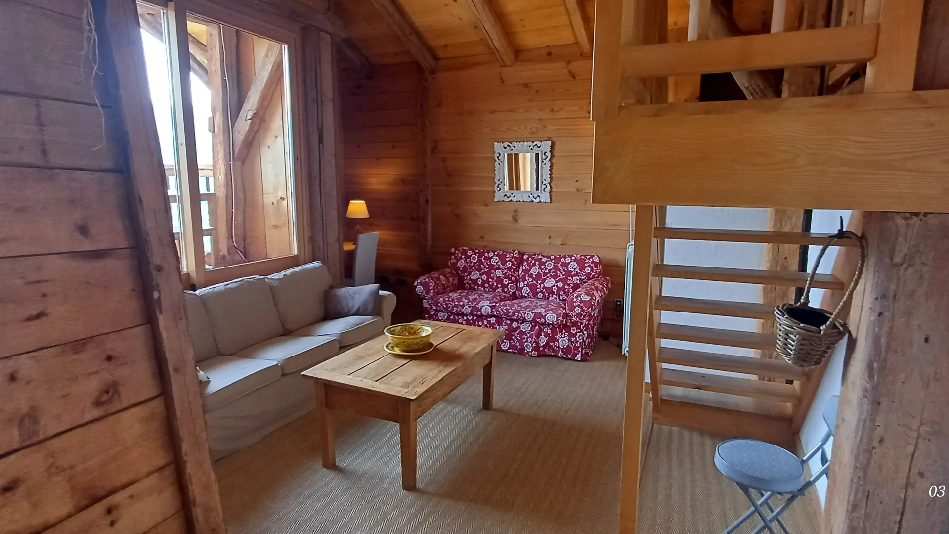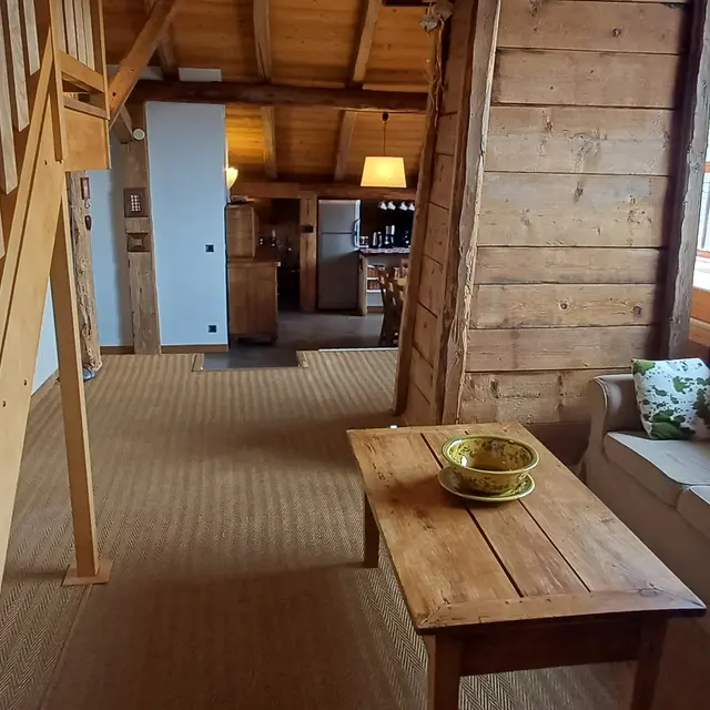 Salon avec canapé, 2ème salon en mezzanine avec TV satellite ,lecteur cd et dvd.